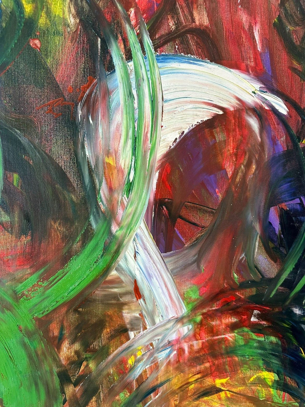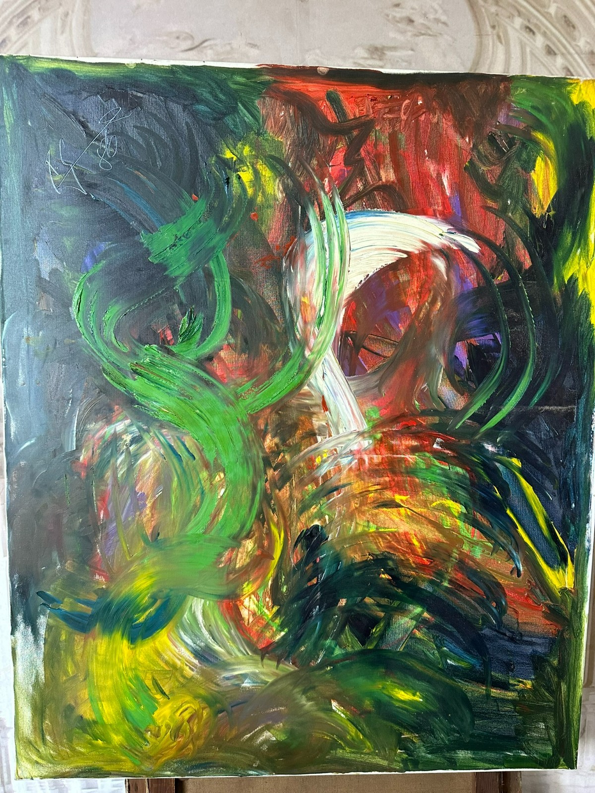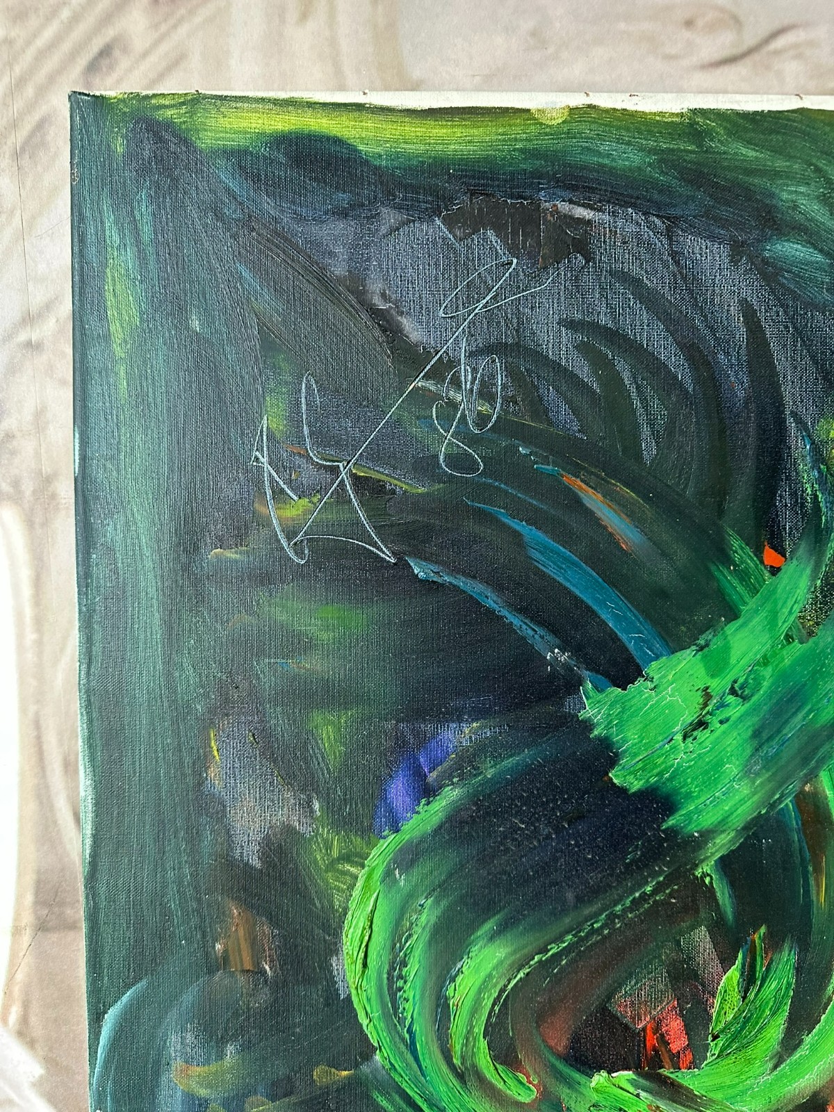 Modernes Ölgemälde auf Leinwand, oben links unleserlich signiert und datiert ´86. Sehr schöner Gesamtzustand, Abmessungen 100x120cm.