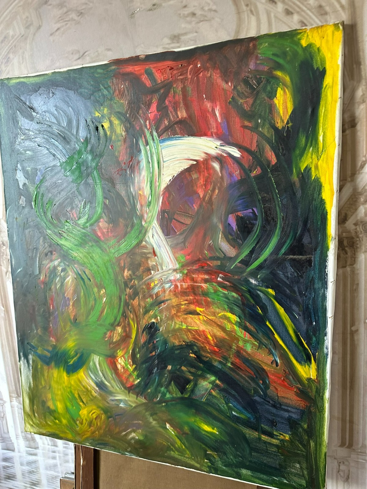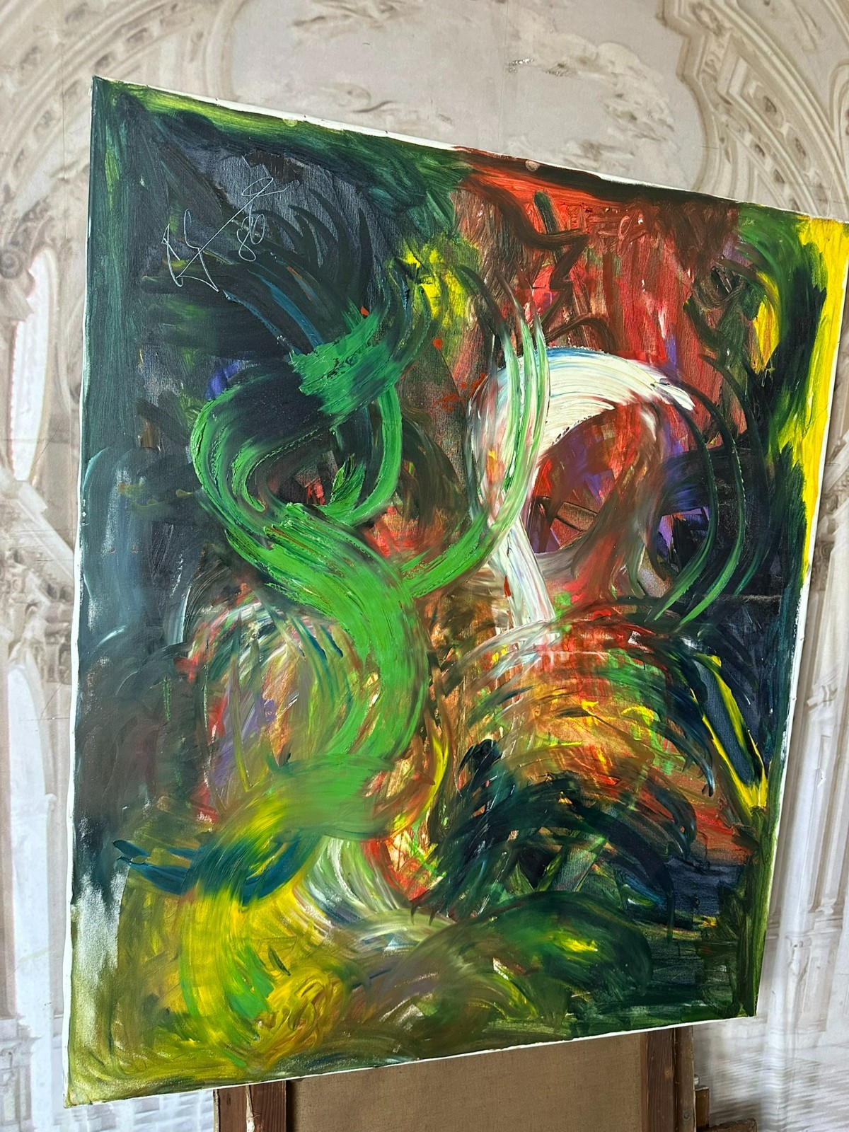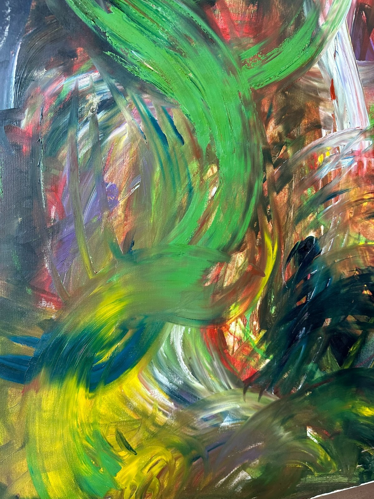 Modernes Ölgemälde auf Leinwand, oben links unleserlich signiert und datiert ´86. Sehr schöner Gesamtzustand, Abmessungen 100x120cm.