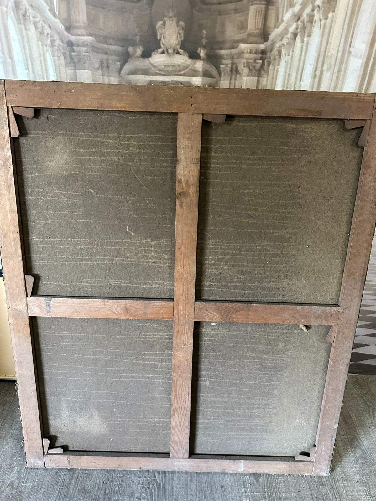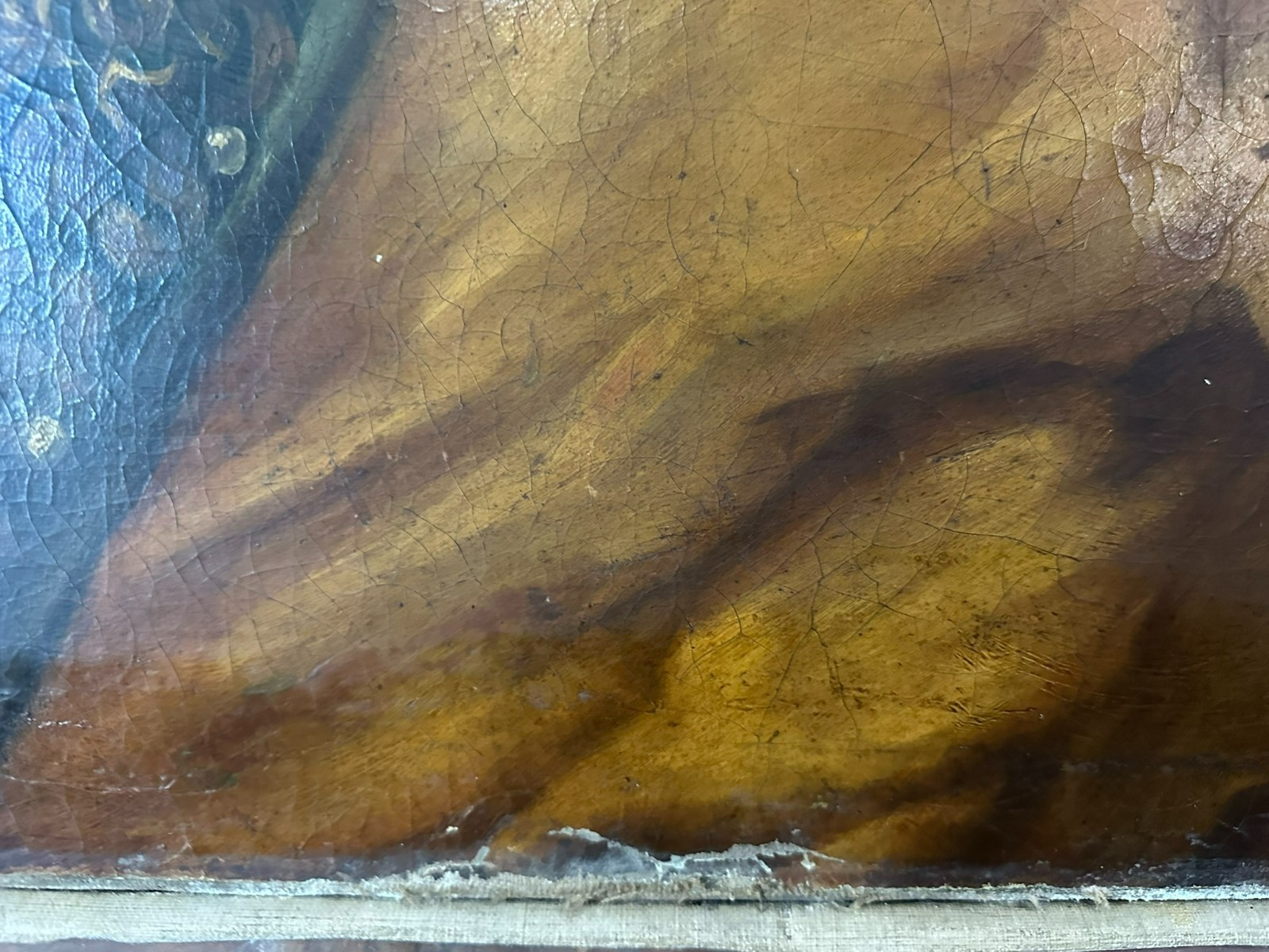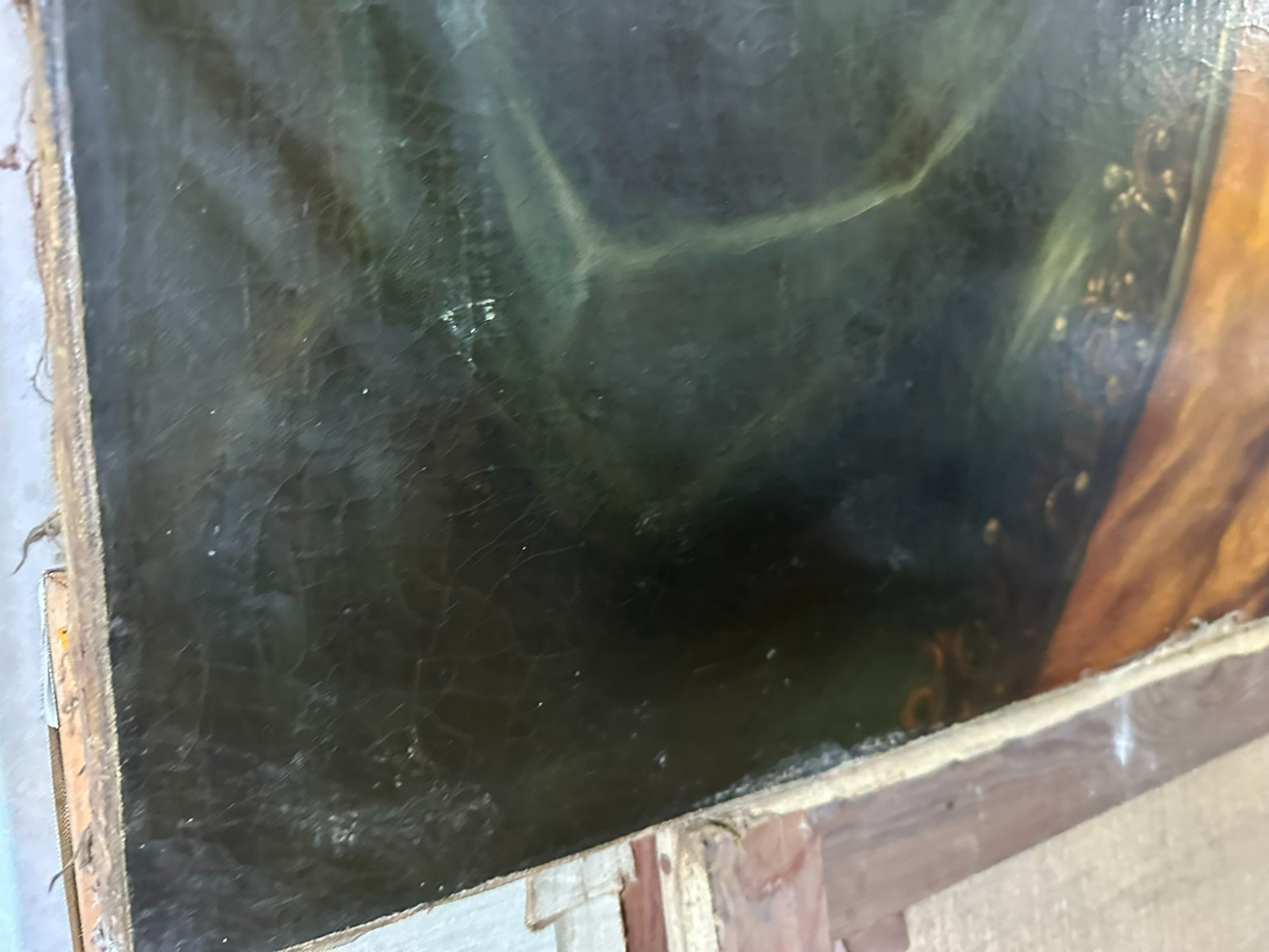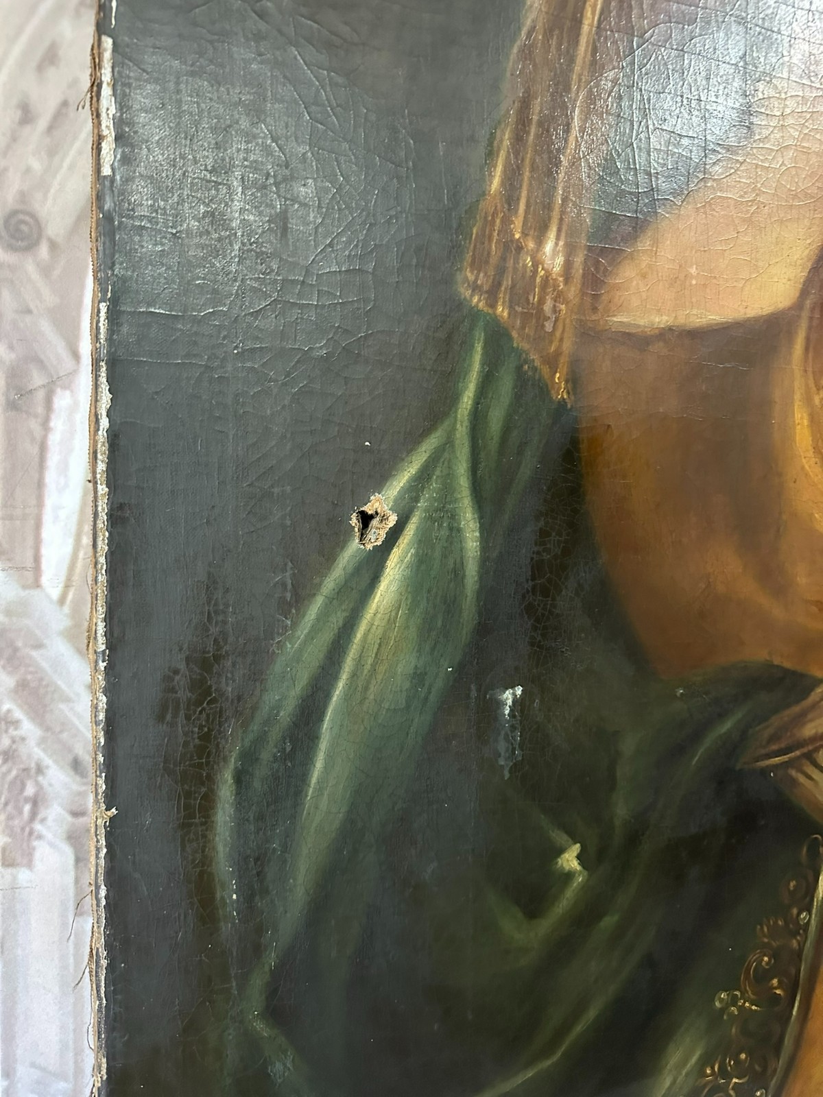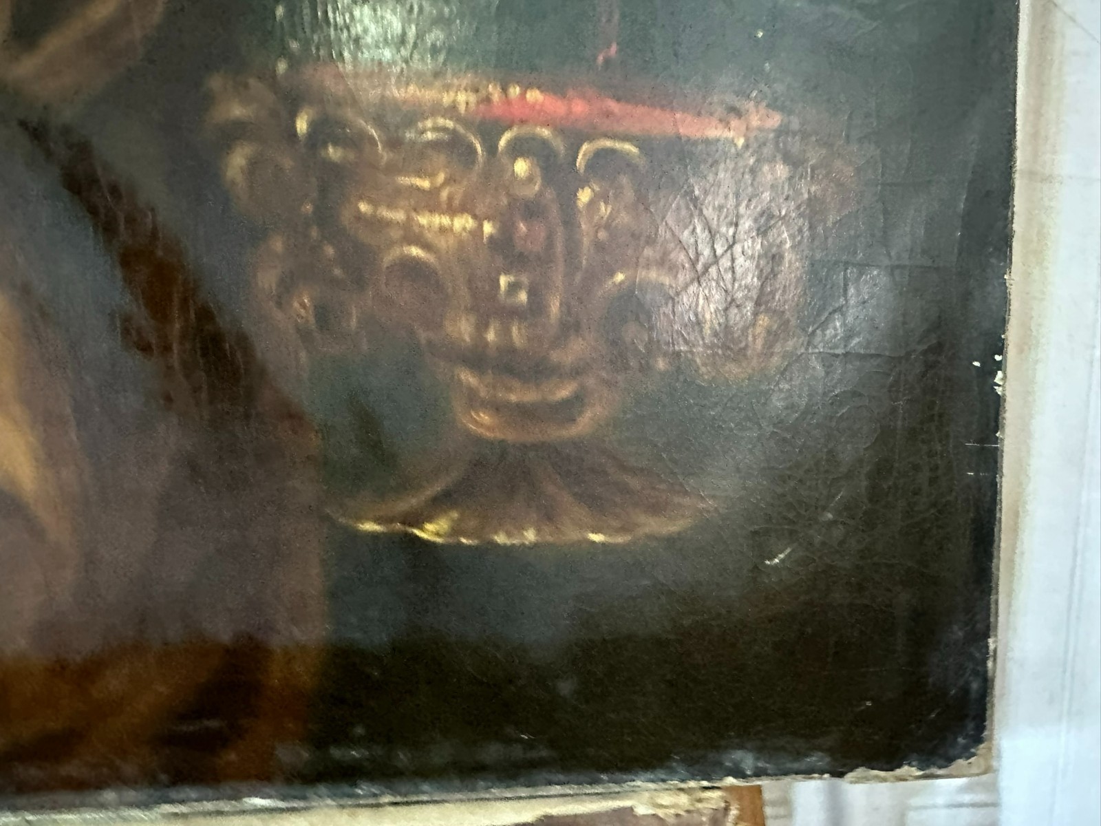 Sehr großes Ölgemälde auf Leinwand, Kopie nach dem Original von Johan BOECKHORST, wohl um 1900 angefertigt. An der gesamten Oberfläche Craquelle, Farbabrieb und Farbabplatzer. Seitlich links Leinwandschaden. Der Firnis ist insgesamt vergilbt und fleckig. Das Gemälde hat wohl auch diverse Übermalungen. Abmessungen 107x127cm.