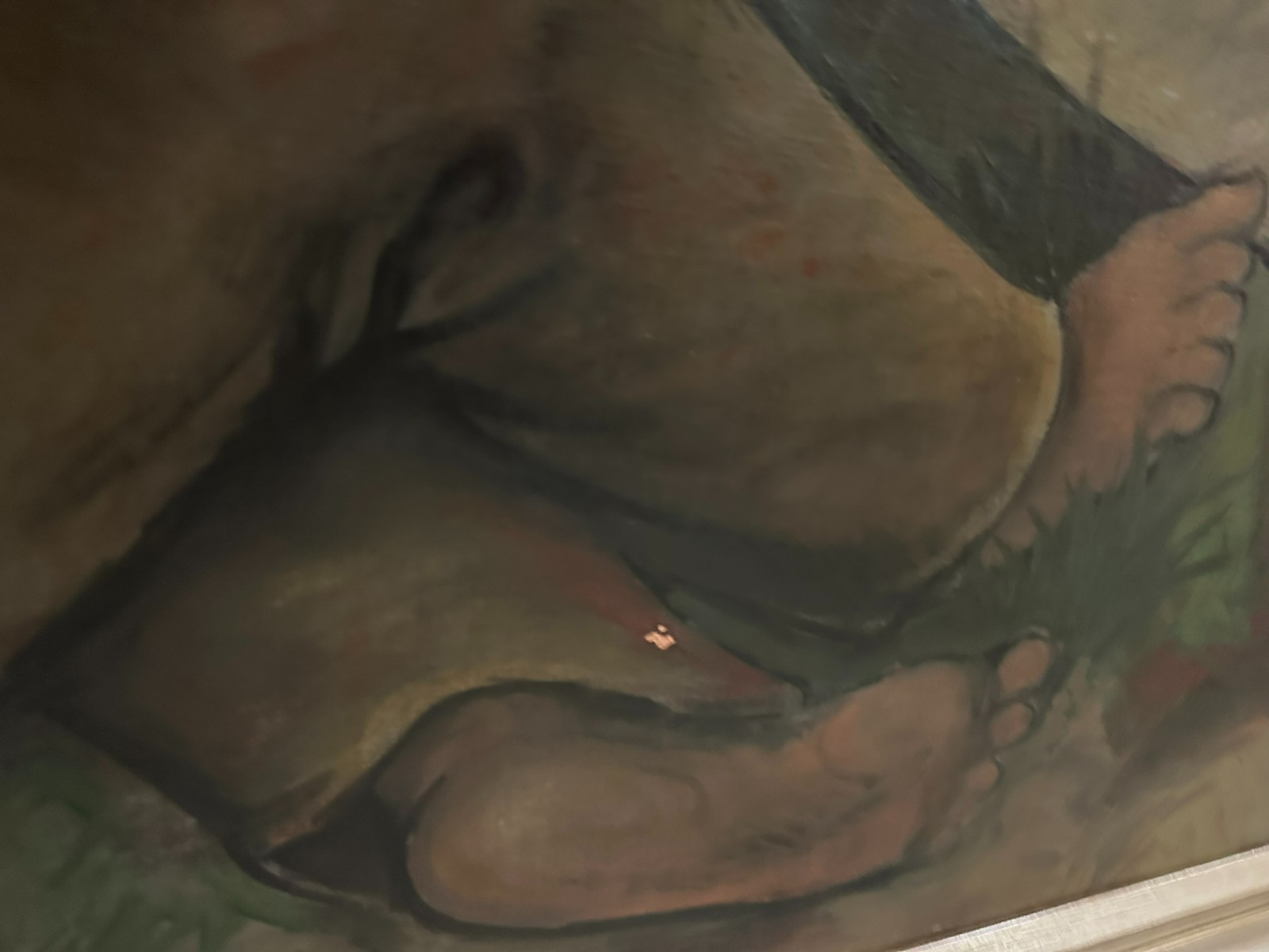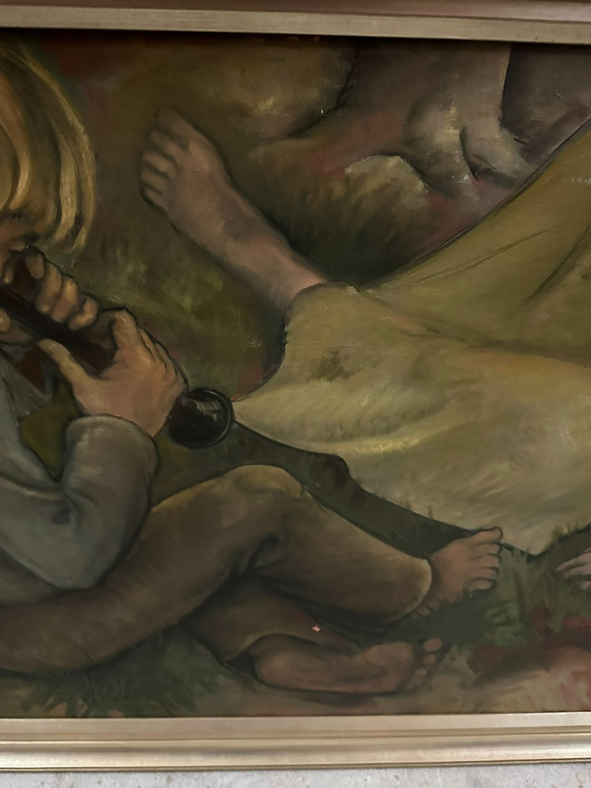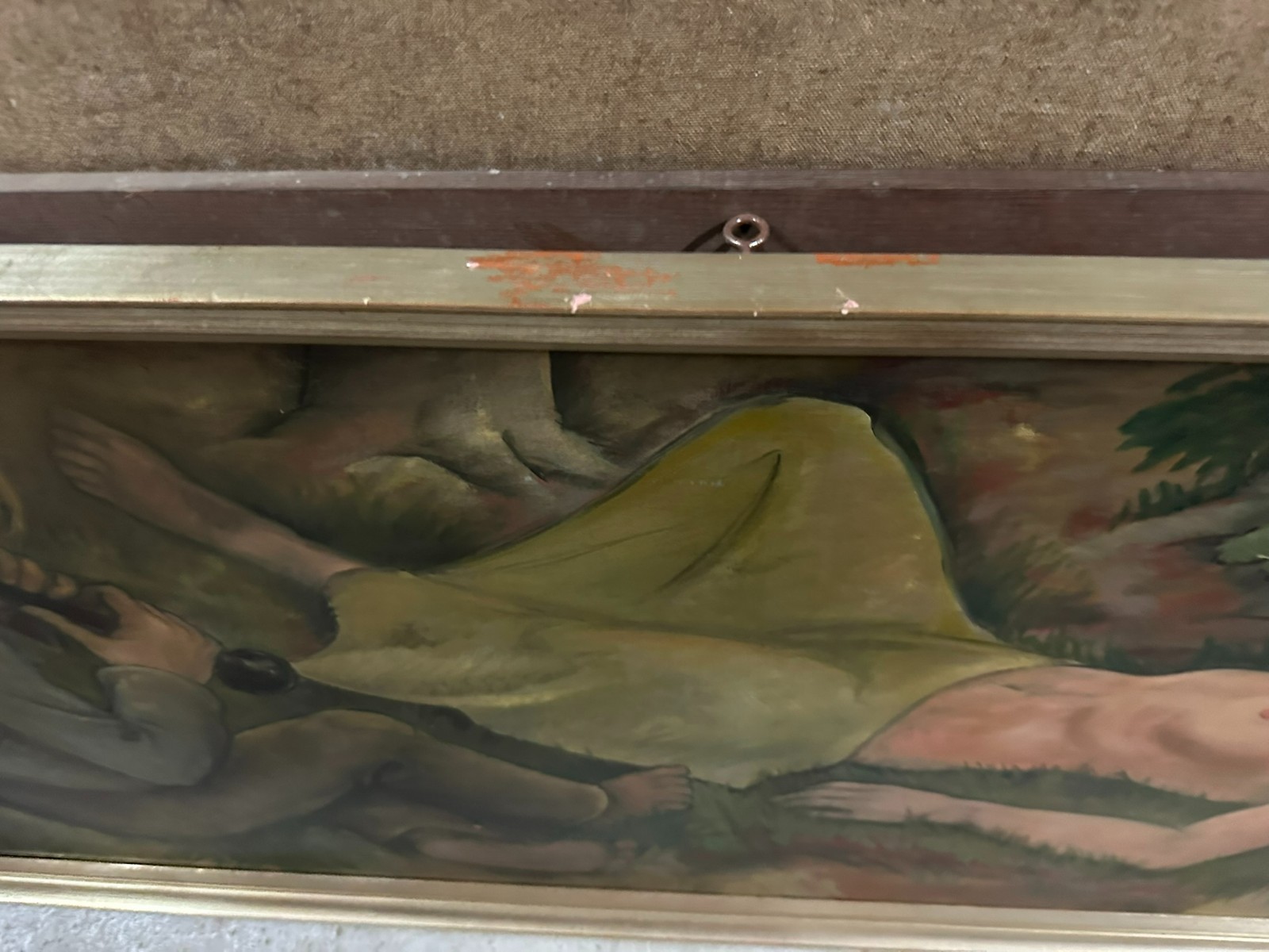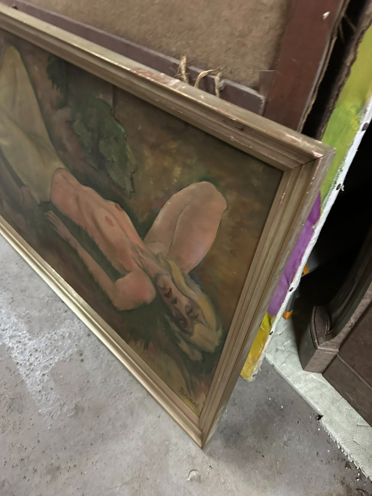 Großes Ölgemälde auf Leinwand, unten rechts signiert Ilgen, schlafender Akt. Mittig kleiner Farbabplatzer, Oberfläche ganz leicht berieben. Der Rahmen ist zum Teil bestossen und berieben. Abmessungen 150x70cm, mit Rahmen 160x80cm.