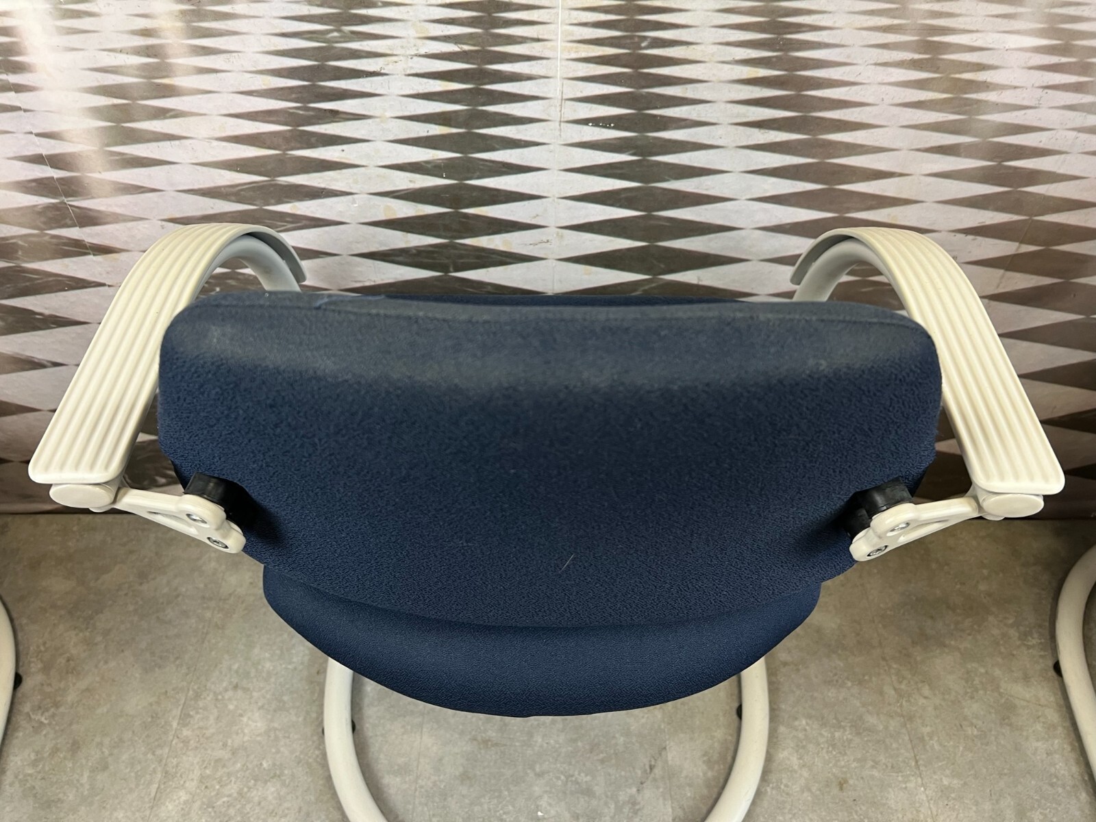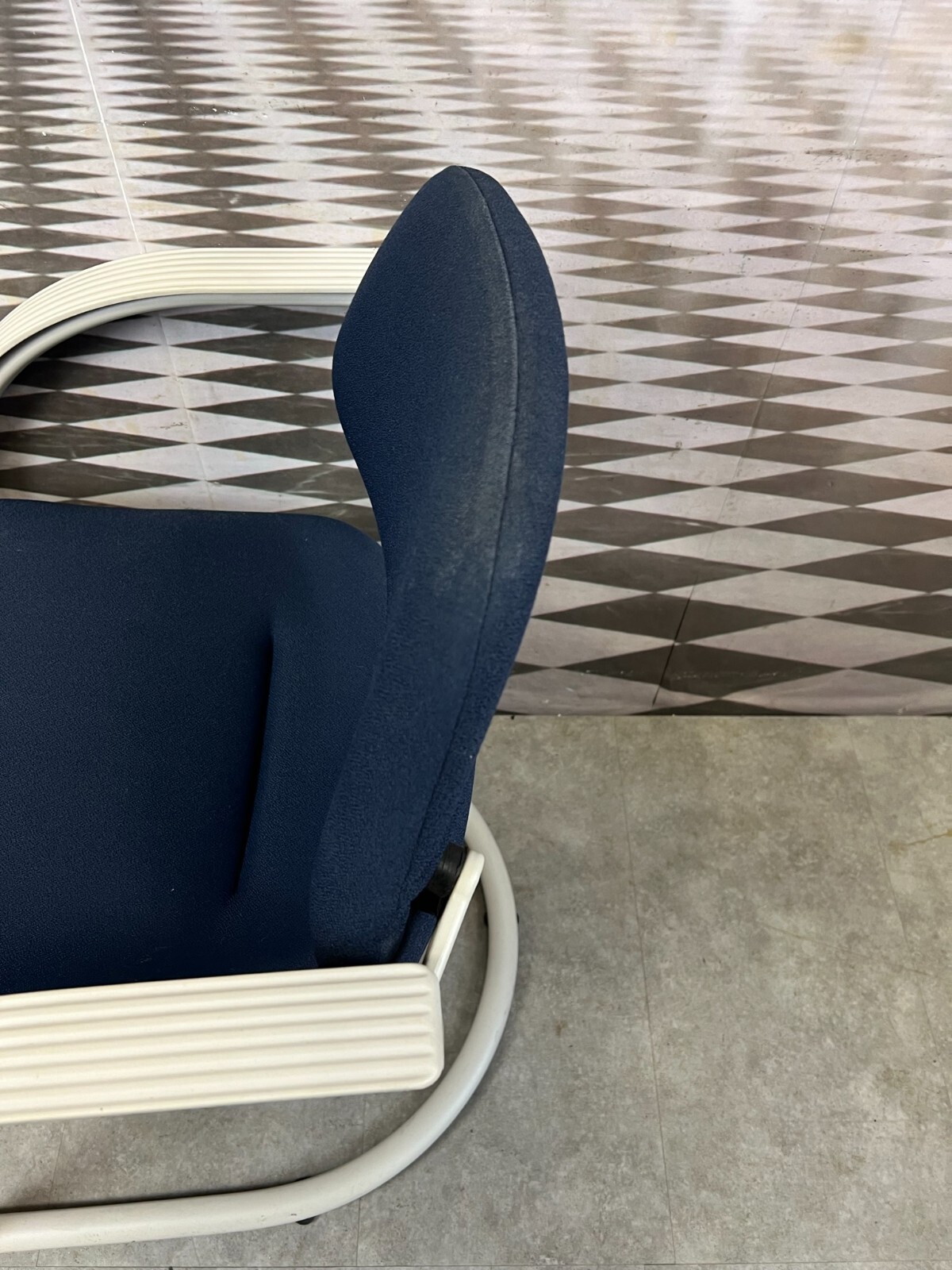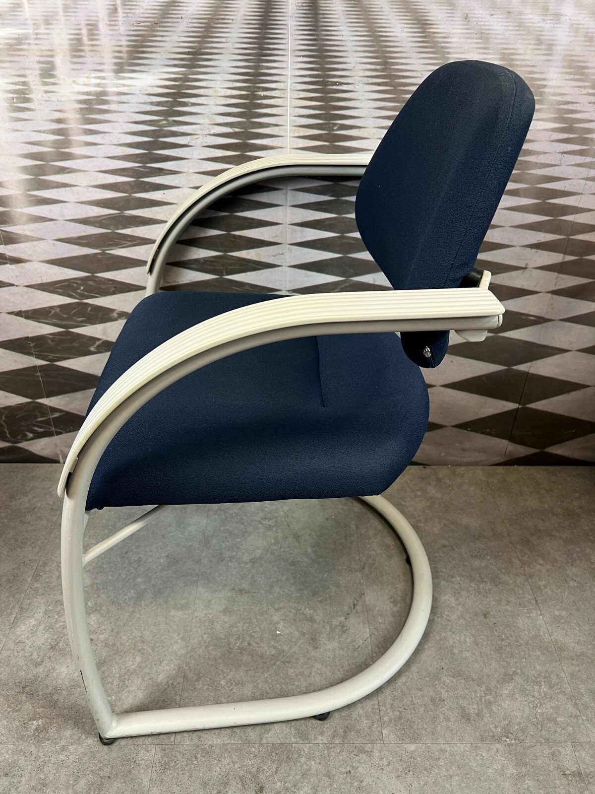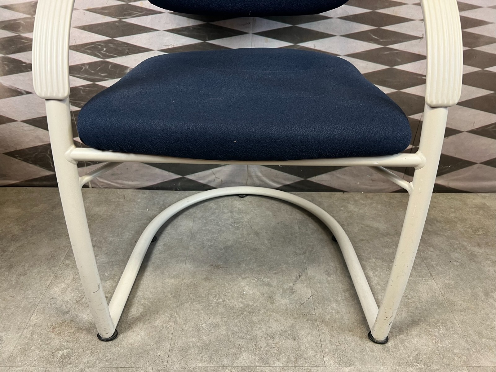 Set bestehend aus drei Vintage Bürostühlen. Gestell aus Kunststoff und Metall, Polster leicht verschmutzt und abgenutzt. Stabiler Zustand, im Fußbereich berieben. Guter Sitzkomfort, Abmessungen BTH: 57x50x84cm, Sitzhöhe: 48cm, Sitzbreite: 49cm.