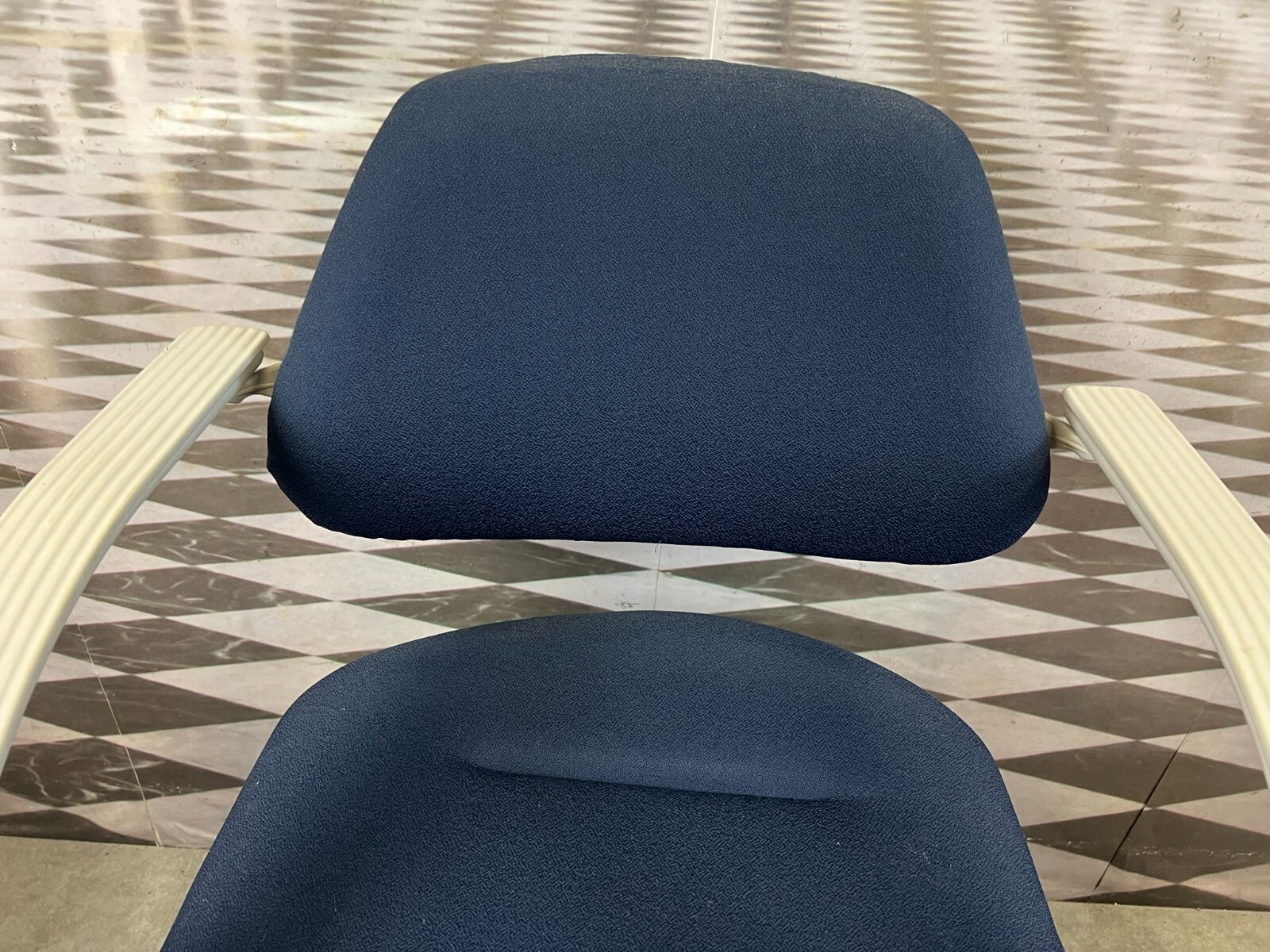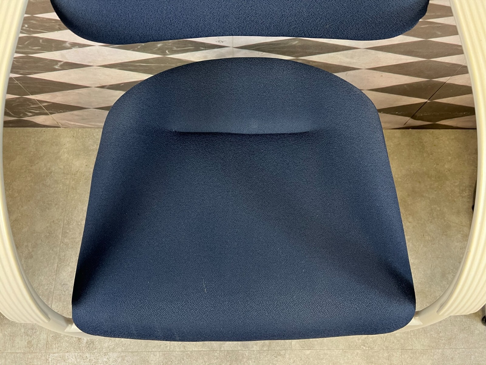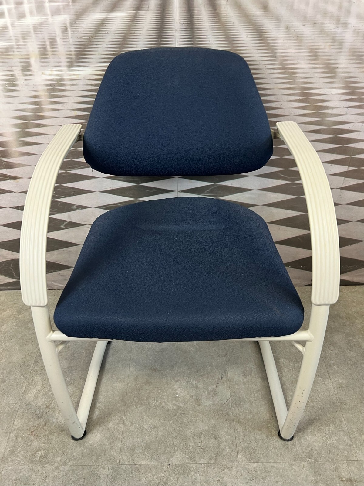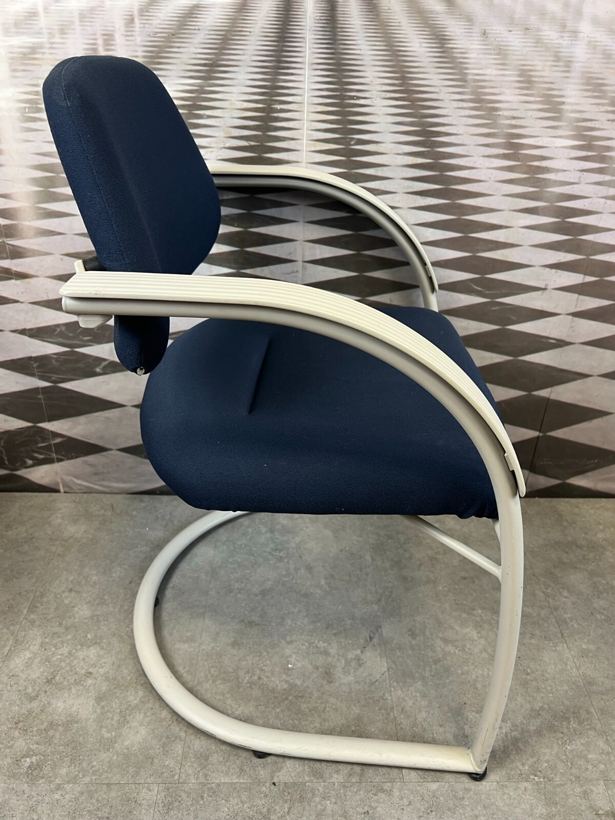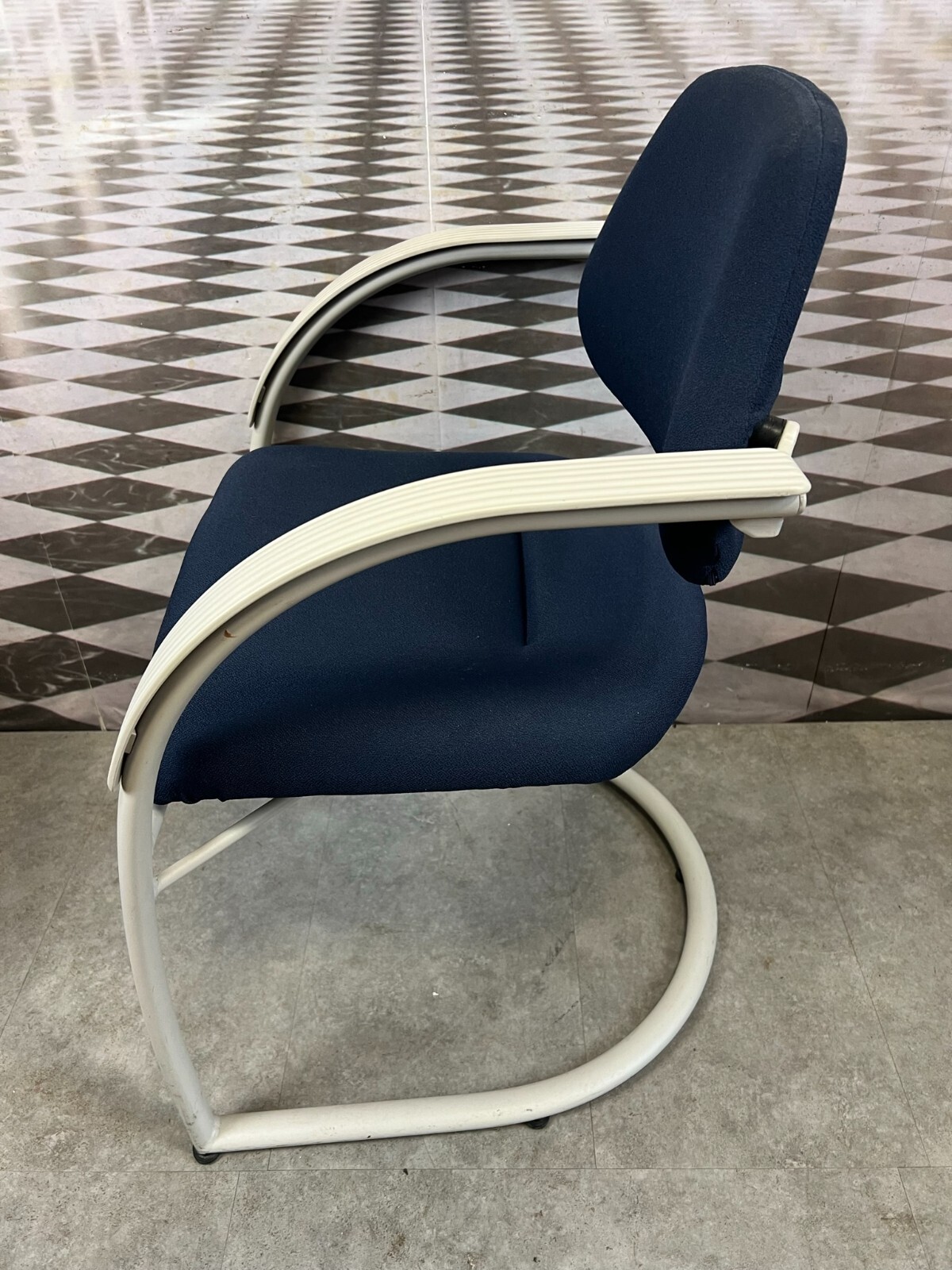 Set bestehend aus drei Vintage Bürostühlen. Gestell aus Kunststoff und Metall, Polster leicht verschmutzt und abgenutzt. Stabiler Zustand, im Fußbereich berieben. Guter Sitzkomfort, Abmessungen BTH: 57x50x84cm, Sitzhöhe: 48cm, Sitzbreite: 49cm.