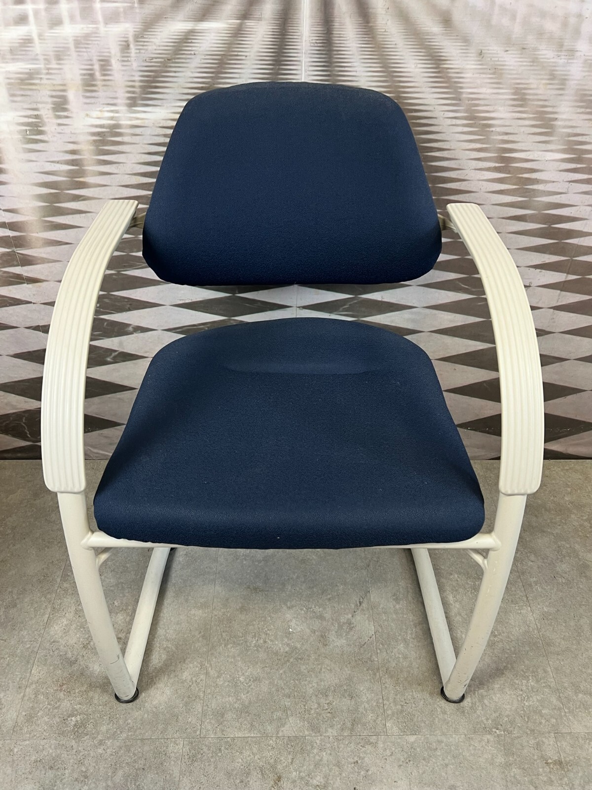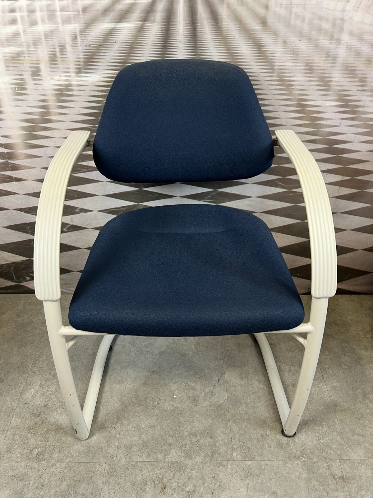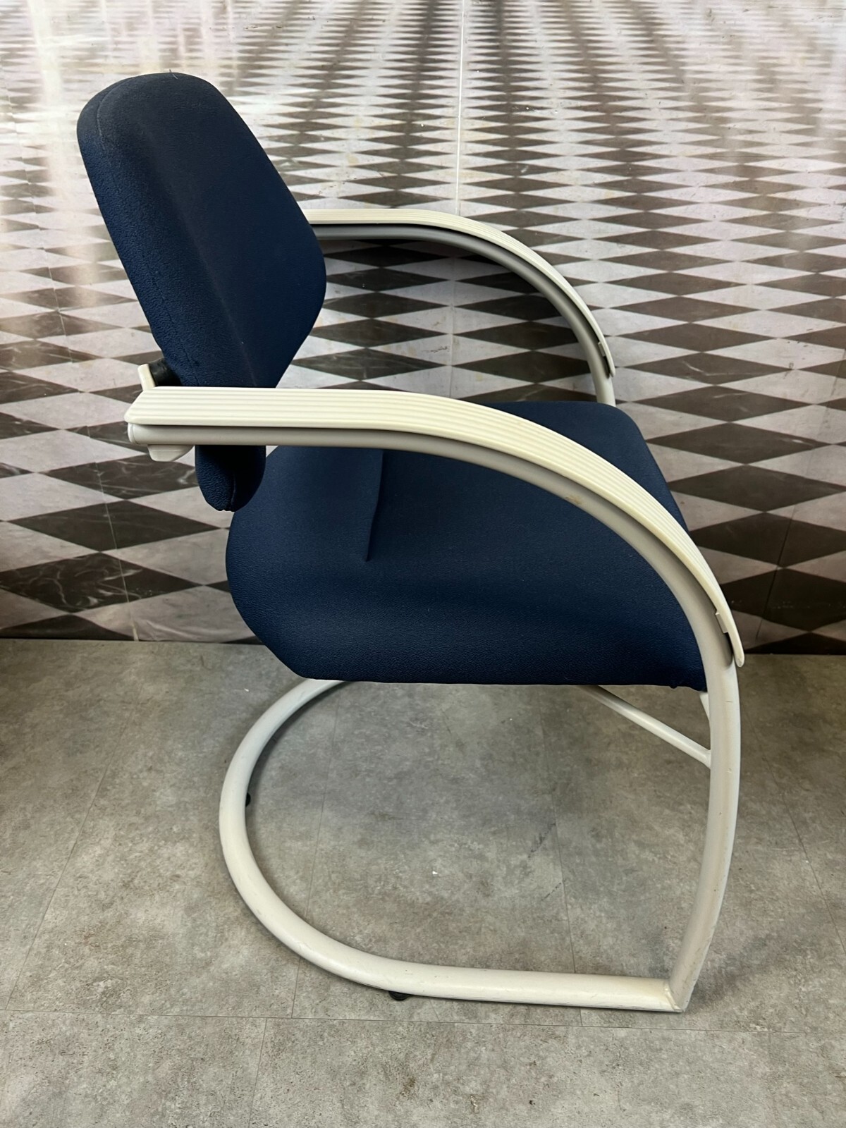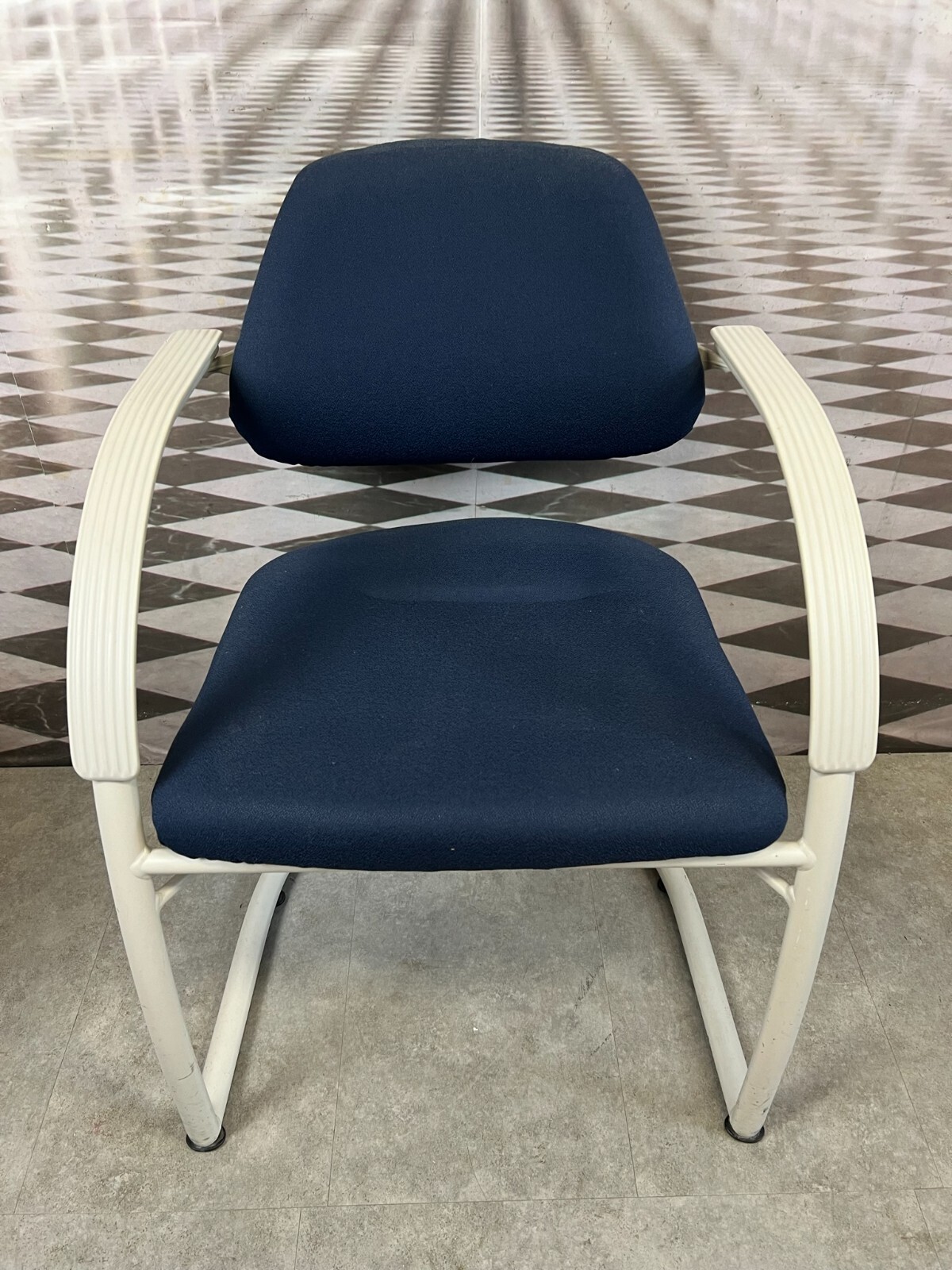 Set bestehend aus drei Vintage Bürostühlen. Gestell aus Kunststoff und Metall, Polster leicht verschmutzt und abgenutzt. Stabiler Zustand, im Fußbereich berieben. Guter Sitzkomfort, Abmessungen BTH: 57x50x84cm, Sitzhöhe: 48cm, Sitzbreite: 49cm.
