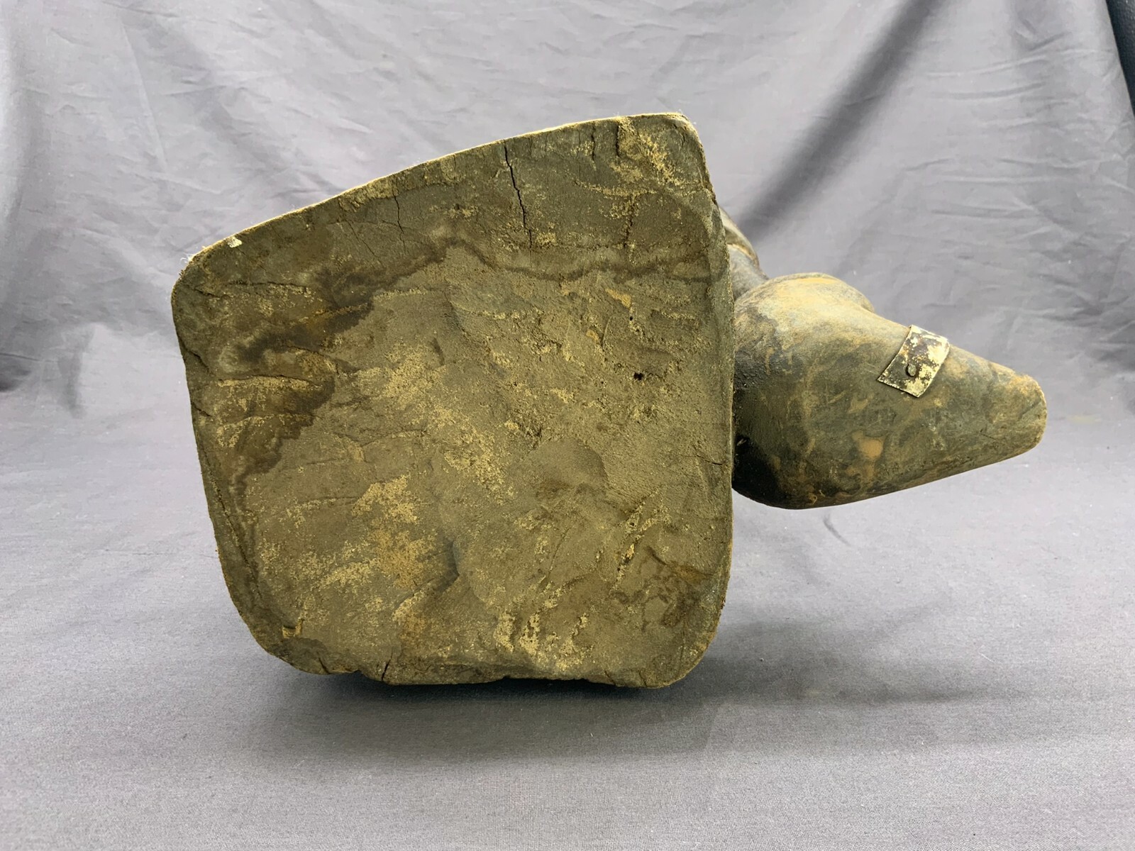 Sehr schöne afrikanische Skulptur aus Holz, mit Metallappliken versehen. Wohl erste Hälfte 20-tes Jhdt. Sehr schöner Zustand, minimale Dehnungsrisse. Abmessungen BTH 17/22/42cm.