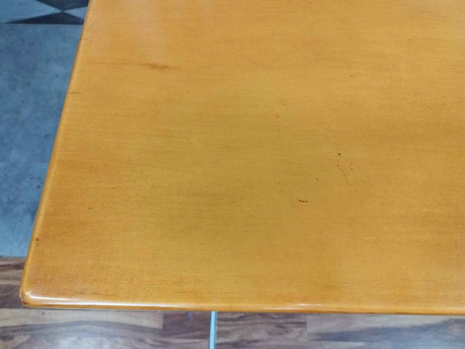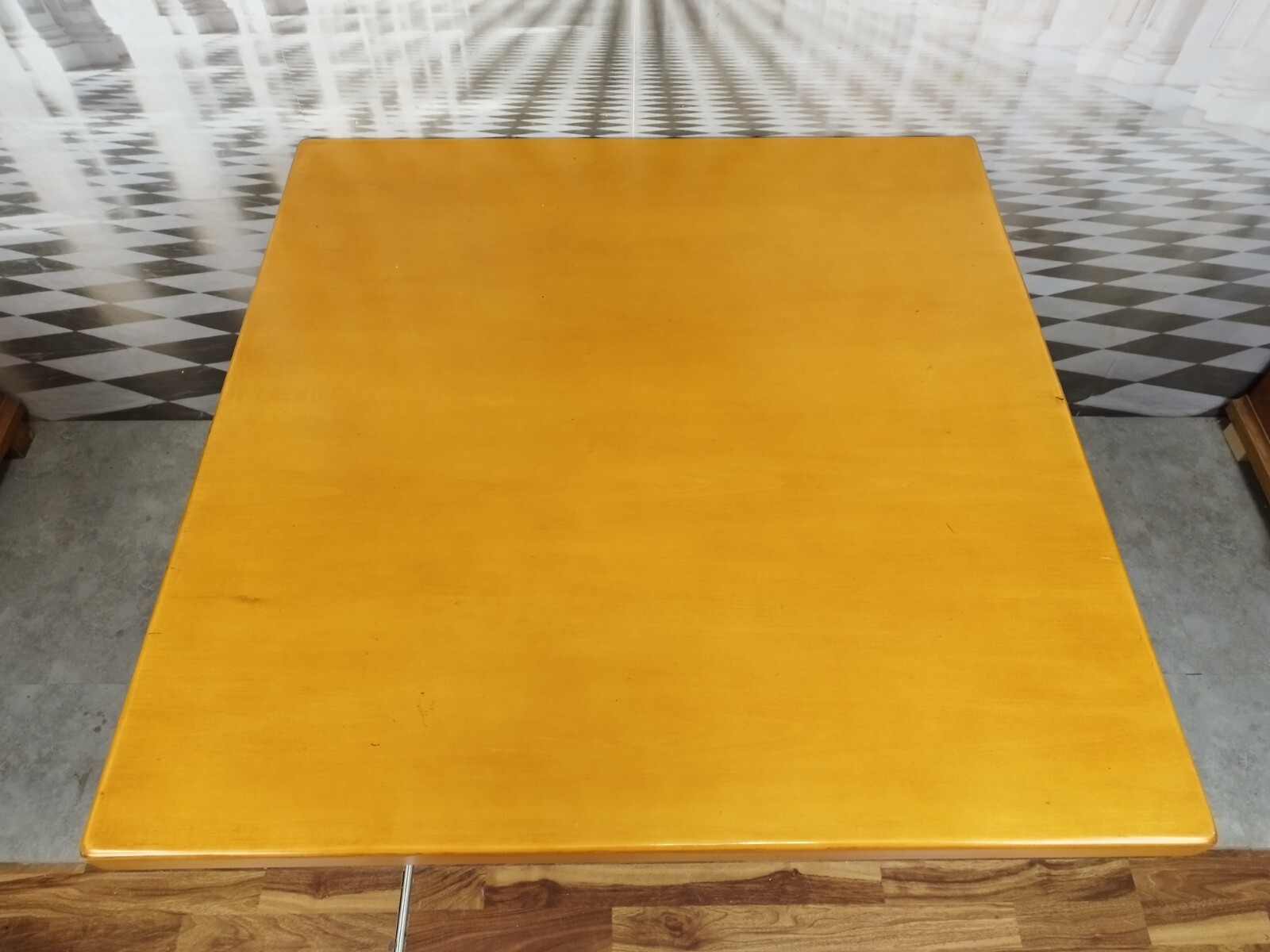 Schöner Bauerntisch, Holz massiv, lackiert, barocker Stil, 20-tes Jhdt. Die Oberfläche der Platte hat leichte Kratzer, die Ecken sind berieben und die linke Kante der Tischplatte ist in der linken hinteren Ecke berieben. Der Tisch hat eine Schublade. Der Tisch ist im Fußbereich leicht berieben, stärker an den Ecken. Die hintere linke Ecke ist leicht unvollständig. Abmessungen BTH: 105x105x74cm.