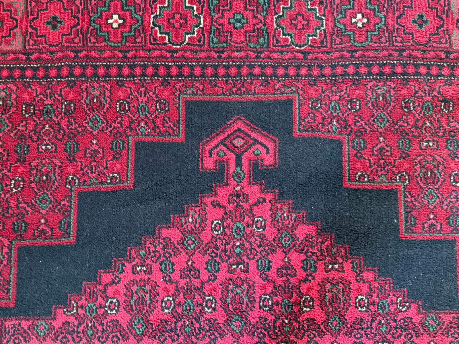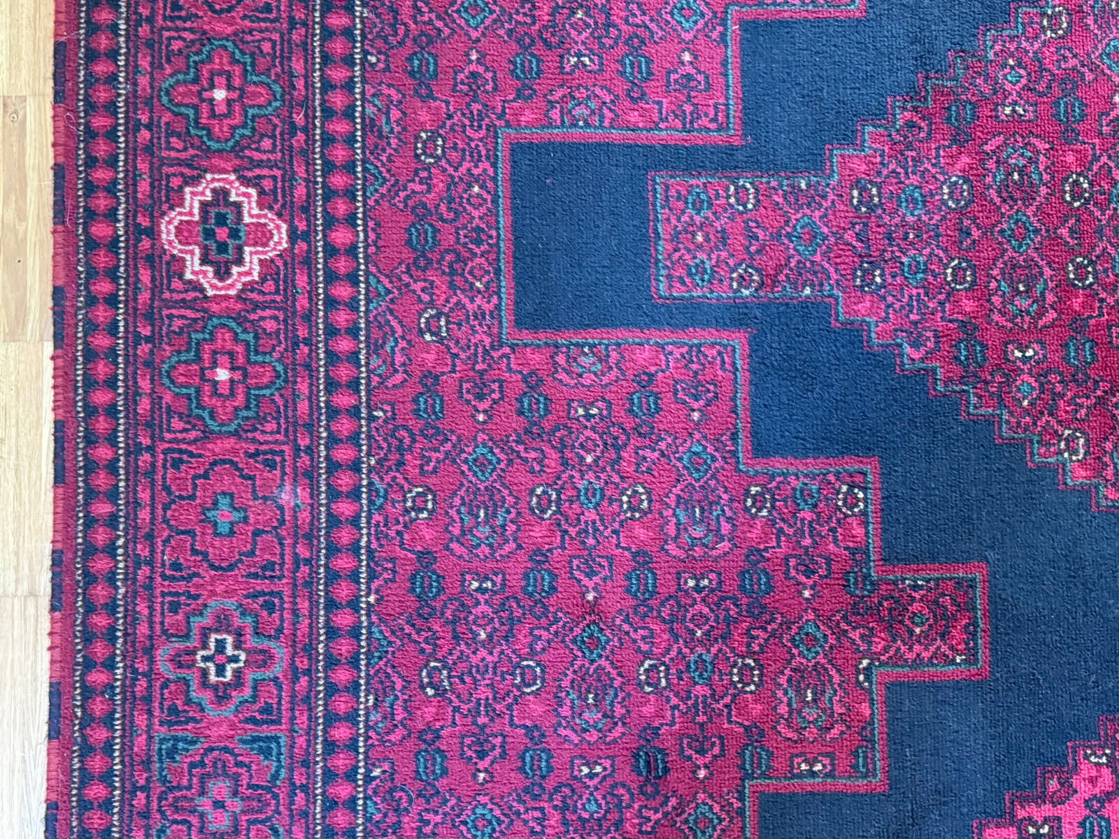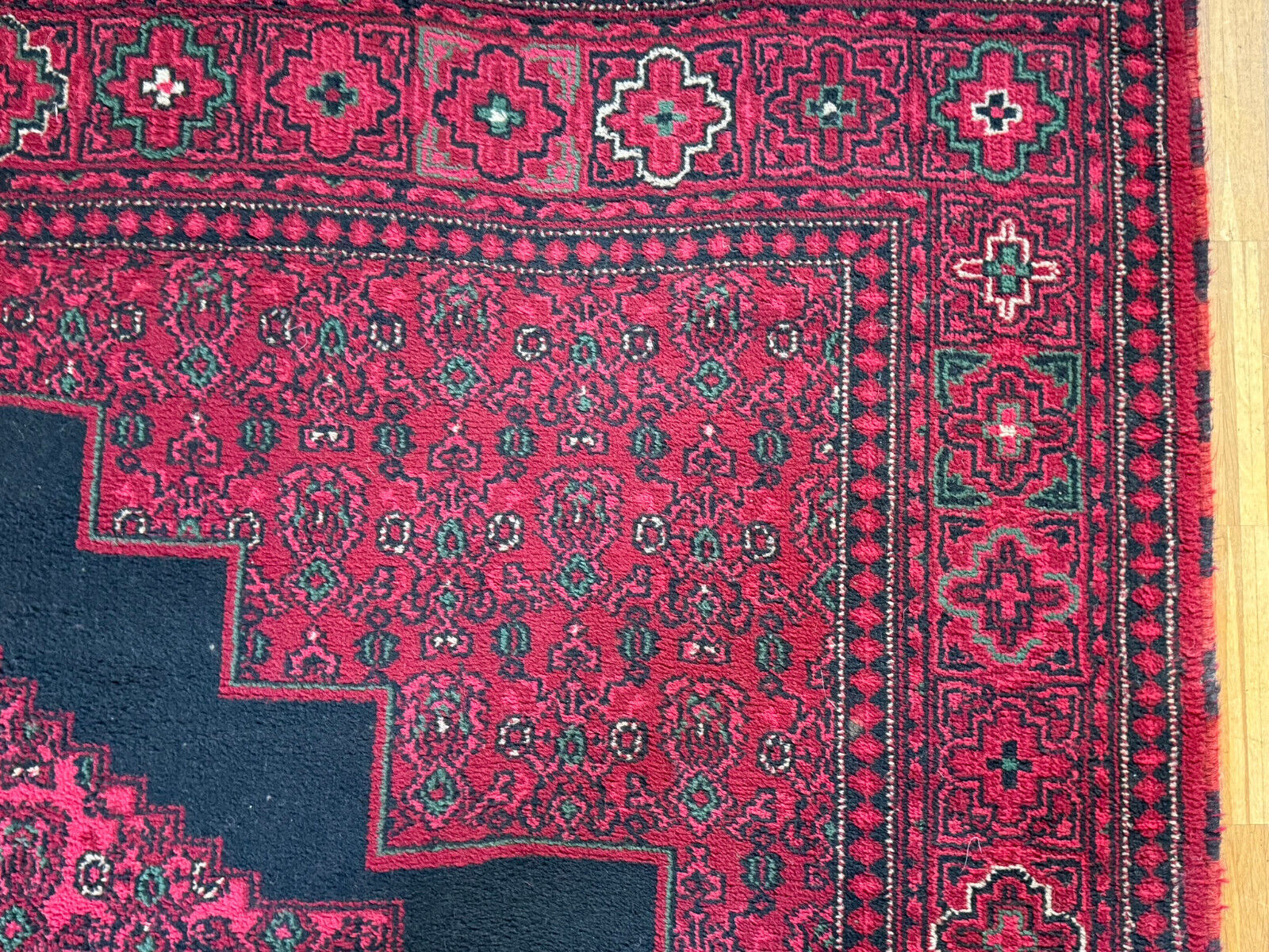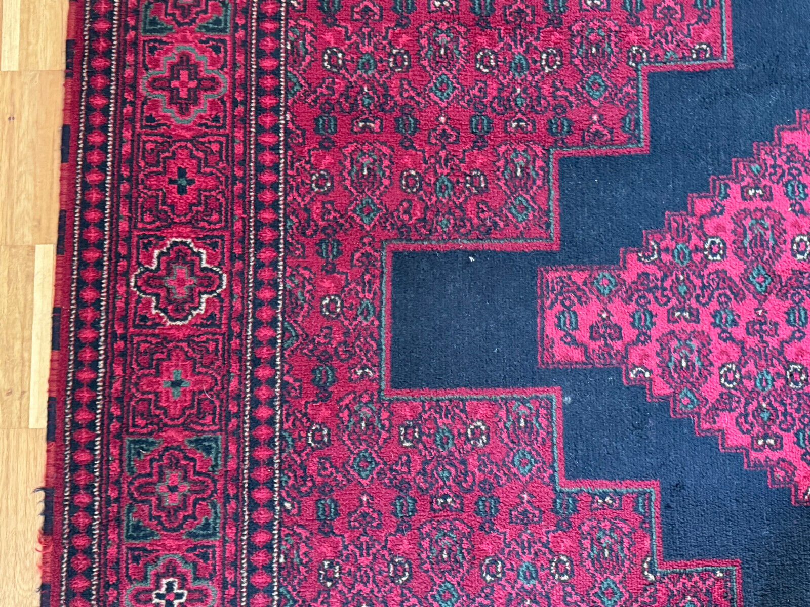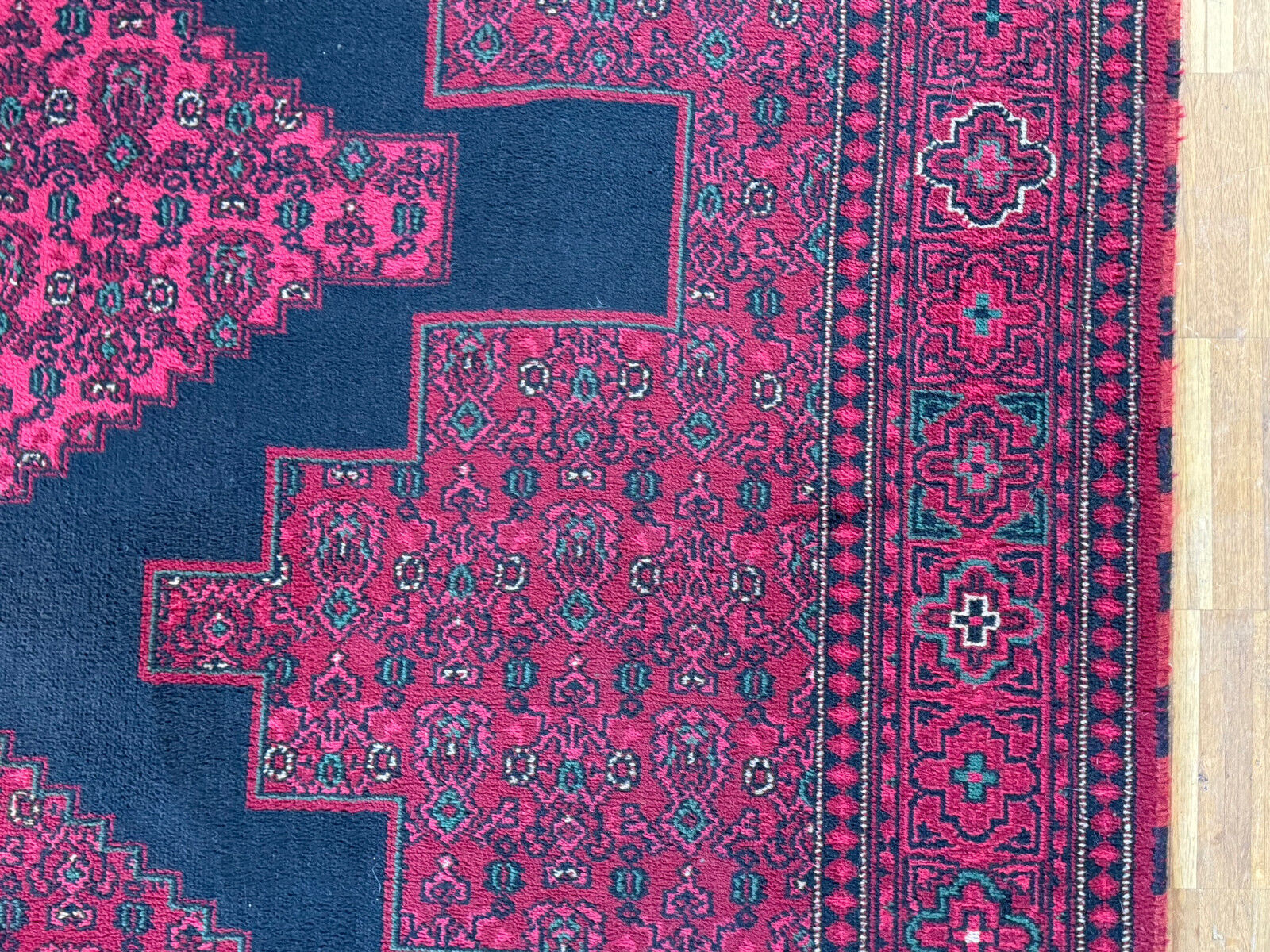 Sehr schöner Teppich aus Wolle, handgeknüpft mit turmenischen Mustern. Fransen leicht verschlissen, und der Fransenrand leicht lose, am oberen Rand Fransen leicht verkürzt. Ohne Flecken oder Mottenfrass. Abmessungen 300xx201cm INKLUSIVE FRANSEN. Die Teppiche sind nicht gewaschen, riechen weder nach Rauch noch nach Tieren.