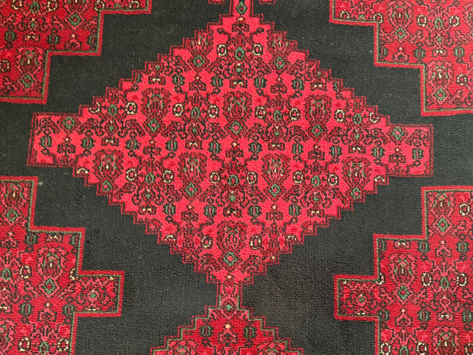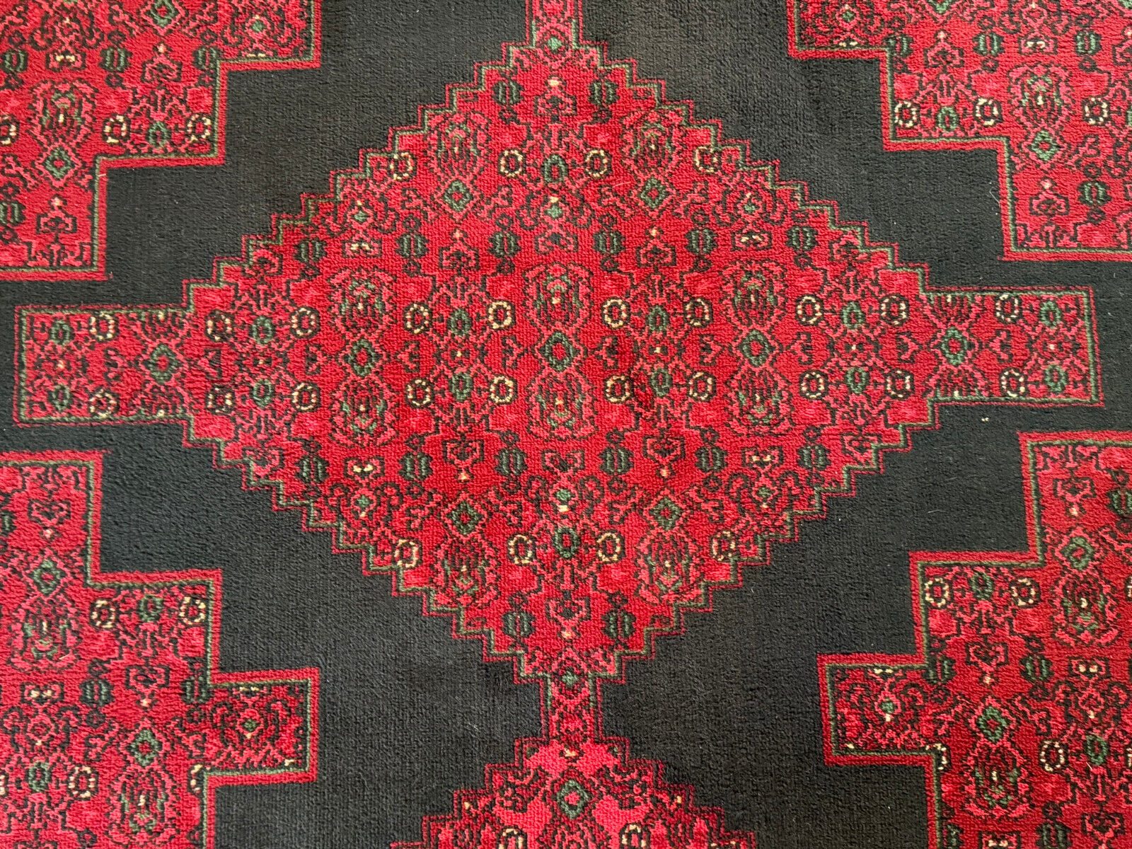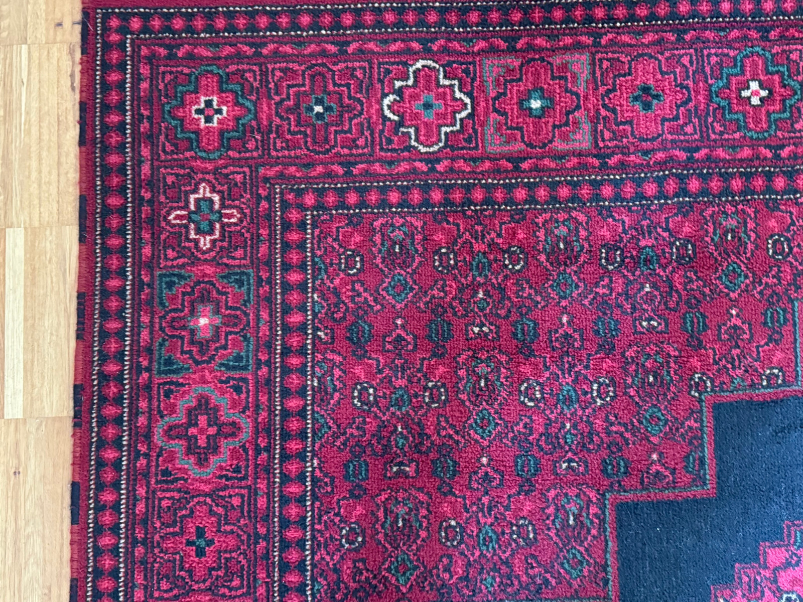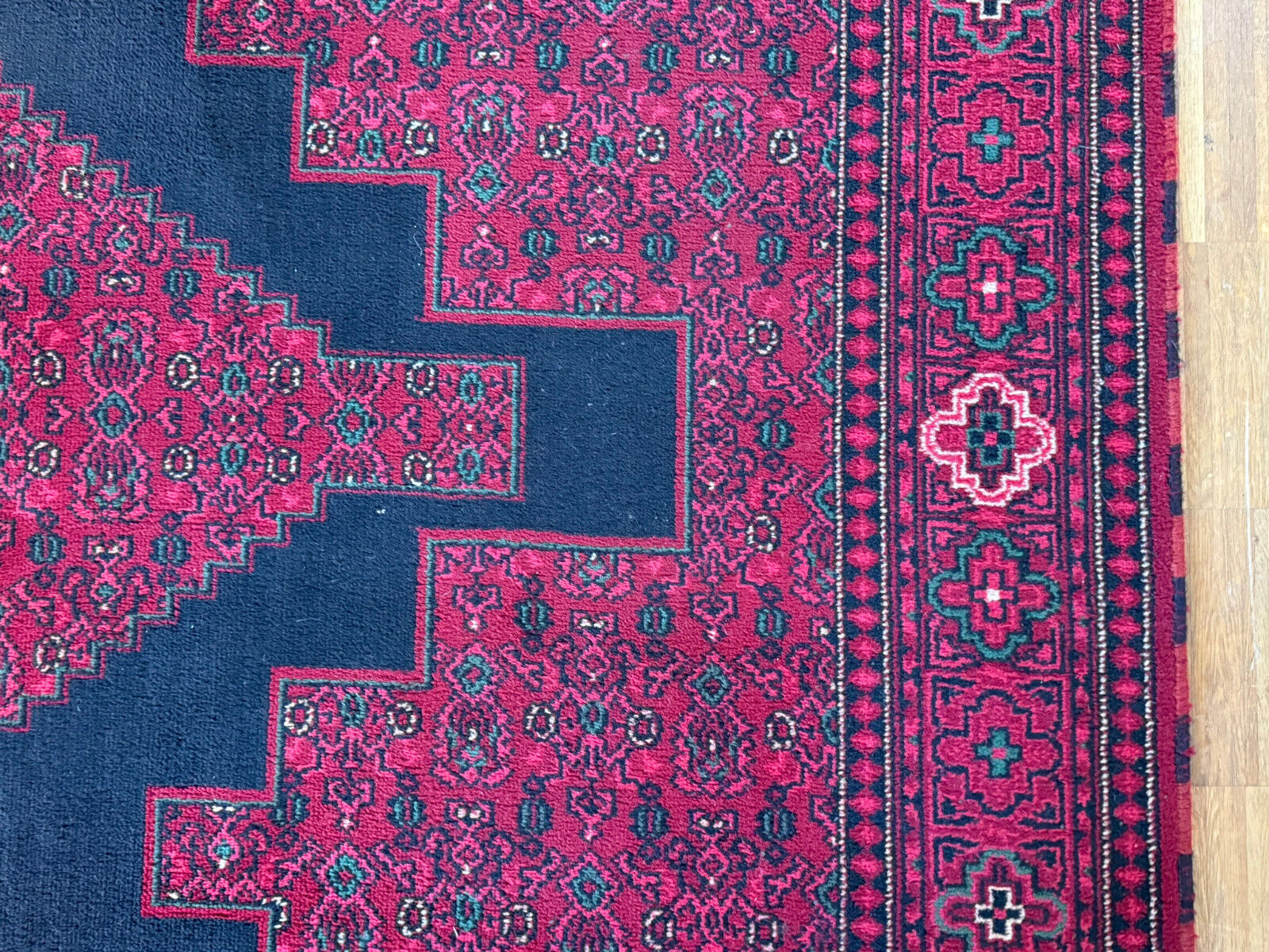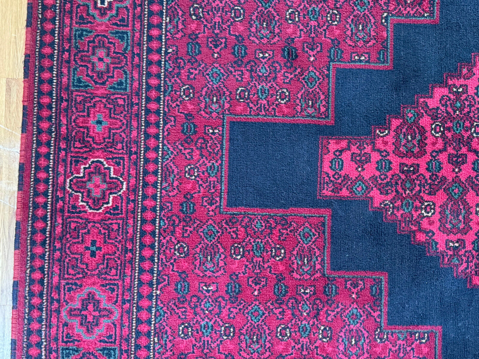 Sehr schöner Teppich aus Wolle, handgeknüpft mit turmenischen Mustern. Fransen leicht verschlissen, und der Fransenrand leicht lose, am oberen Rand Fransen leicht verkürzt. Ohne Flecken oder Mottenfrass. Abmessungen 300xx201cm INKLUSIVE FRANSEN. Die Teppiche sind nicht gewaschen, riechen weder nach Rauch noch nach Tieren.