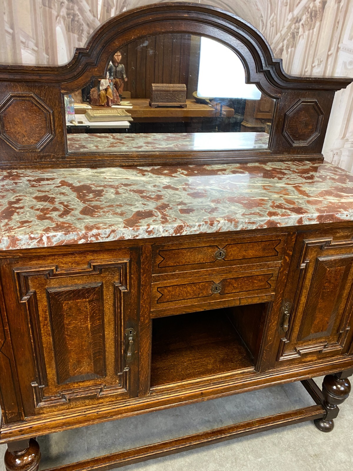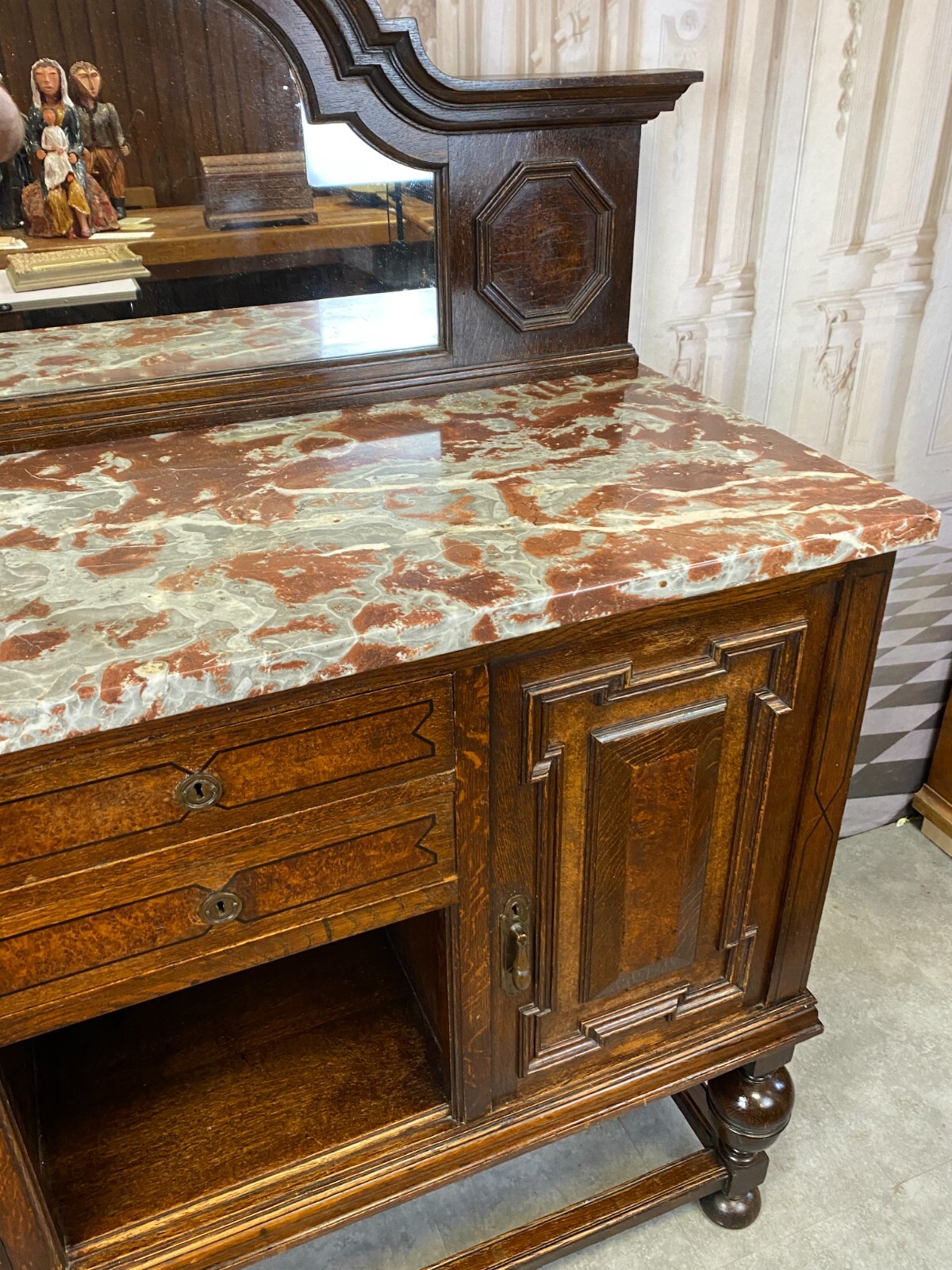 ANTIKE ANRICHTE BUFFET SAINT REMY MARMORPLATTE UND SPIEGEL UM 1880 FRANKREICH
