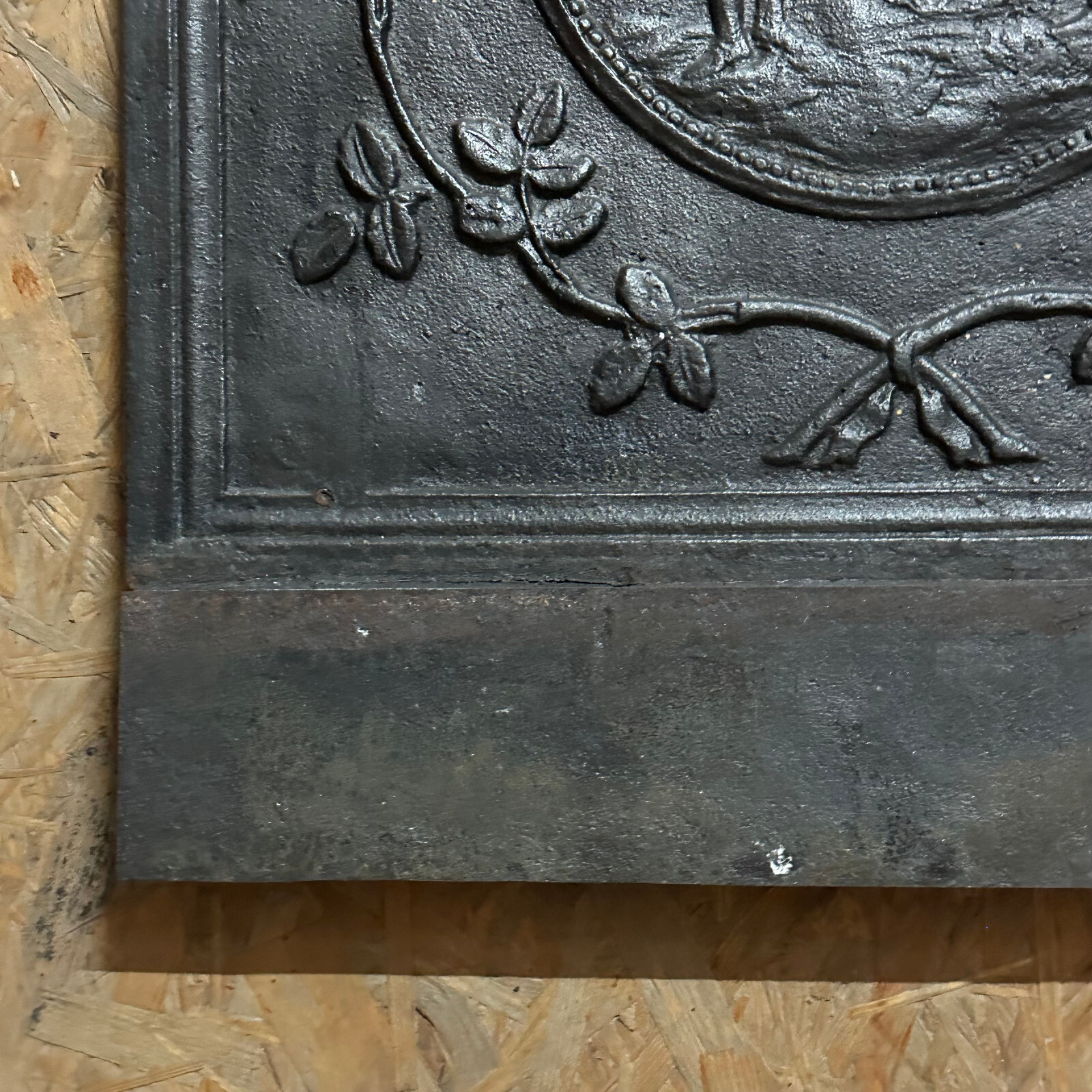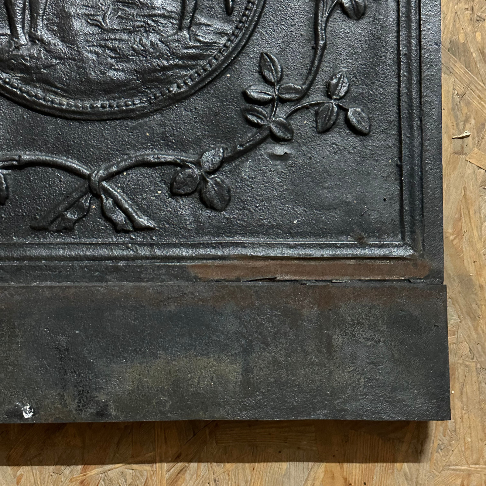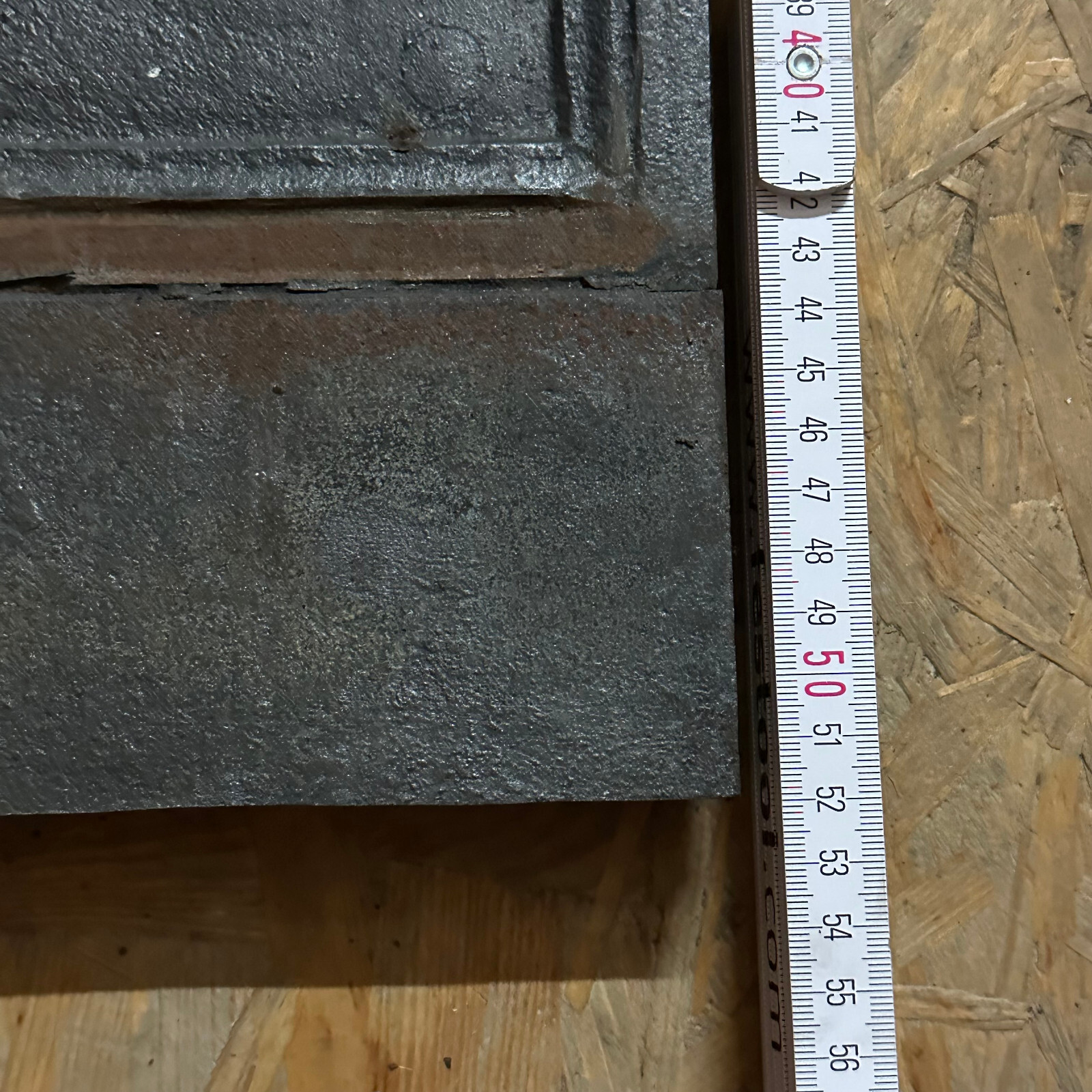 Antike Ofenplatte aus Eisen, 19-tes Jhdt. BITTE FOTOS BEACHTEN – Oberfläche berieben, abgenutzt und zum Teil korrodiert/rostig. Abmessungen BxH 45x52cm.