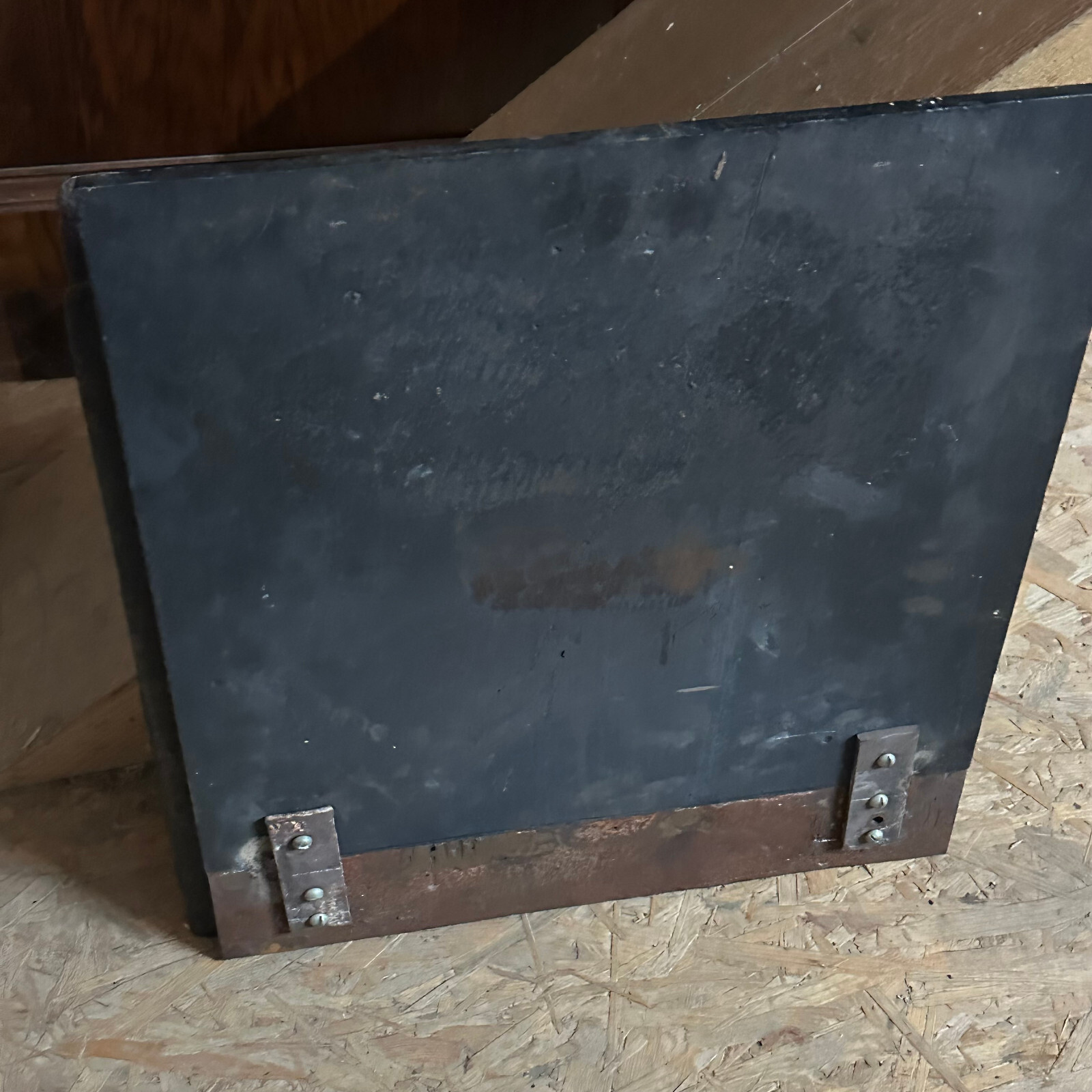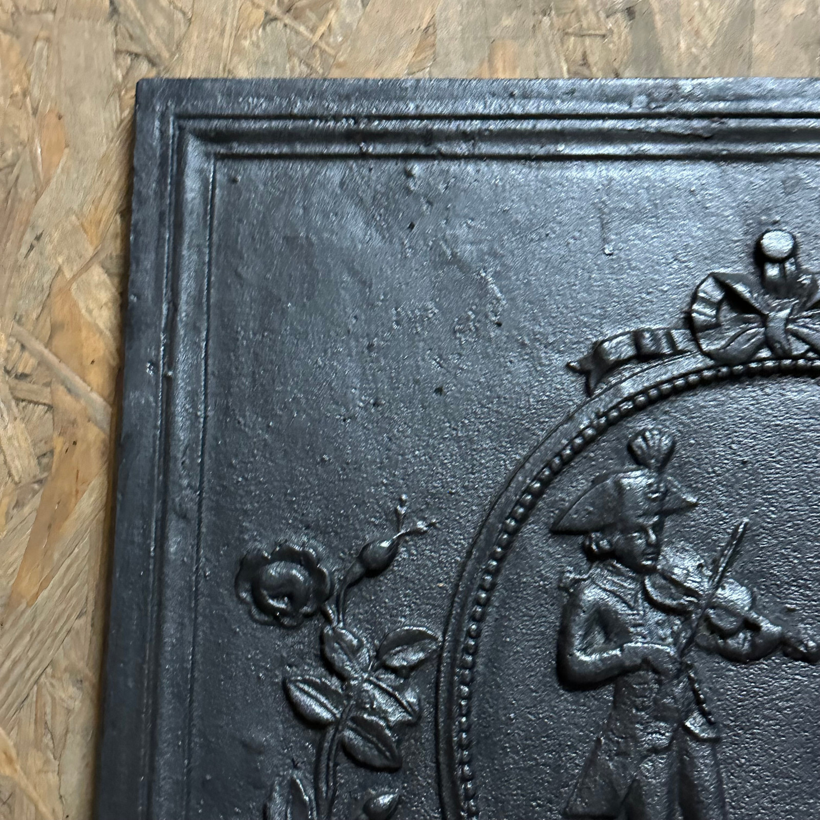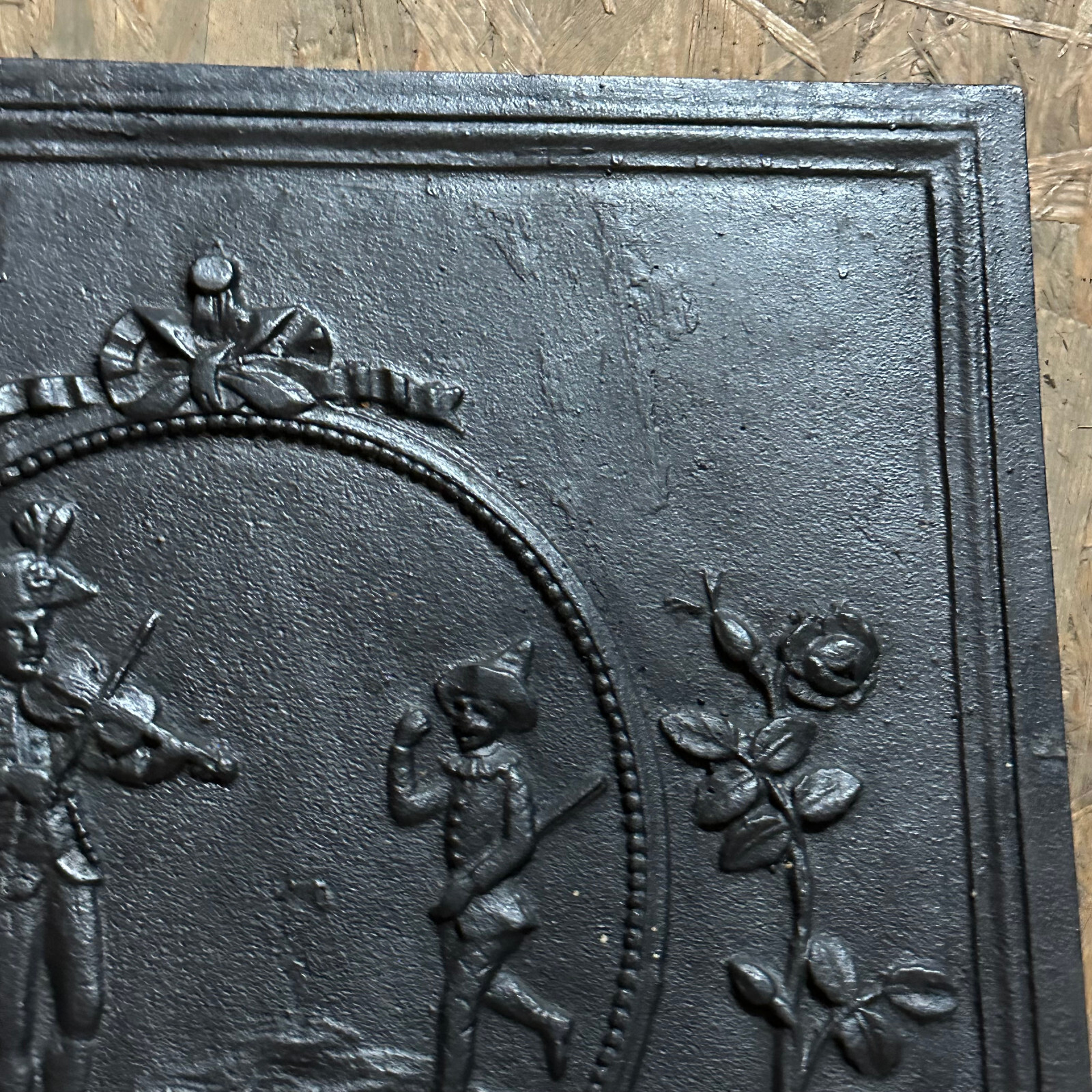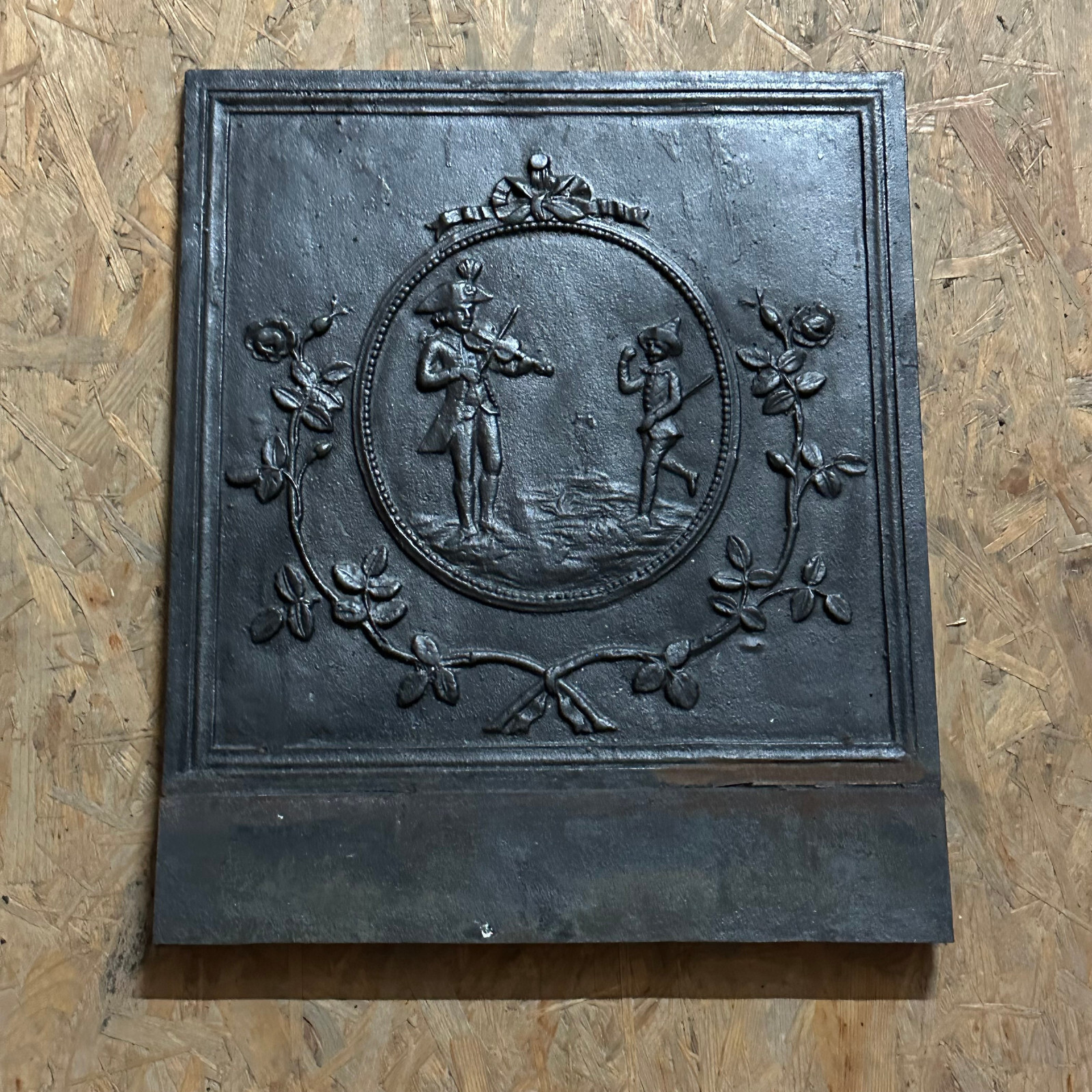 Antike Ofenplatte aus Eisen, 19-tes Jhdt. BITTE FOTOS BEACHTEN – Oberfläche berieben, abgenutzt und zum Teil korrodiert/rostig. Abmessungen BxH 45x52cm.