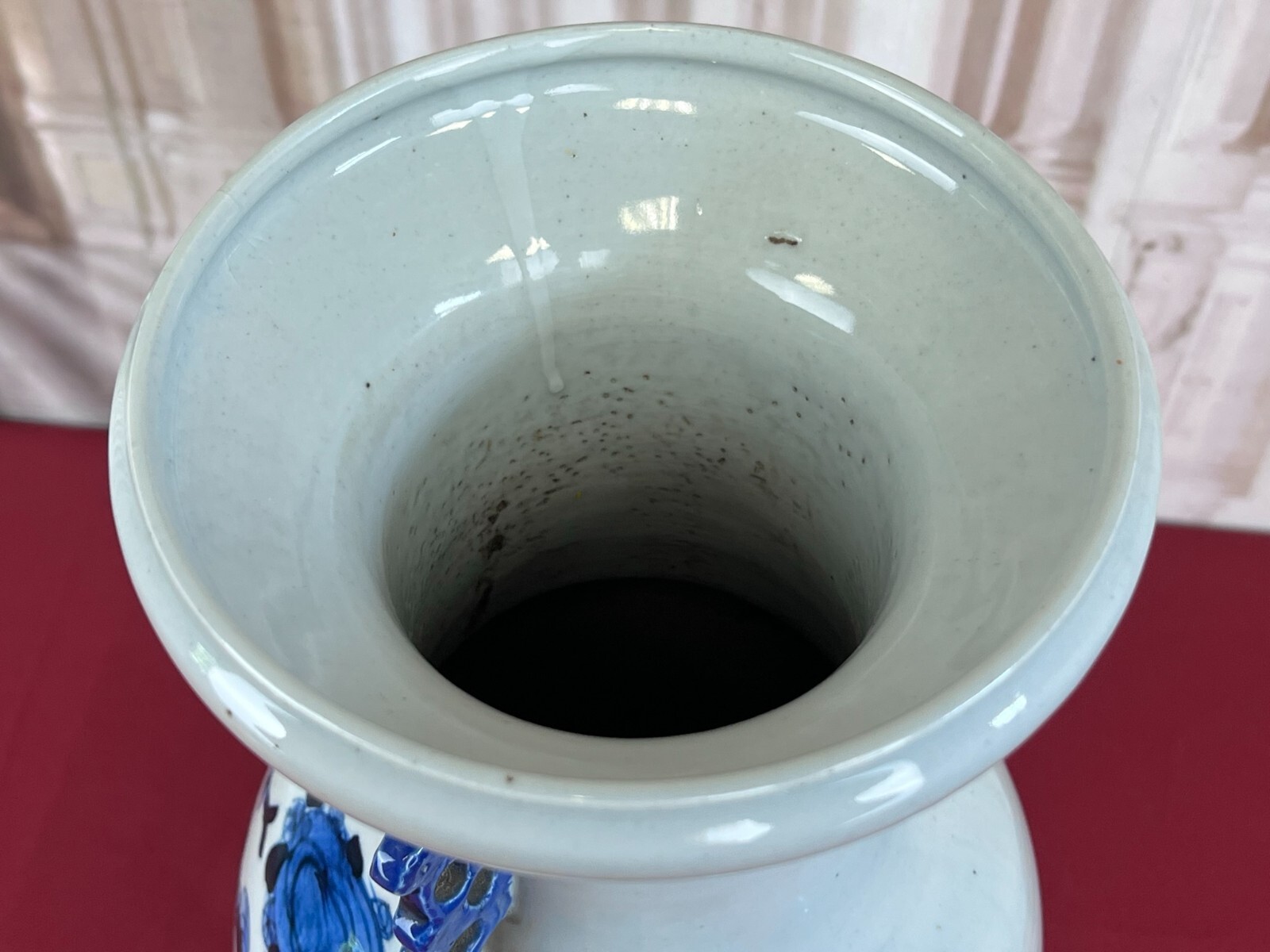 Antike chinesische Vase aus Porzellan um 1900. Oberfläche leicht berieben, diverse Brandfehler, innen Ablagerungen. Ohne Chips, am Hals kleiner Sprung in der Glasur. Höhe/Durchmesser 44/19cm. Beachten Sie bitte die Bilder, diese sind Bestandteil der Auktionsbeschreibung. Sonstige Gegenstände auf den Fotos sind nicht Bestandteil des Angebotes. Sie können uns ganz einfach zu Ihren favorisierten Verkäufern hinzufügen. So werden Sie immer über neue Artikel und Angebote informiert.