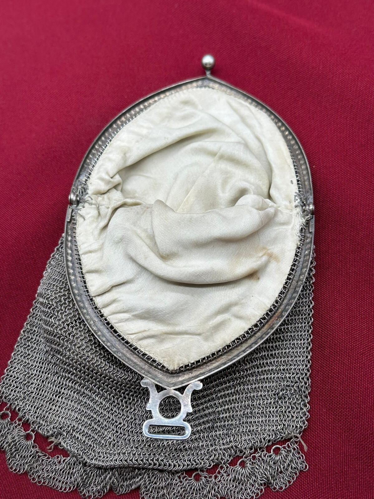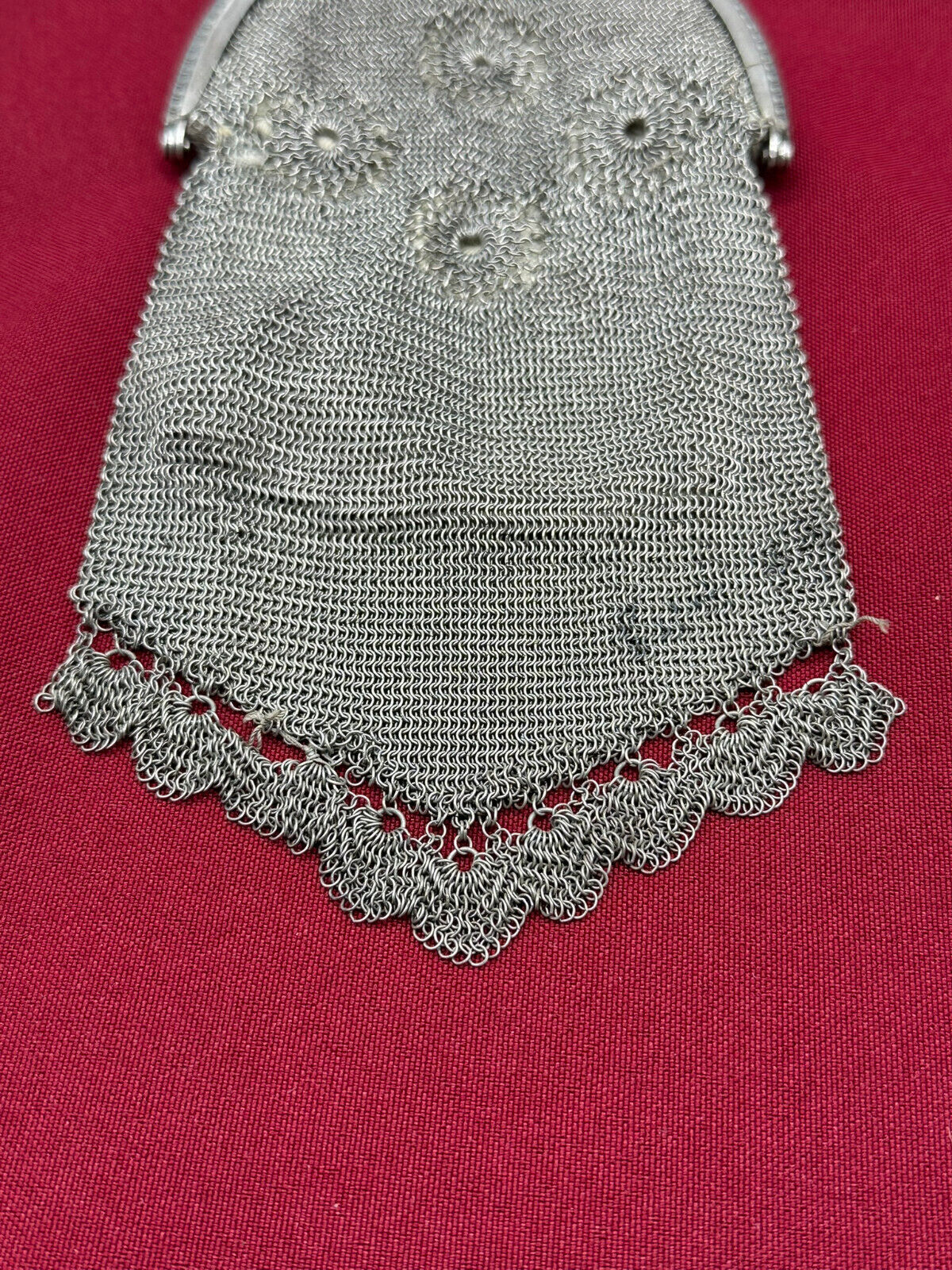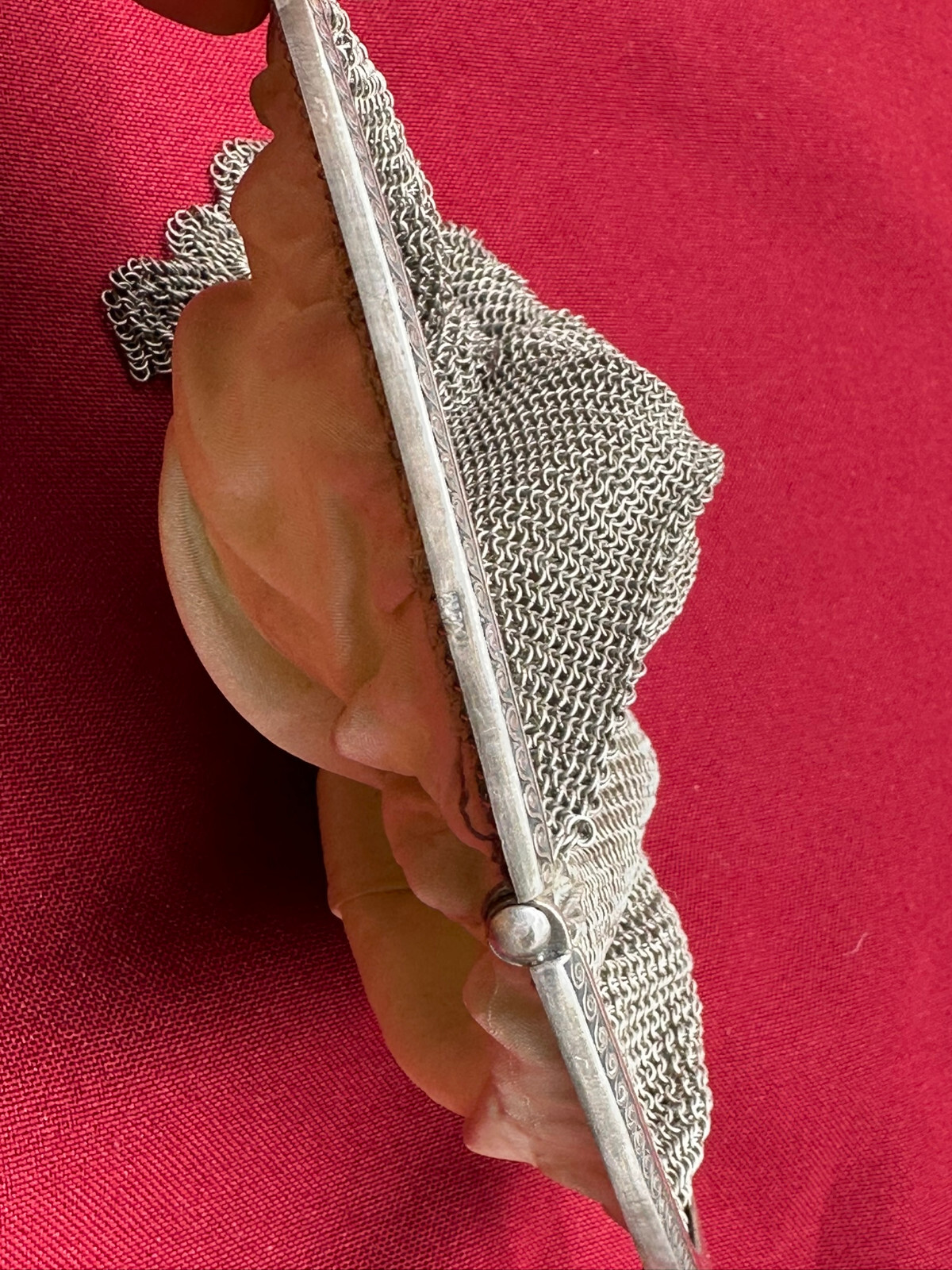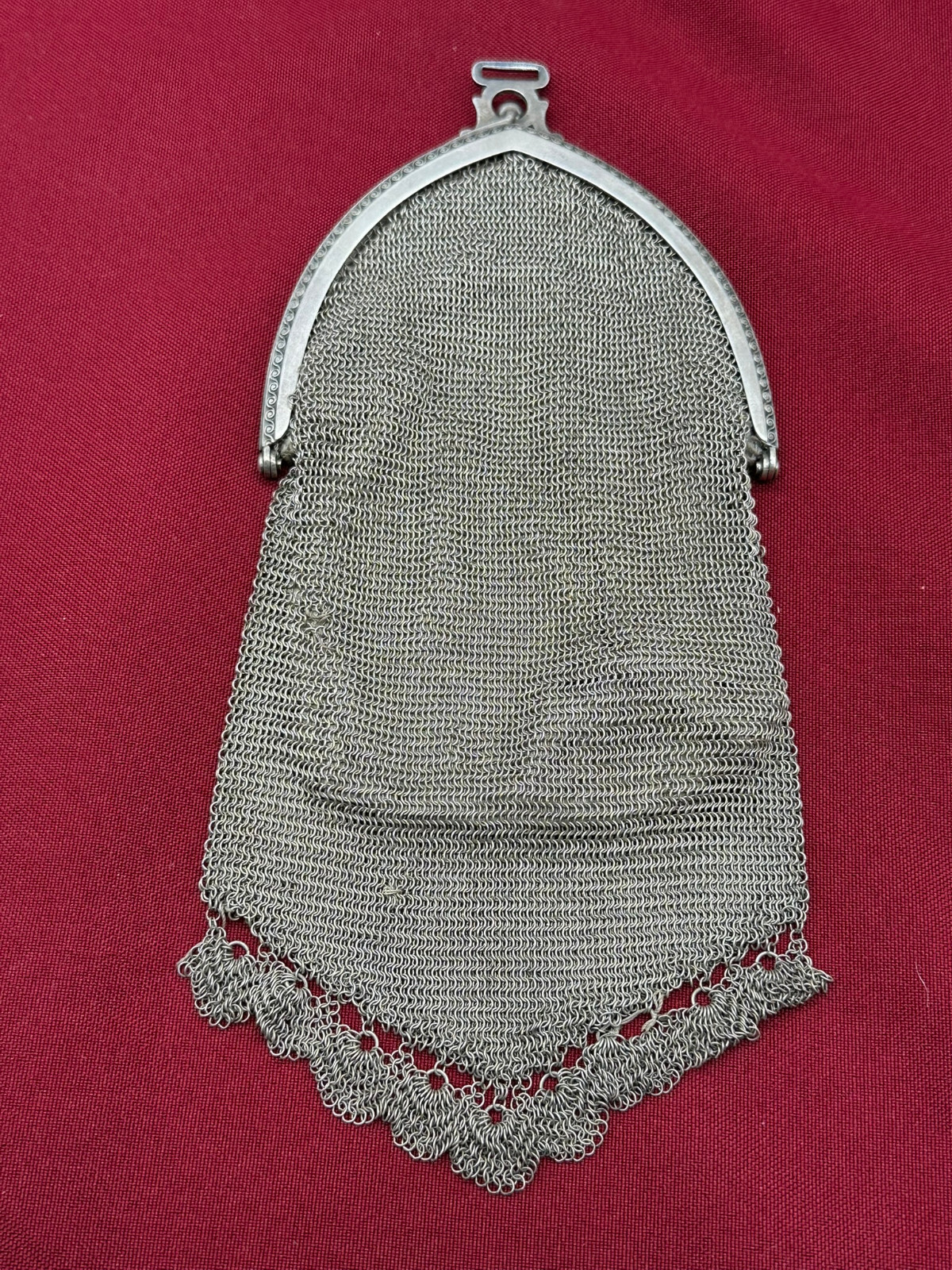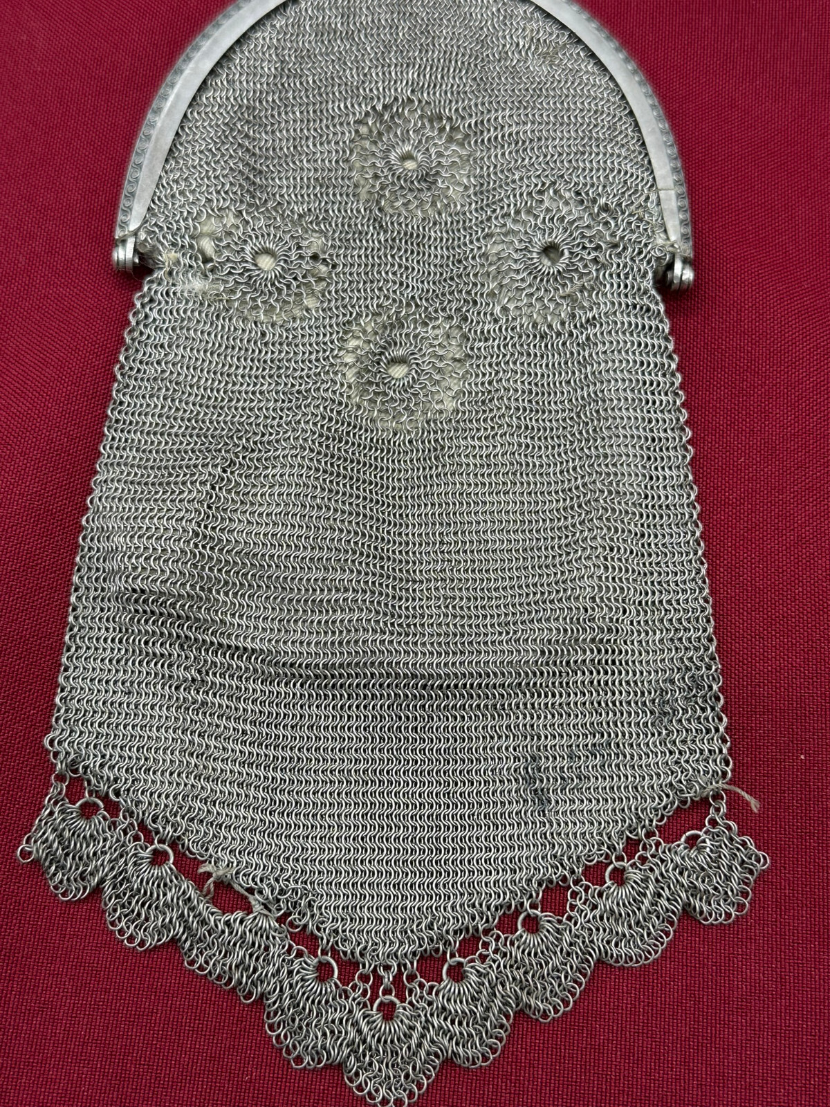 Sehr schöne Handtasche aus Alpaca, punziert. Kleinere Defekte an den Ketten, Abmessungen BxH 9,5/22cm.