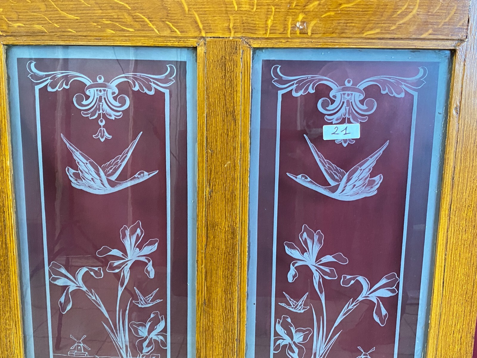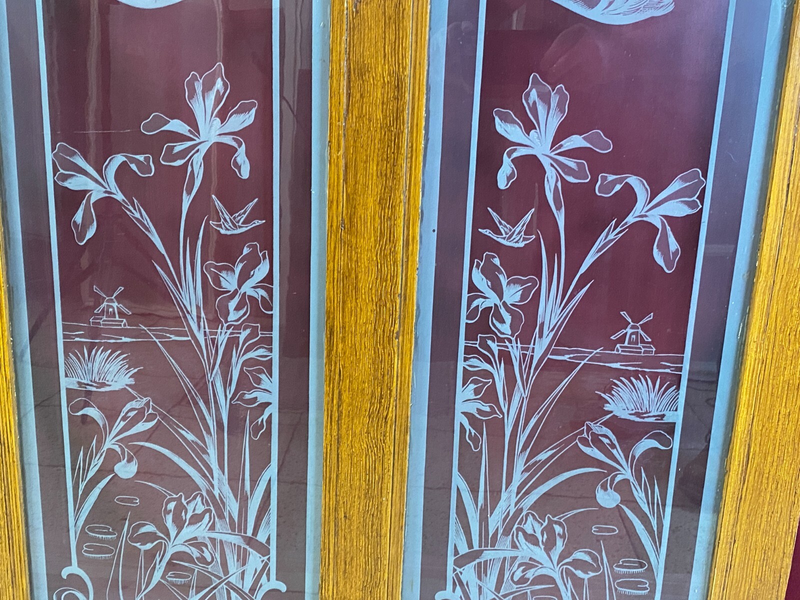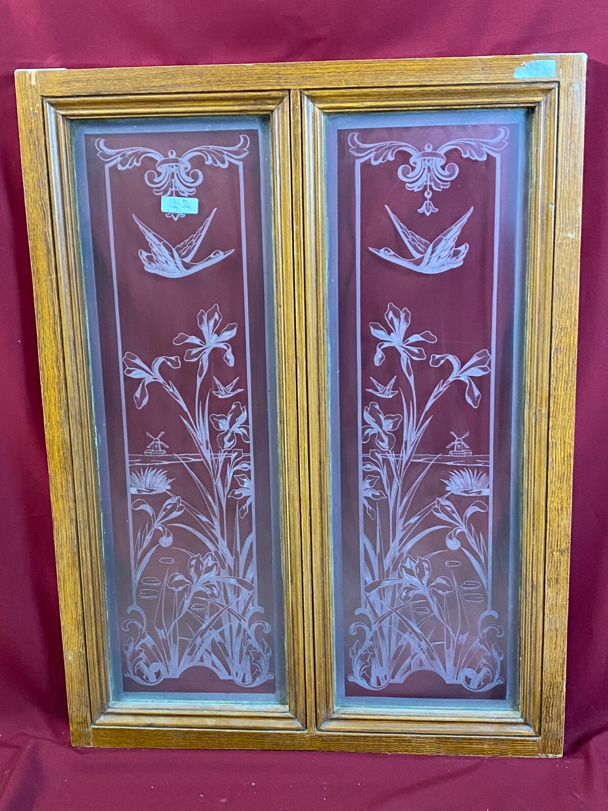 ANTIKE DOPPEL GLASSCHEIBE JUGENDSTIL UM 1890 BLUMEN GIRLANDEN VOGEL