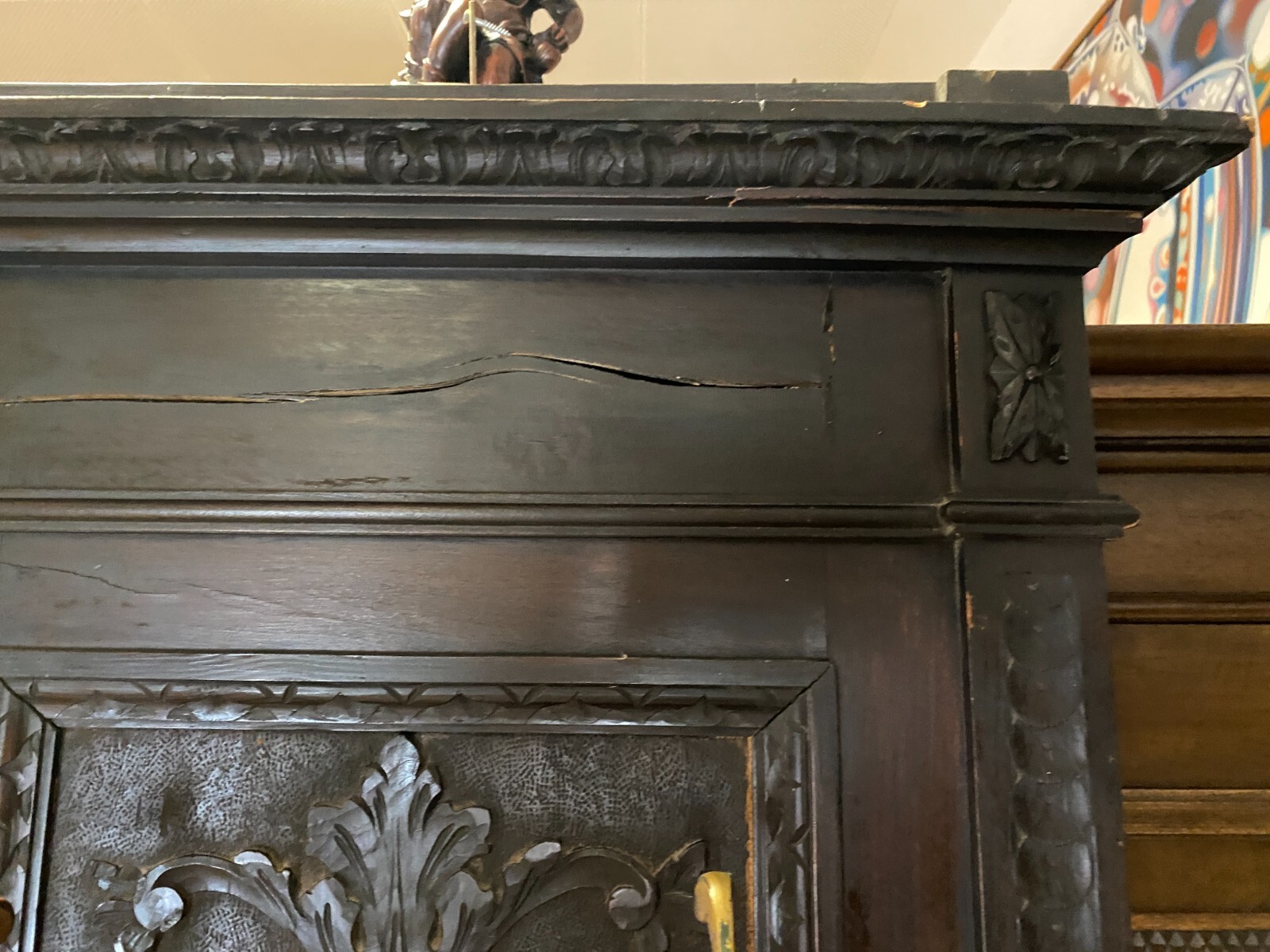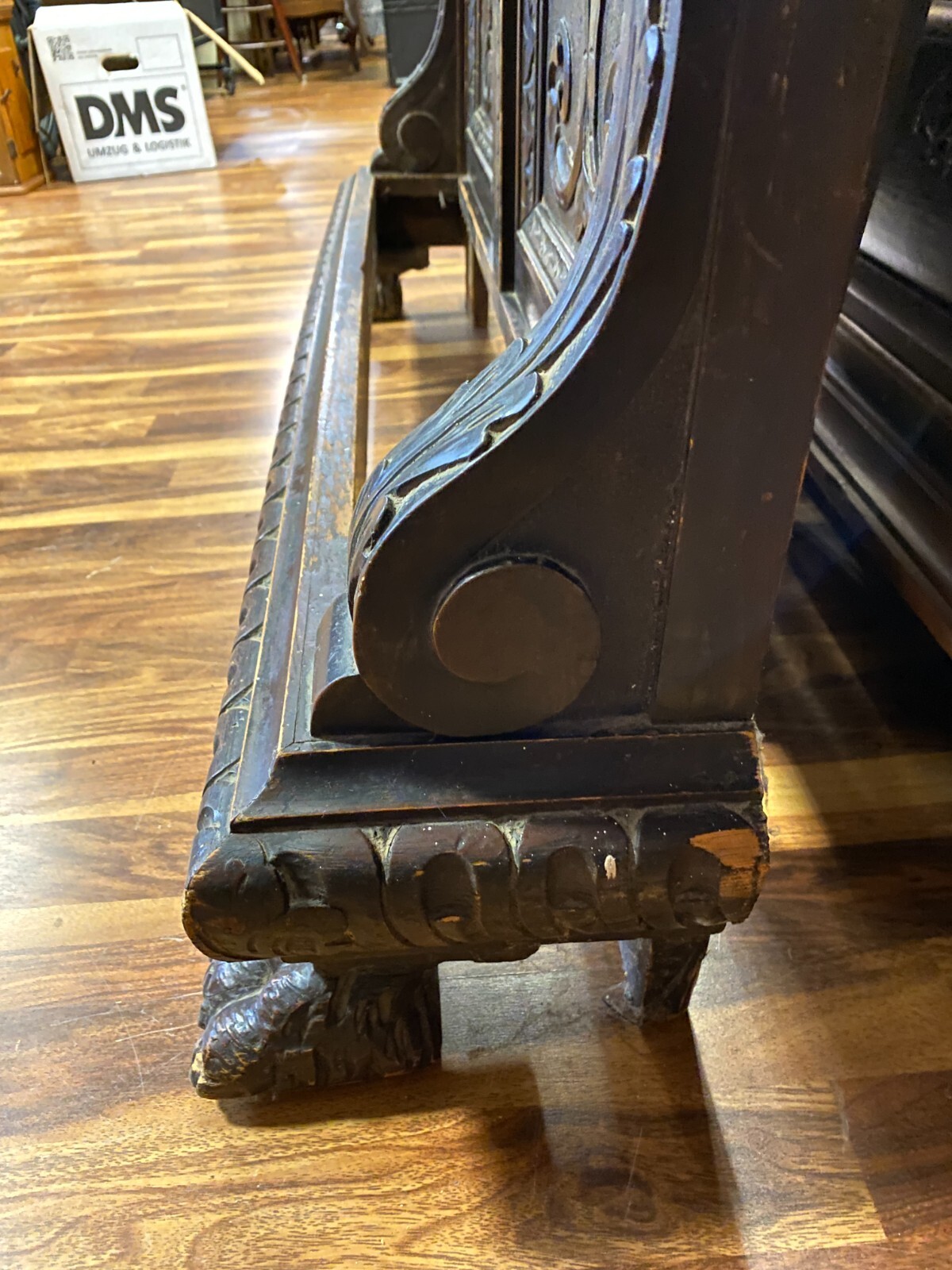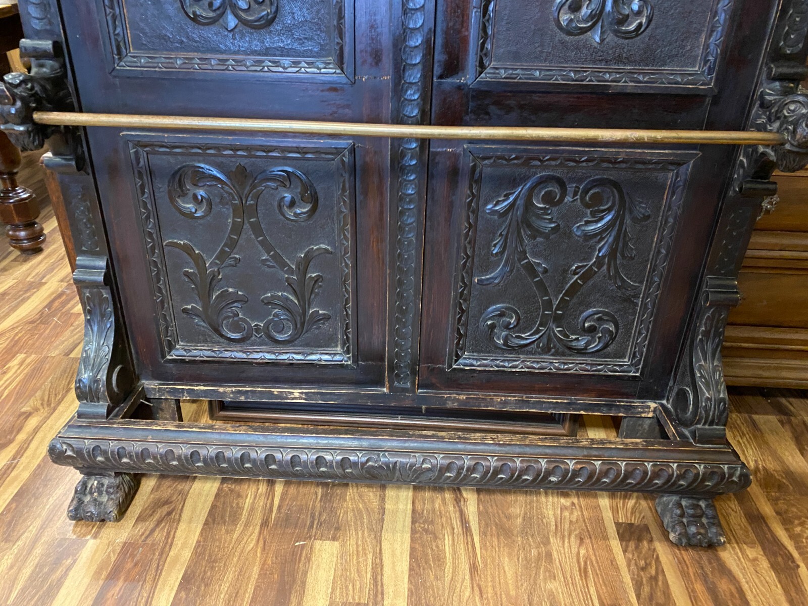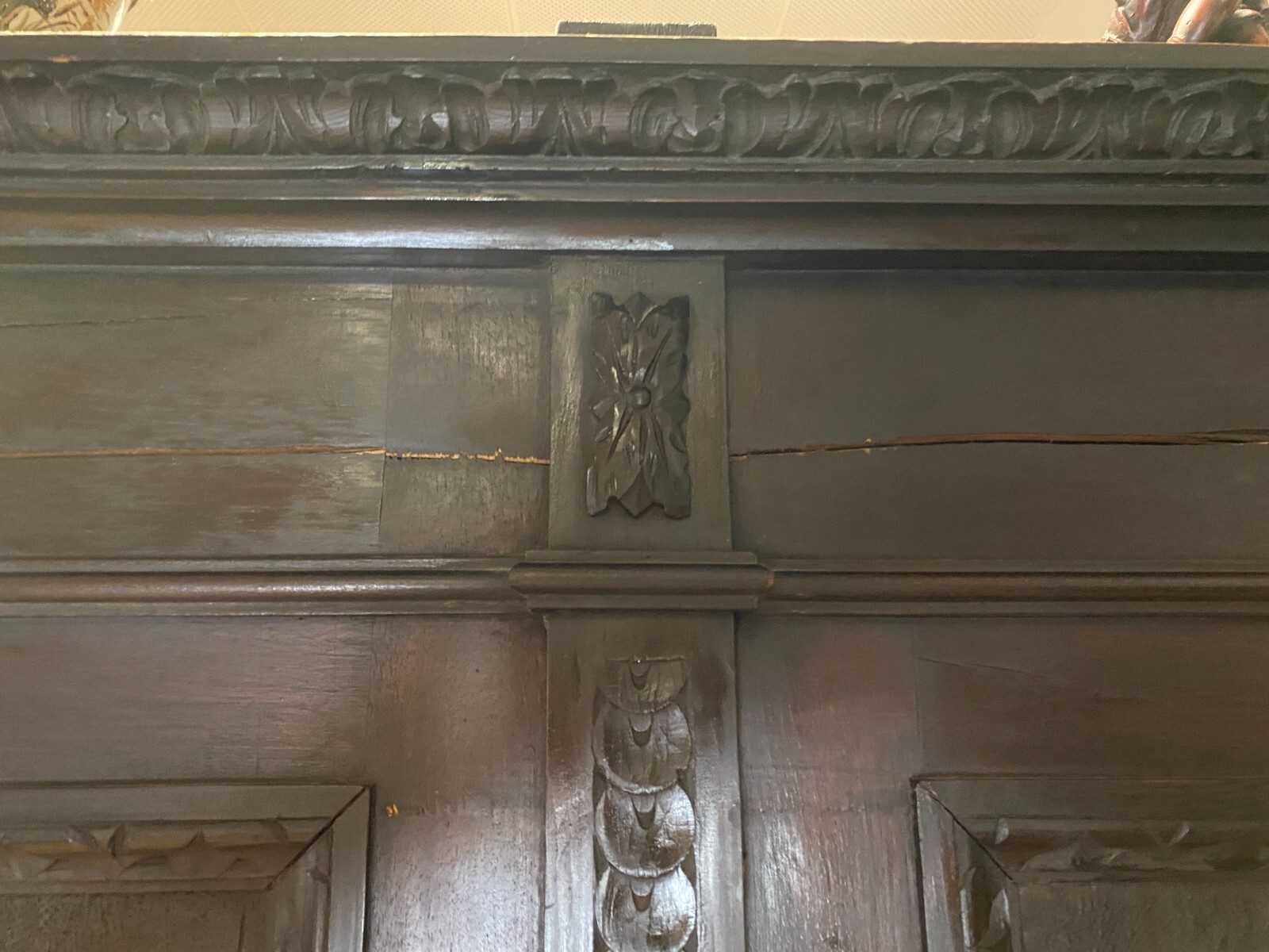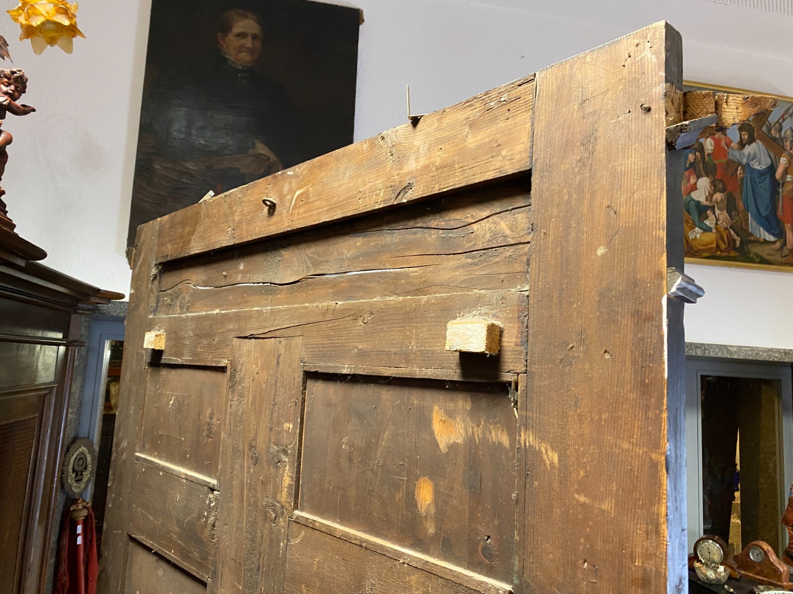 ANTIKE GARDEROBE MIT KÖPFEN UND FRATZEN UM 1890 GRÜNDERZEIT SEHR GROSS 240x120cm
