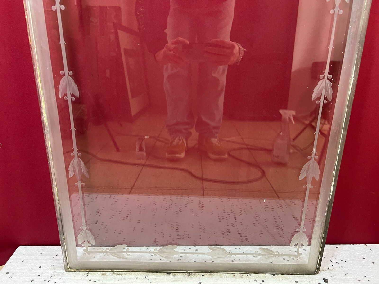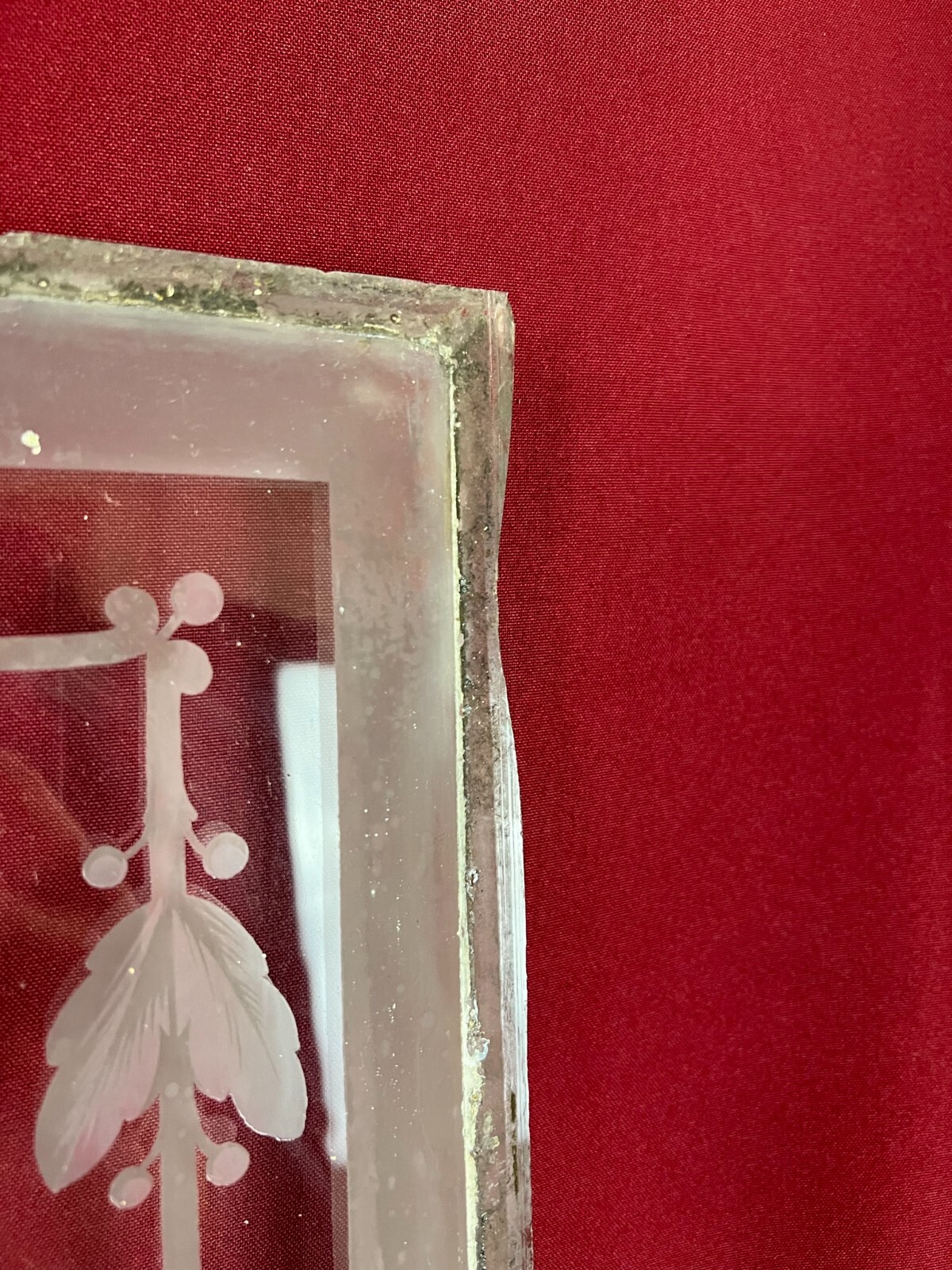 Antike Glasscheibe ohne Holzrahmen. Es handelt sich um eine Scheibe aus einer Tür für den Innenbereich. Im Randbereich Farb- und Verkittungsreste, an der Oberfläche Farbspritzer und Flecken möglich. Die Scheibe ist Original aus der Zeit 1880-1920, wie im Titel angegeben. Gesamtabmessungen ca. 62,1×161,2cm. Stärke ca. 7mm. Beachten Sie bitte die Bilder zum genauen Artikelzustand. Die Bemalung ist zum Teil verblasst, Rand leicht unvollständig.
