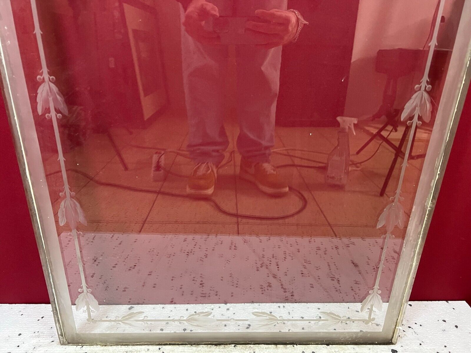 Antike Glasscheibe ohne Holzrahmen. Es handelt sich um eine Scheibe aus einer Tür für den Innenbereich. Im Randbereich Farb- und Verkittungsreste, an der Oberfläche Farbspritzer und Flecken möglich. Die Scheibe ist Original aus der Zeit 1880-1920, wie im Titel angegeben. Gesamtabmessungen ca. 62,4×162,2cm. Stärke ca. 7mm. Beachten Sie bitte die Bilder zum genauen Artikelzustand. Die Bemalung ist zum Teil verblasst, Rand leicht unvollständig.