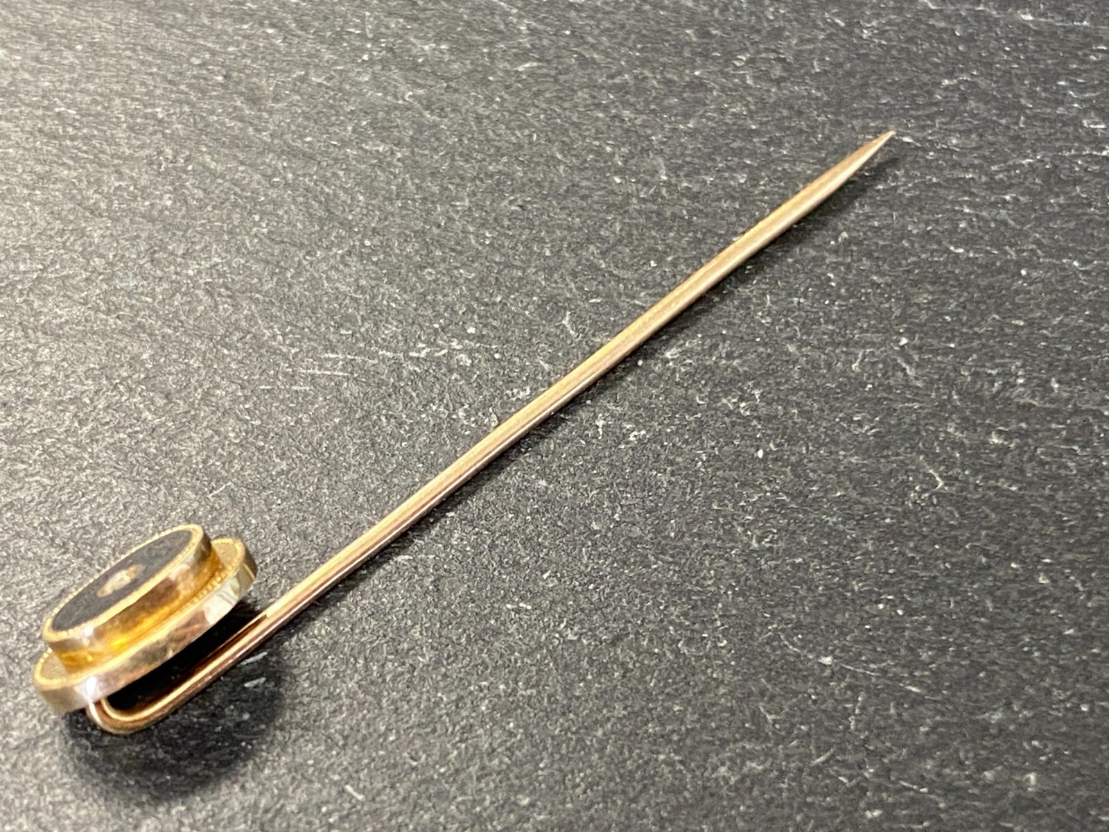 ANTIKE KRAWATTENNADEL GELB GOLD 14K ONYX UND DIAMANT 1,67g