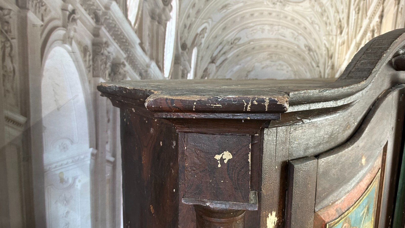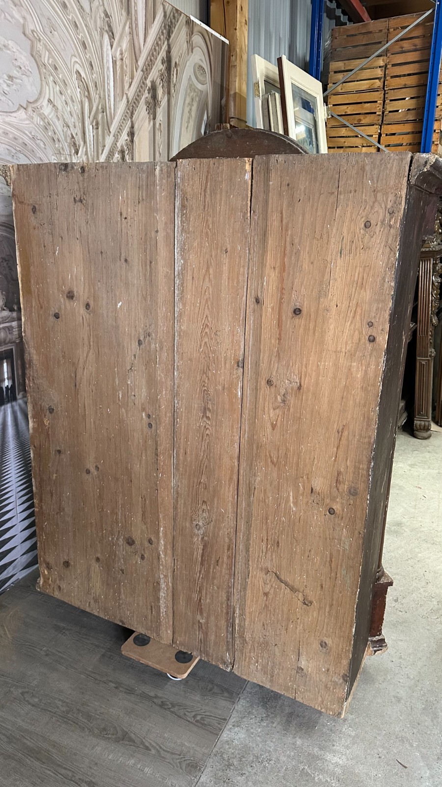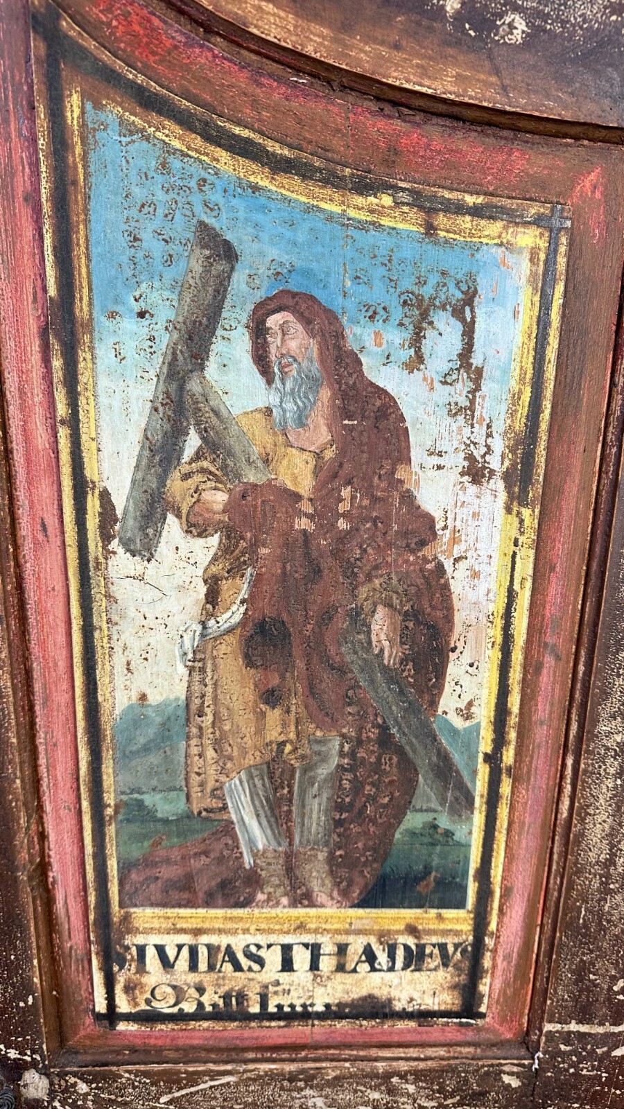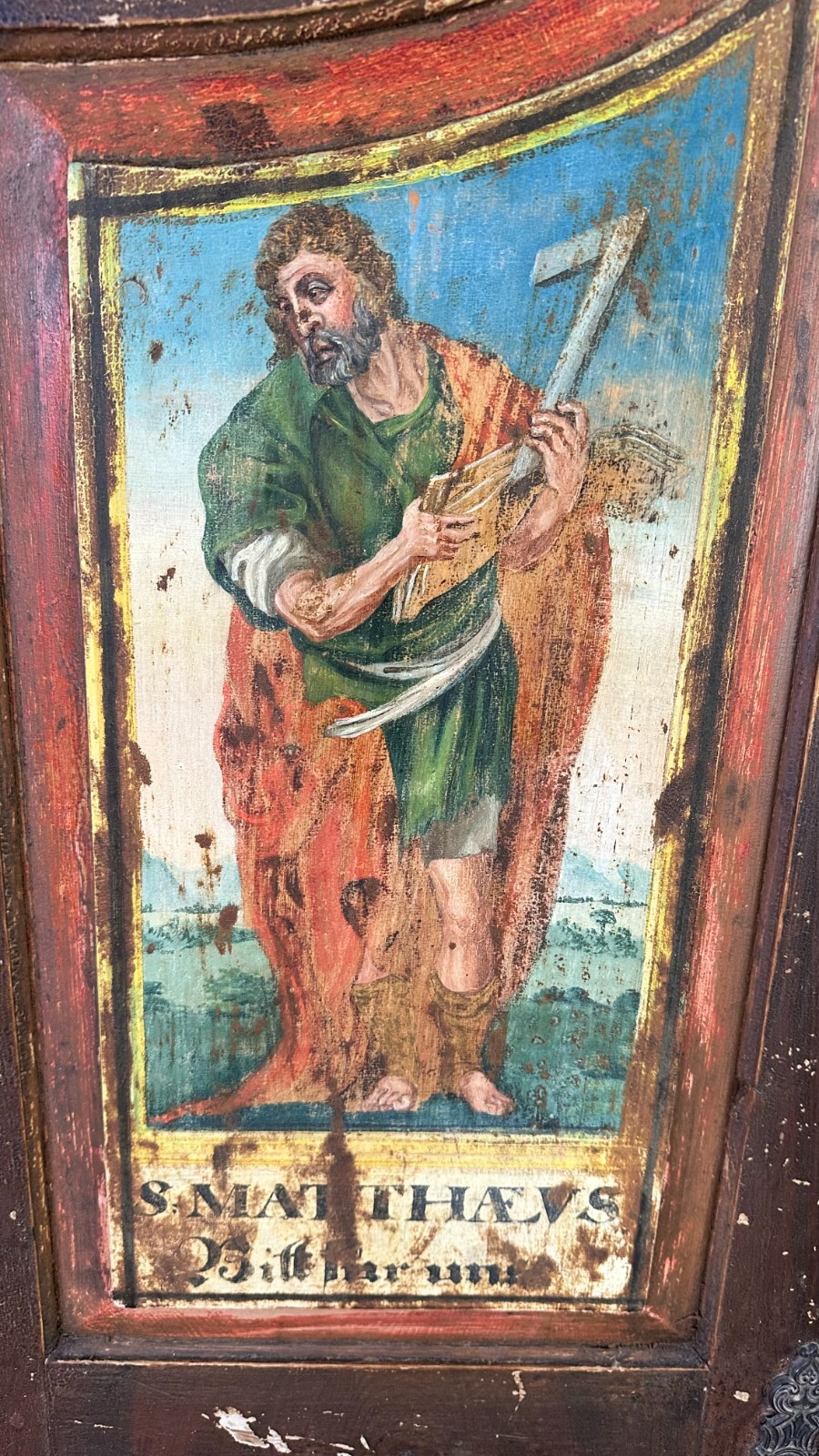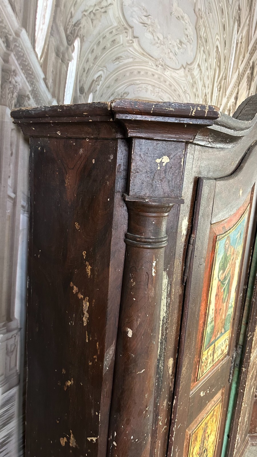 ANTIKER BAROCKSCHRANK BAUERNSCHRANK HOLZ MASSIV HEILIGENBILDER HANDBEMALT 18 TES
