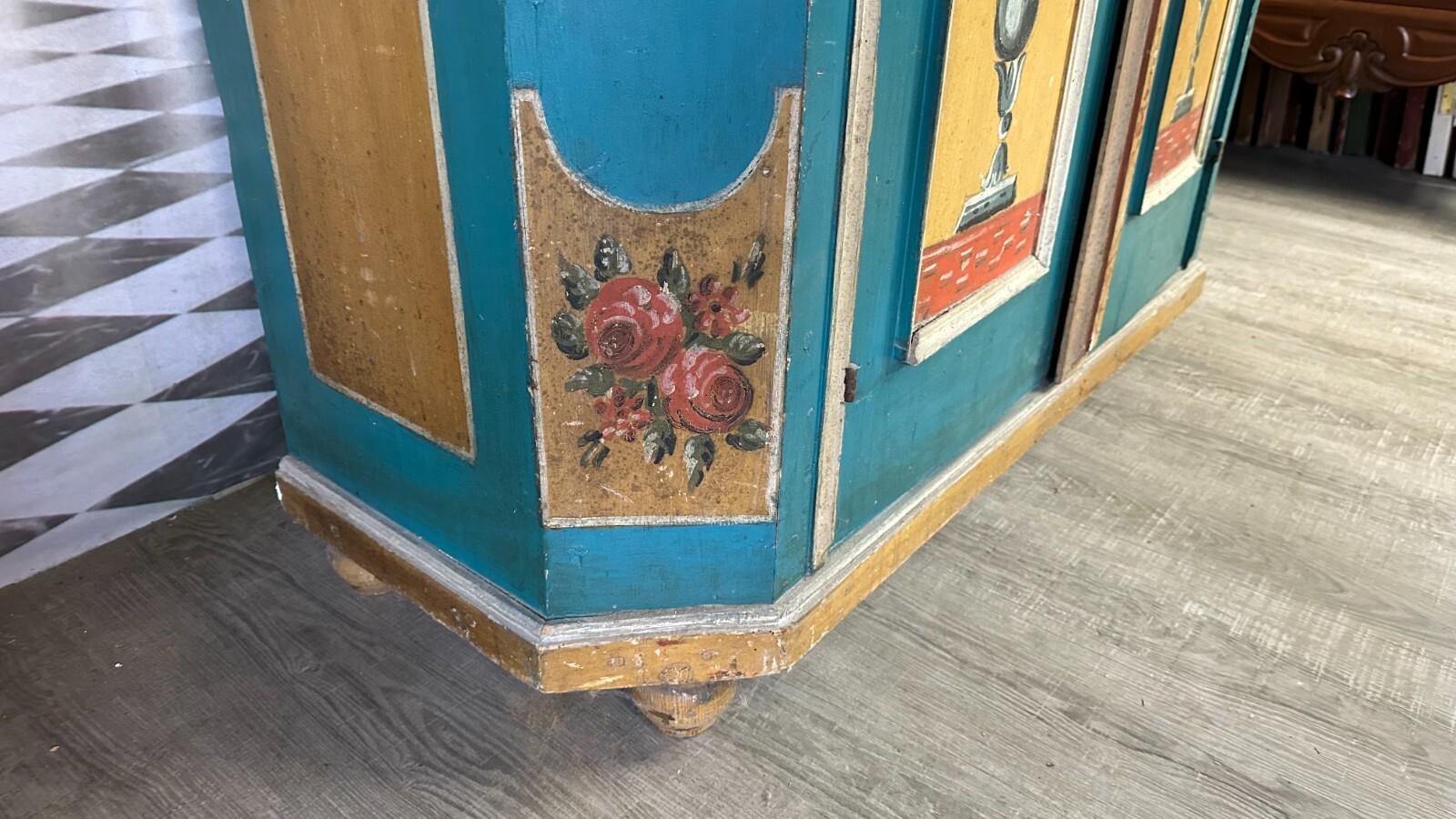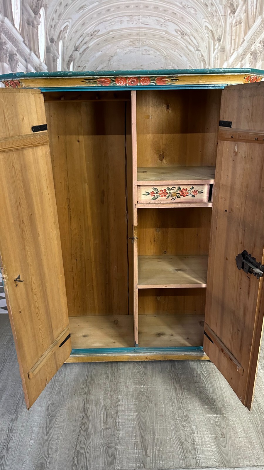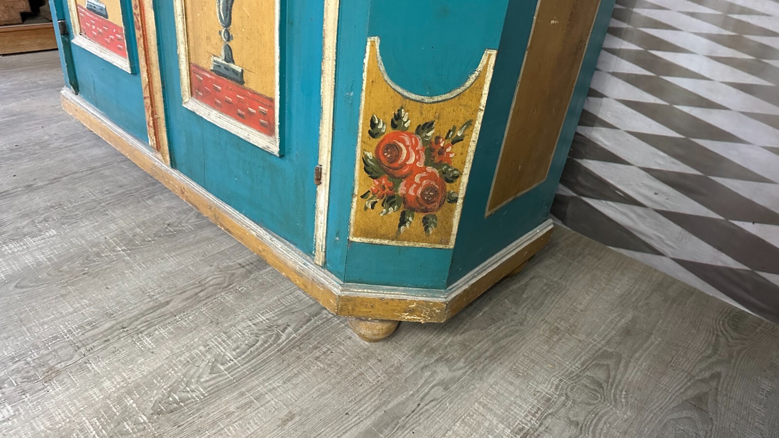 ANTIKER BAUERNSCHRANK HOLZ MASSIV HANDBEMALT RESTAURIERT 19 TES JHDT