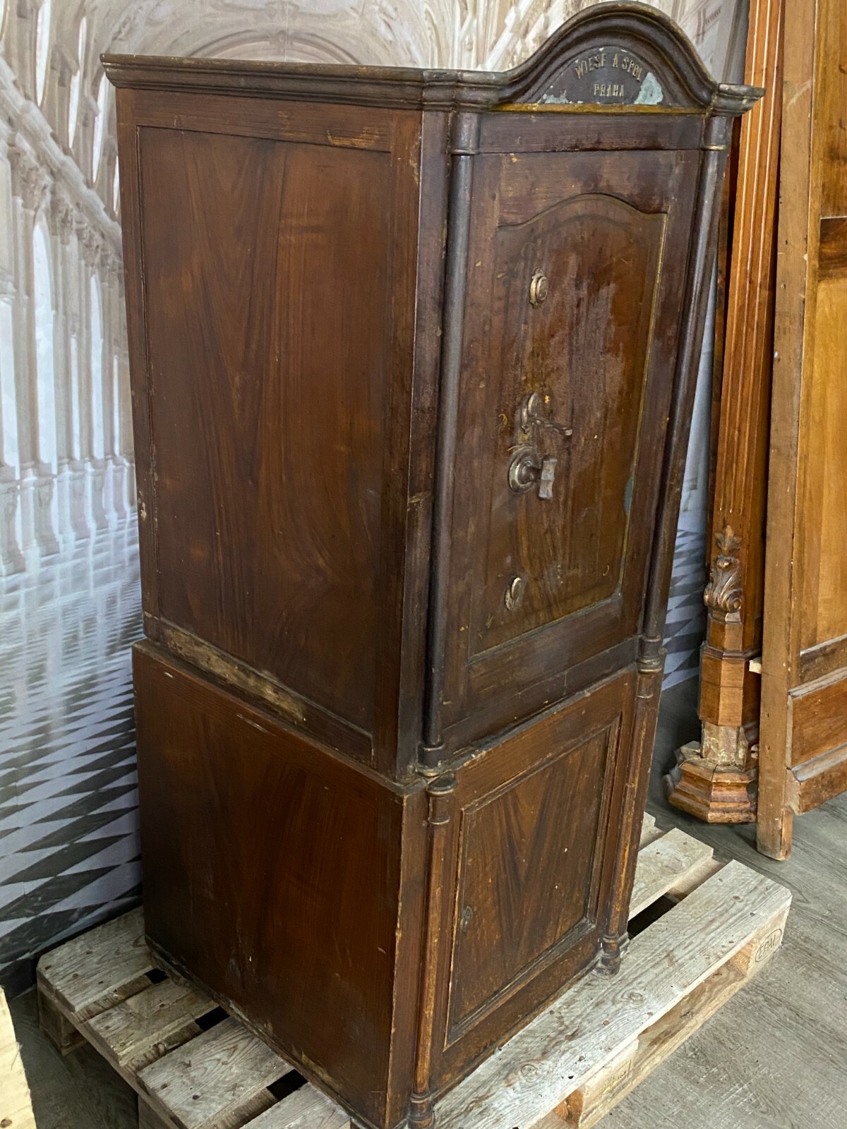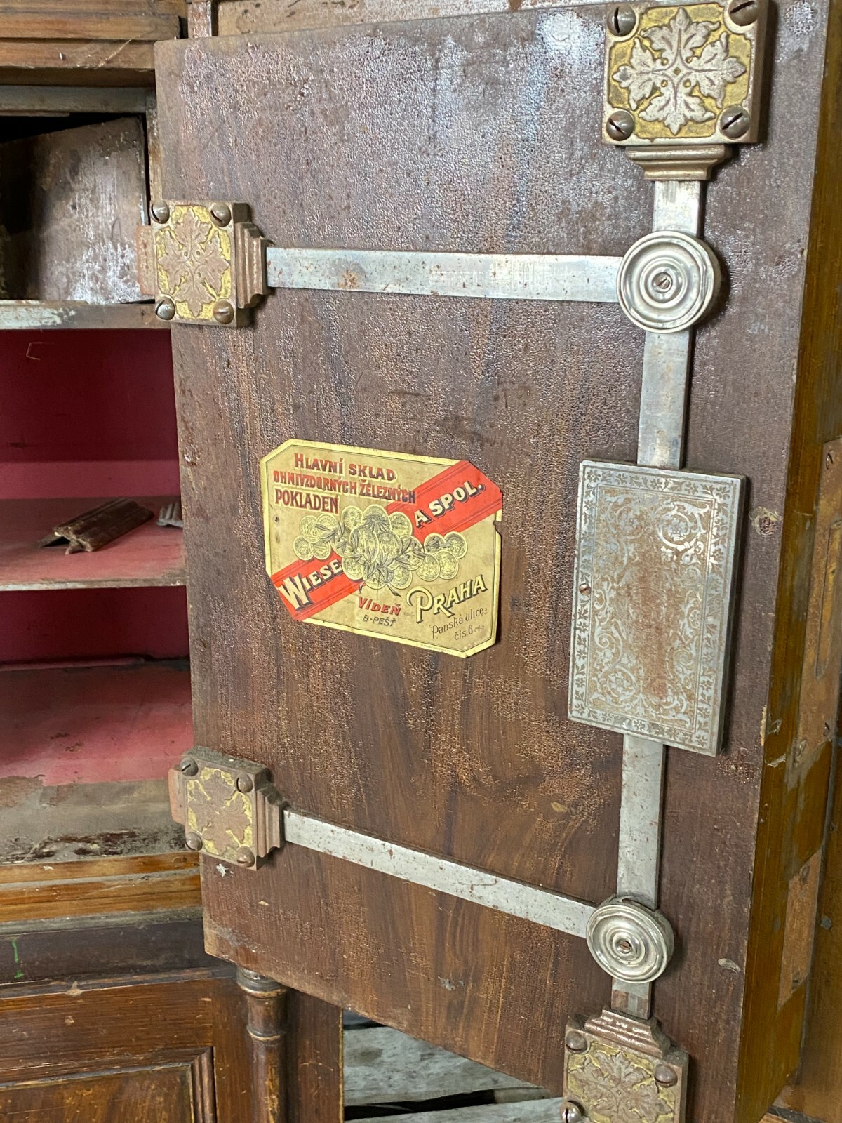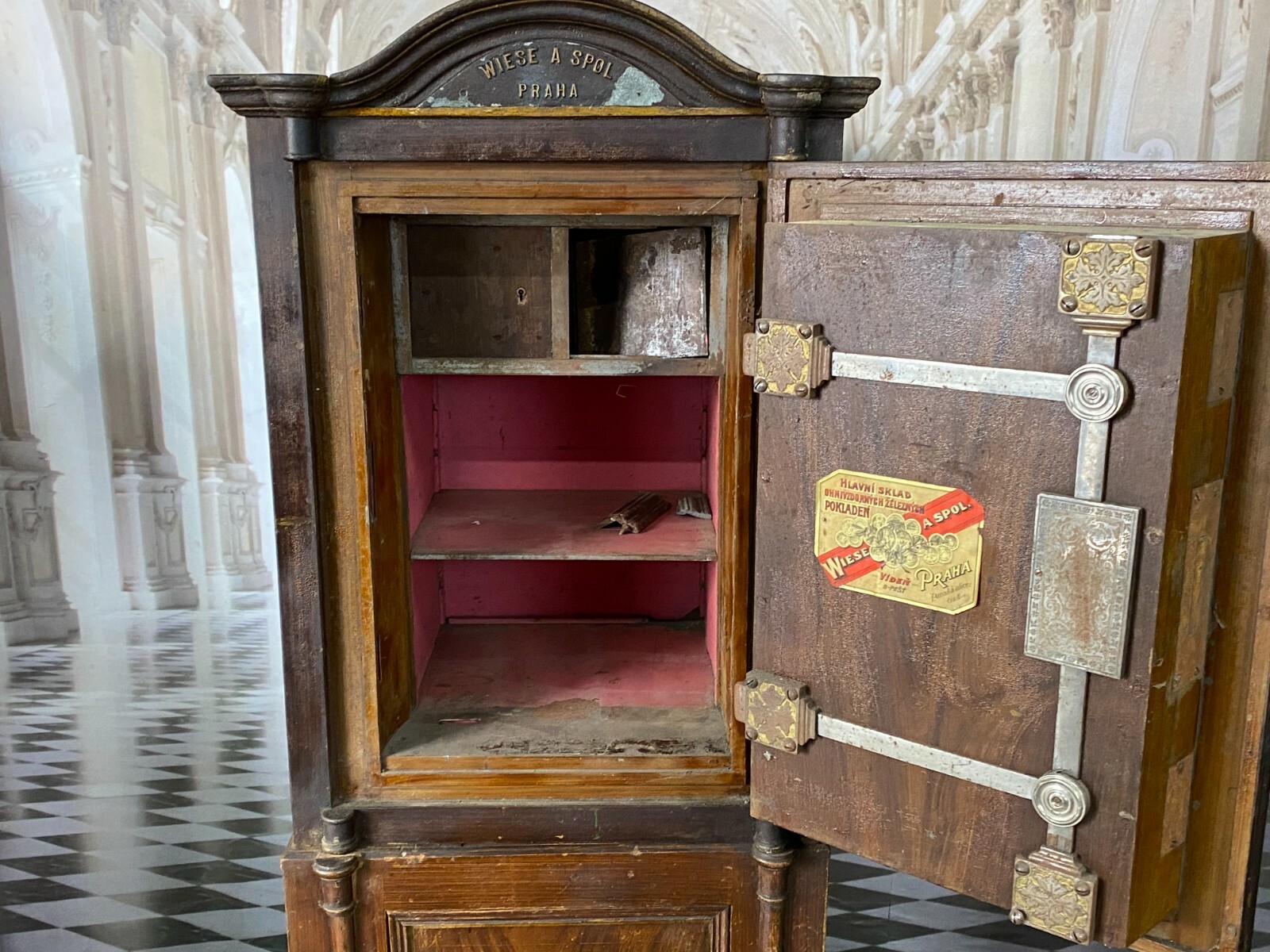 ANTIKER JUGENDSTIL TRESOR WIESE SPOL PRAG METALLGUSS MIT UNTERSCHRANK