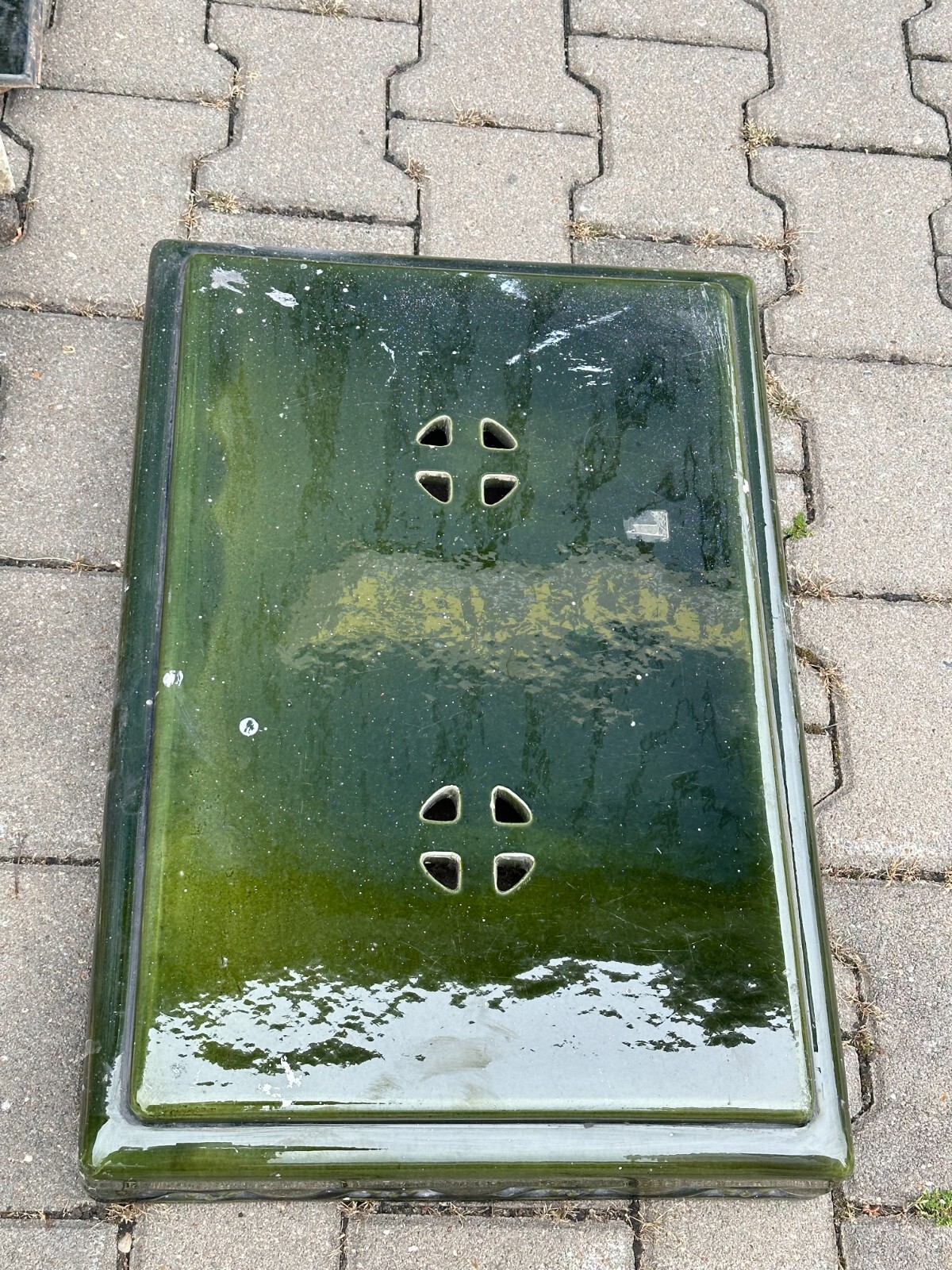 ANTIKER KACHELOFEN JUGENDSTIL OFEN UM 1920 KERAMIK GRÜN GLASIERT