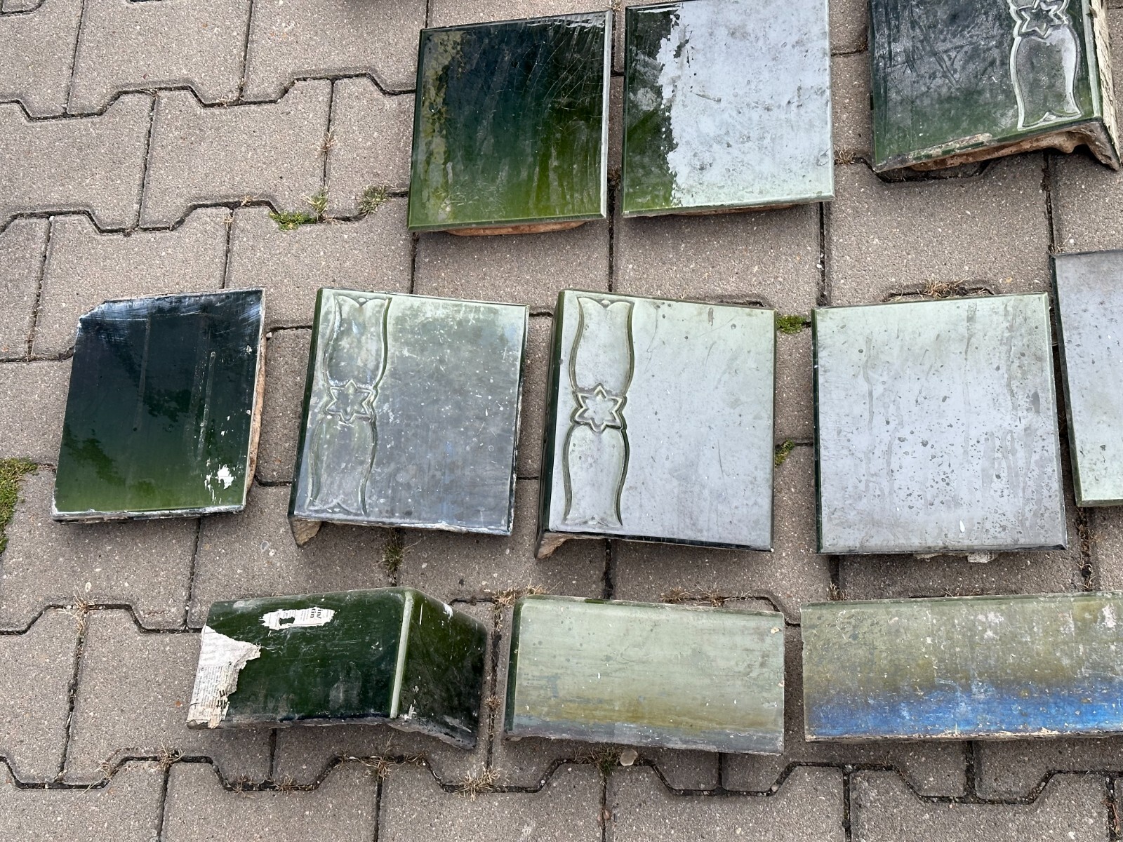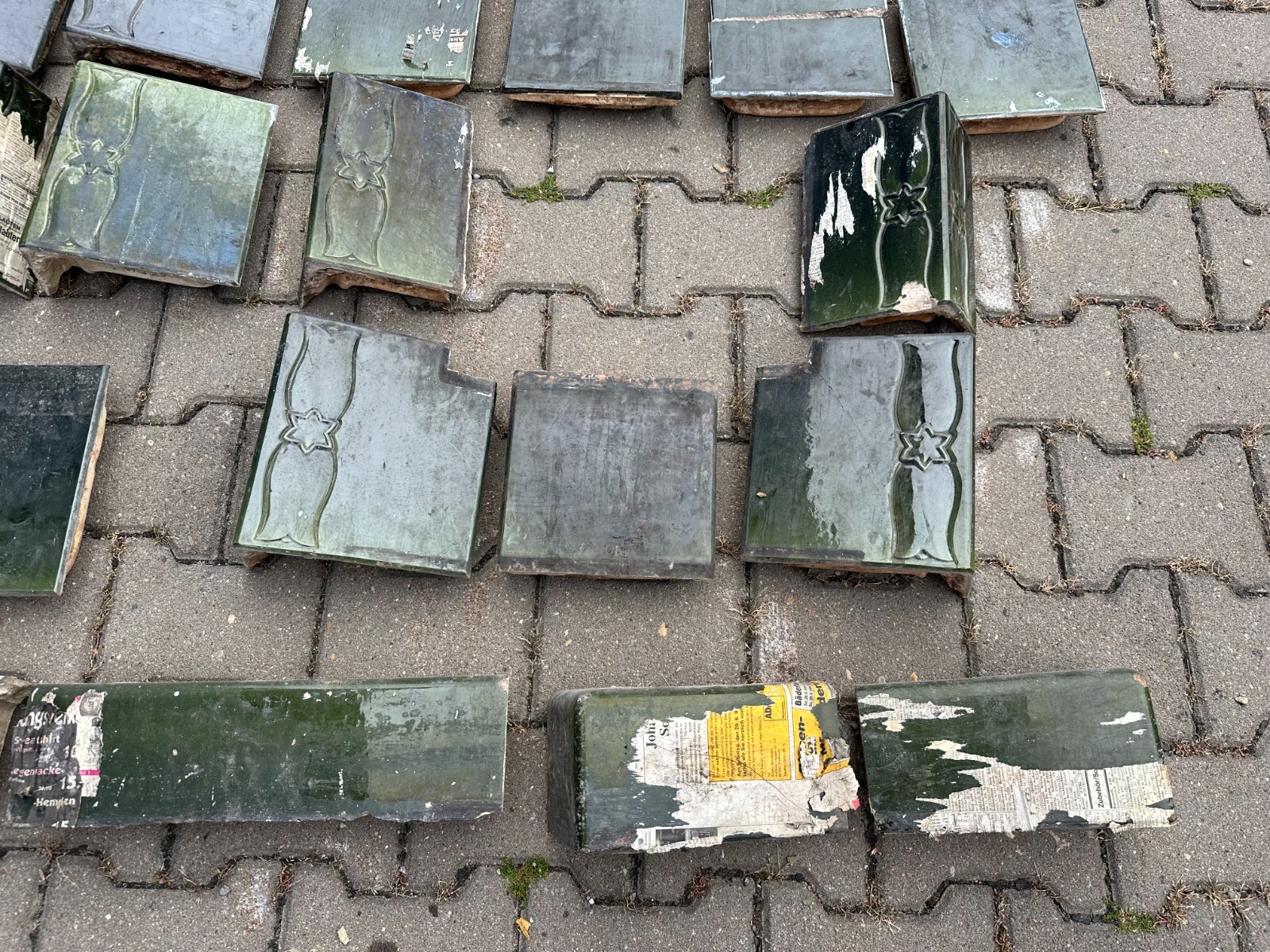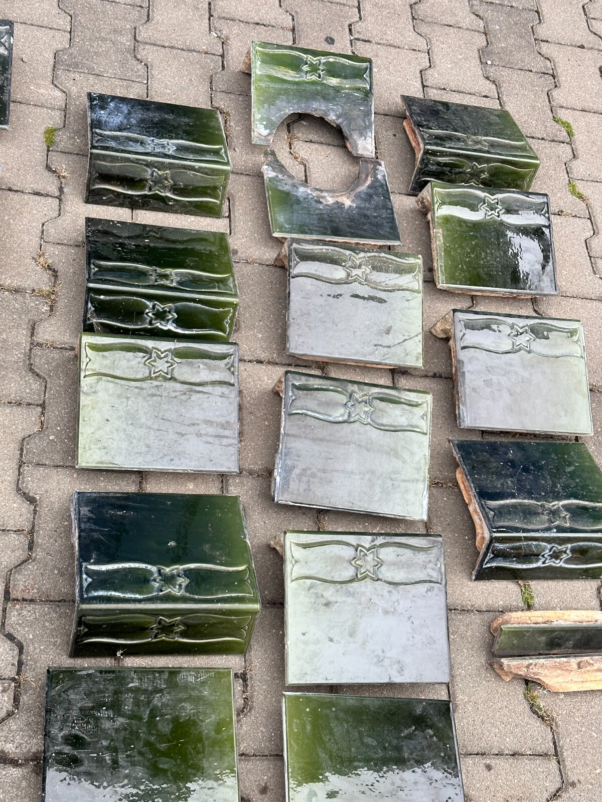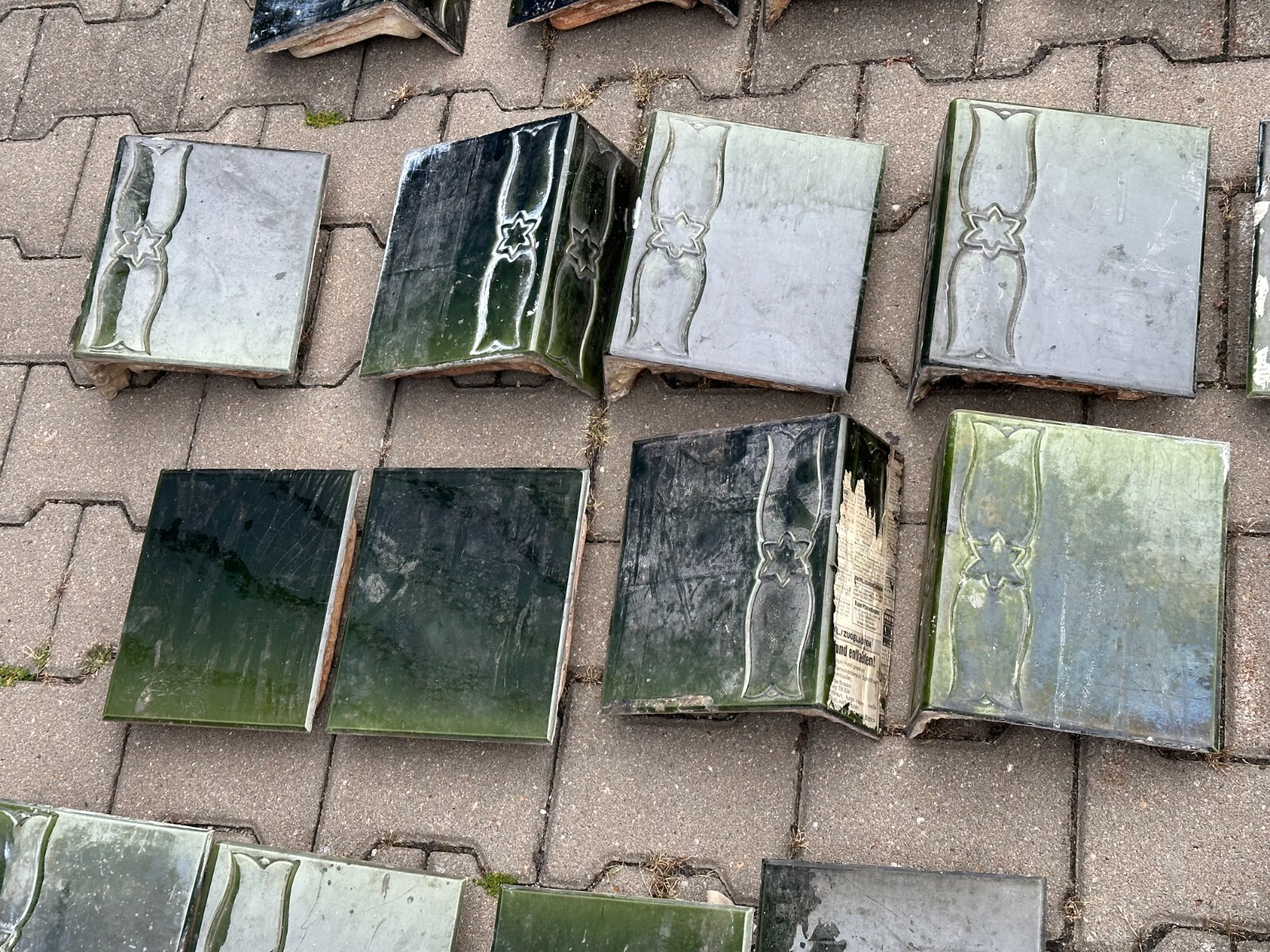 Das Angebot beinhaltet nur die Keramikfassade ohne Innentechnik, einzeln verpackt in Holztransportkisten. Sehr schöner Jugendstilkachelofen um 1920. Einige Kacheln sind gebrochen und nicht geklebt, diverse Sprünge und Fassungsabplatzer. Der Kachelofen ist vollständig, in einem der oberen Fächer befand sich wohl ein Warmhaltefach (zwei Kacheln breit und durchgängig nach hinten). Dieser ist nicht vorhanden. Ebenfalls ist die Tür zum Brennraum nicht vorhanden. Abmessungen BTH 63/44/165cm. Wir weisen drauf hin, dass Keramikfassade von uns nur als Dekoration angeboten wird, für einen erneuten Aufbau werden Kaminsetzer, Ofenbauer, Schornsteinfeger und etwaige Genehmigungen benötigt.