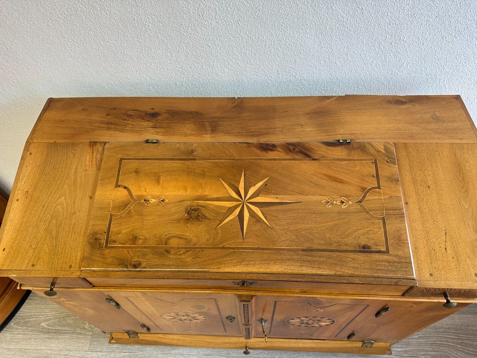 ANTIKER LOUIS SEIZE SEKRETÄR UM 1780 / 1800 NUSSBAUM FURNIERT MIT INTARSIEN