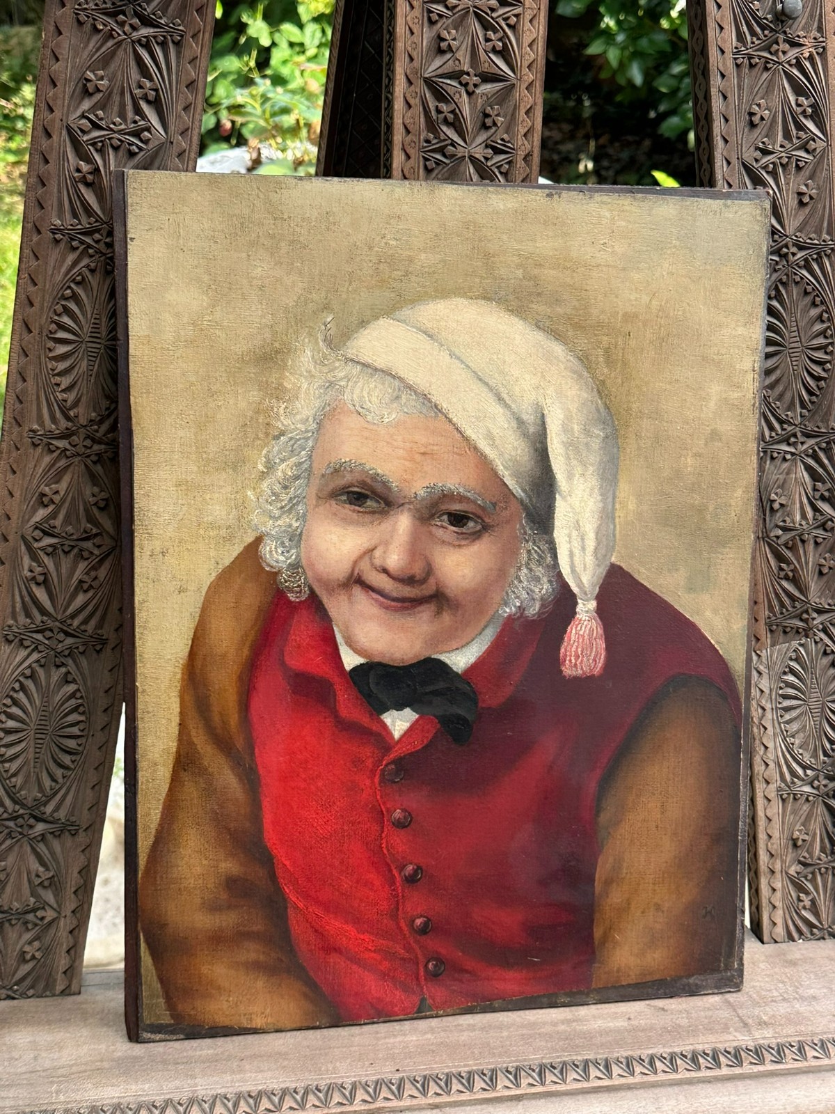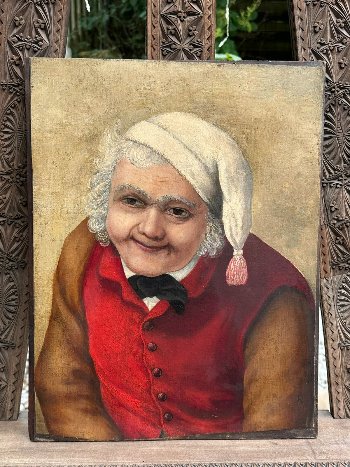 ANTIKES BIEDERMEIER ÖLGEMÄLDE PORTRAIT MANN MIT SCHLAFMÜTZE MONOGRAMMIST