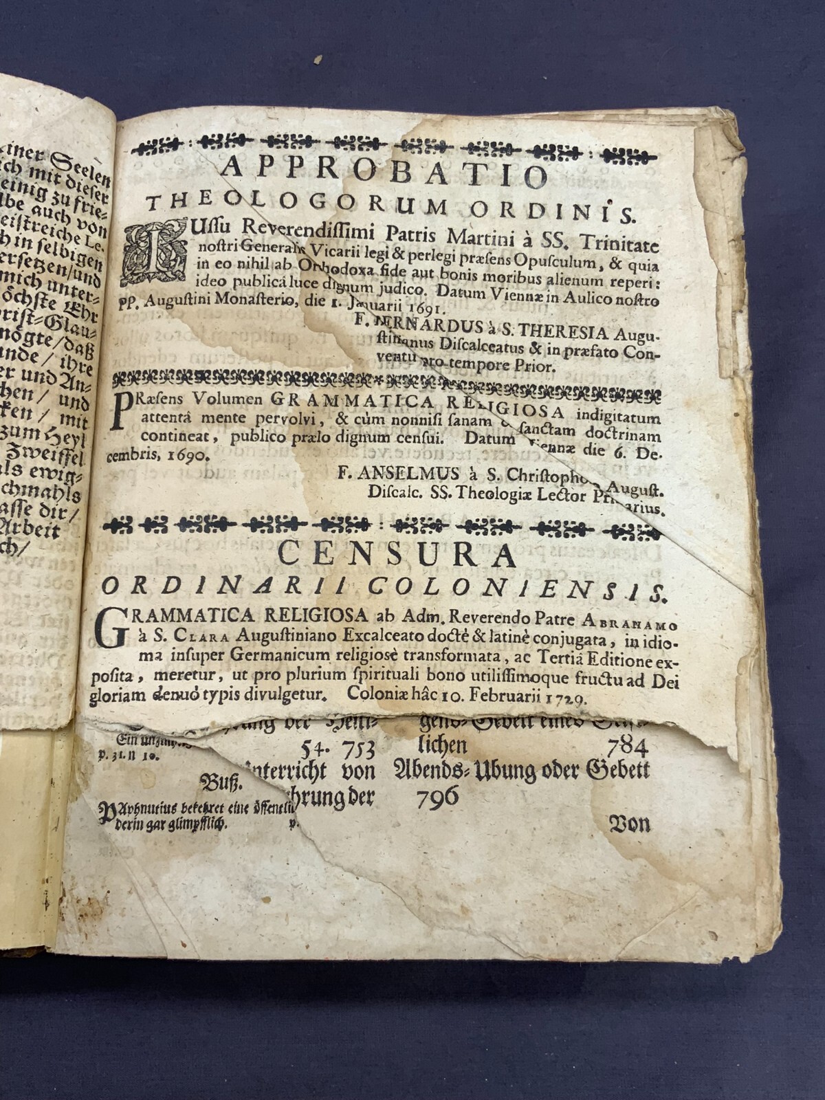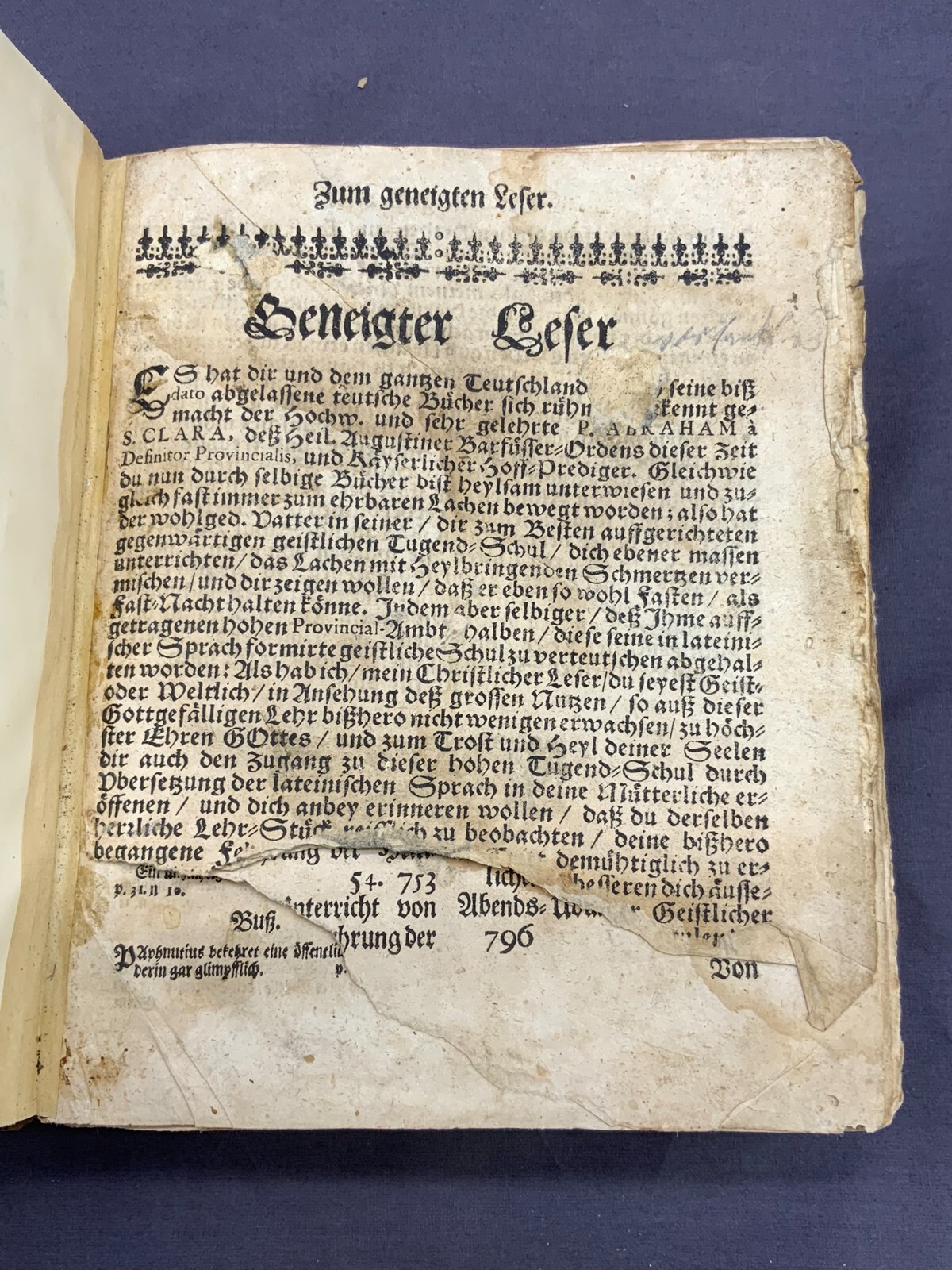 ANTIKES BUCH VON 1729 ABRAHAM A SANCTA CLARA