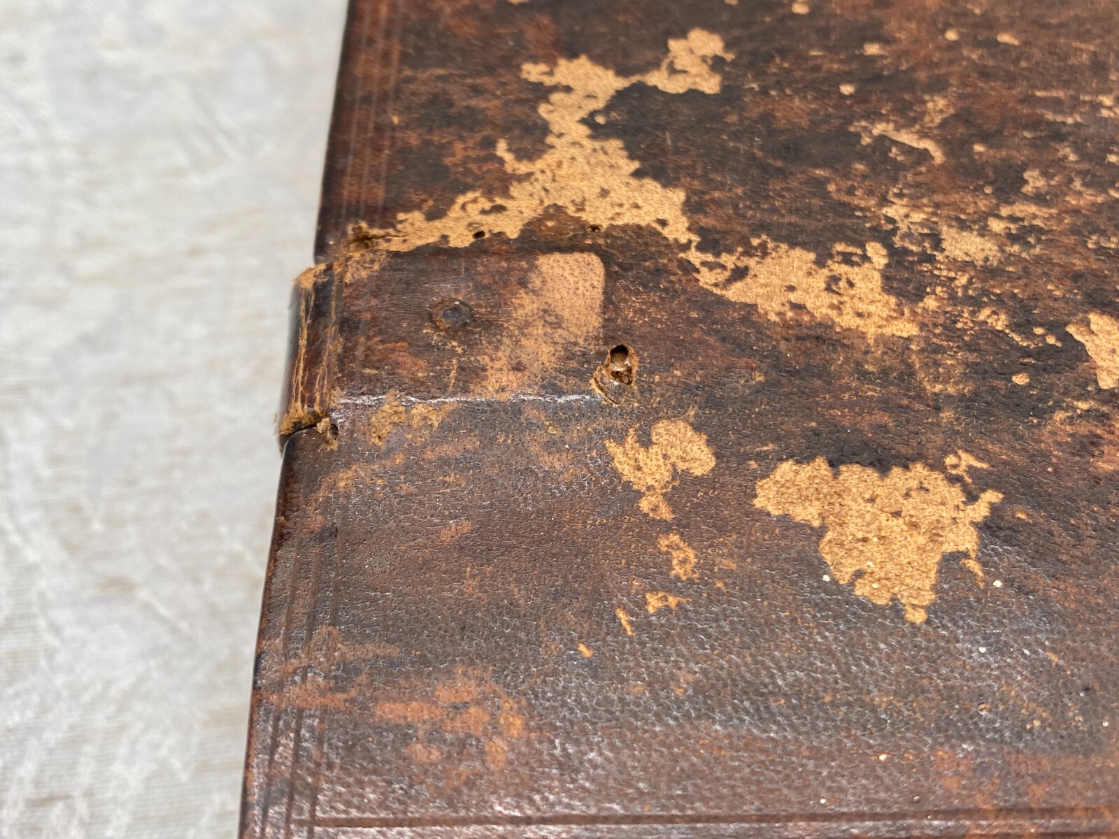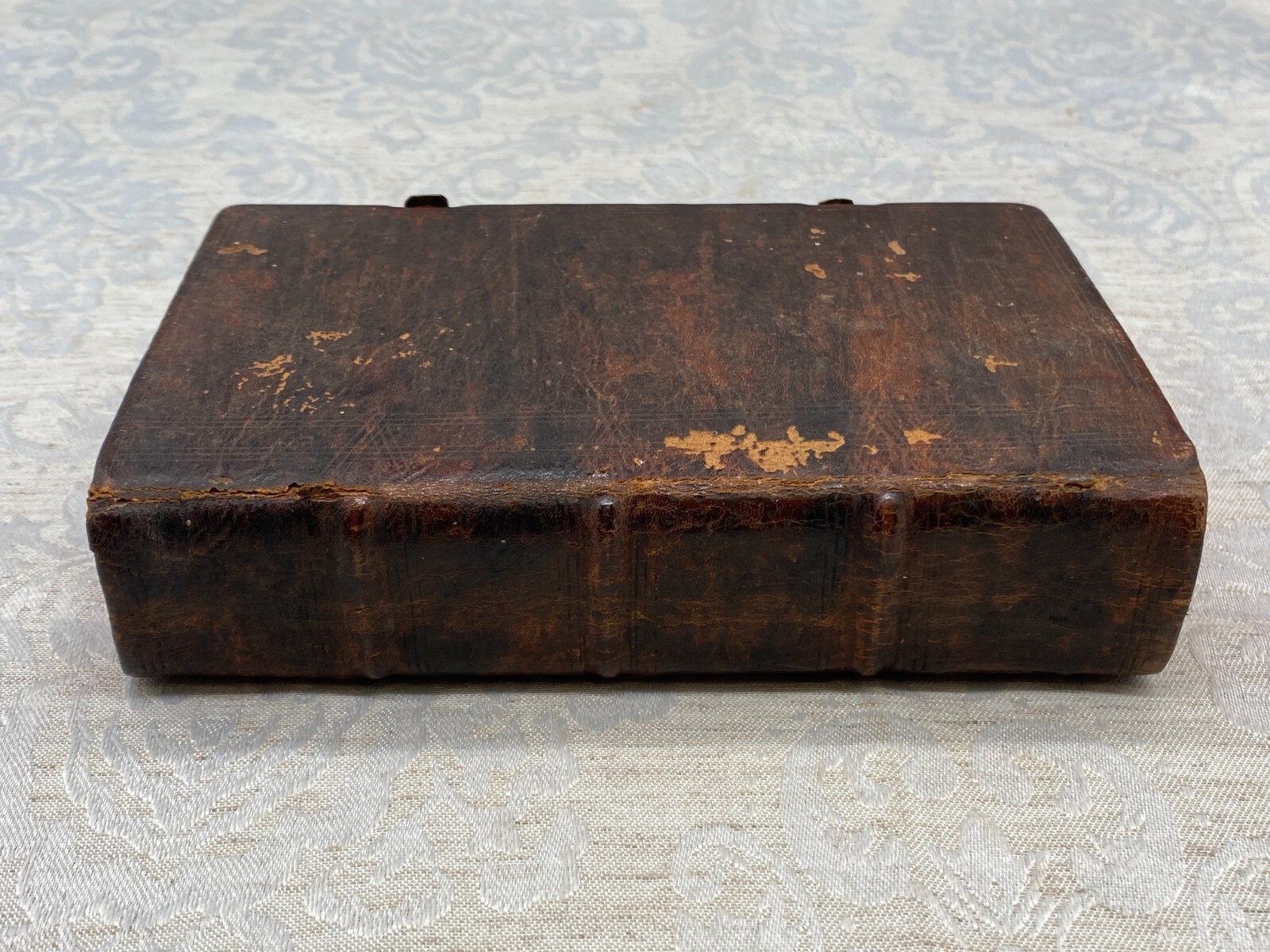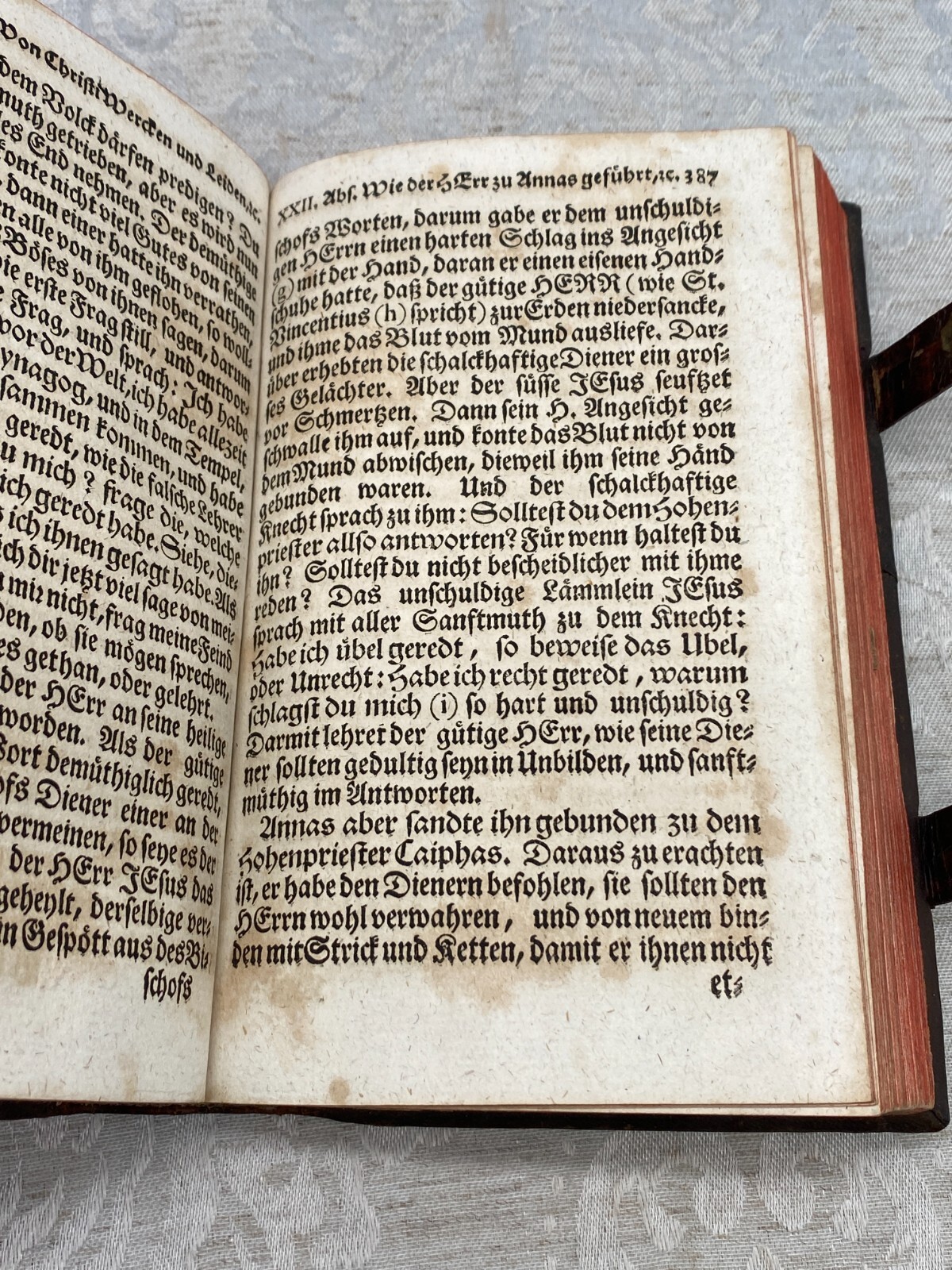 Antikes Buch von 1768, Caspari Erhards Geistlicher Haus Schatz, auf Deutsch. Die Seiten sind vergilbt und fleckig, aber nicht gerissen. Einband berieben. Abmessungen B/H 11/18 cm.