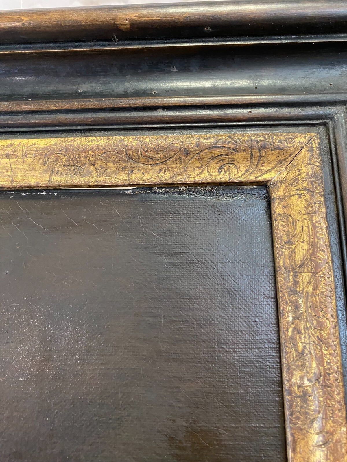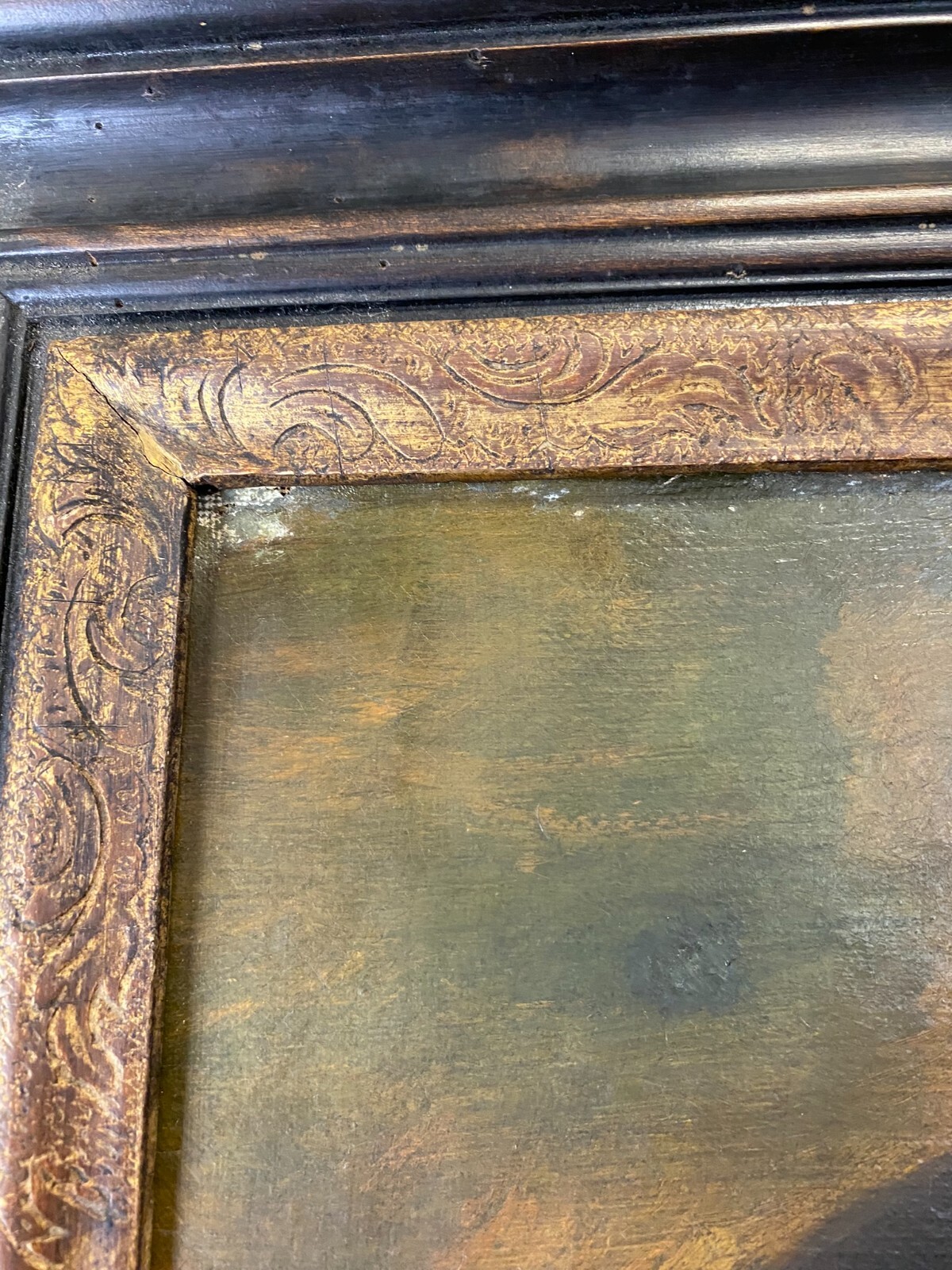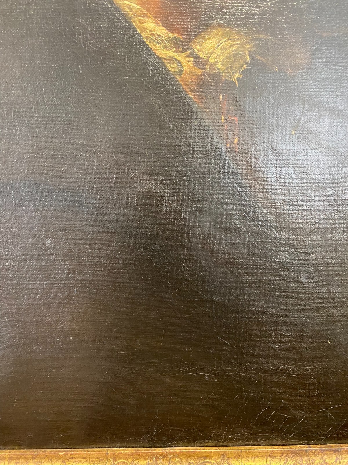 Artikelstandort: 83727 Schliersee – Nach Peter Paul Rubens, Selbstportrait Rubens, der berühmteste flämische Maler des 17. Jahrhunderts, wird hier mit einem großen Hut gezeigt. Ein Umhang verbirgt seine Kleidung, von der nur die Spitze des weißen Kragens sowie ein Teil einer Kette zu sehen ist. Attribute, die auf seinen Beruf hindeuten sind nicht erkennbar. Er blickt würdevoll und selbstsicher den Betrachter an. In der Manier von Hermann Kaulbach. Öl auf Leinwand, unsigniert, um 1900 angefertigt. An der gesamten Oberfläche leichtes Craquelee, wenige minimale Farbabplatzer. Im oberen Bereich diverse Leinwandschäden, diese wurden gekittet und übermalt. Die Leinwand wurde mal auf einen anderen Keilrahmen überspannt. Die Leinwand ist minimal dellig, der Rahmen leicht berieben und mit altem inaktiven Wurmfraß. Die blattgoldüberzogene Innenleiste hat Risse und wenige kleine Abplatzer. Abmessungen 58,5×73,5cm, mit Rahmen 74x91cm.