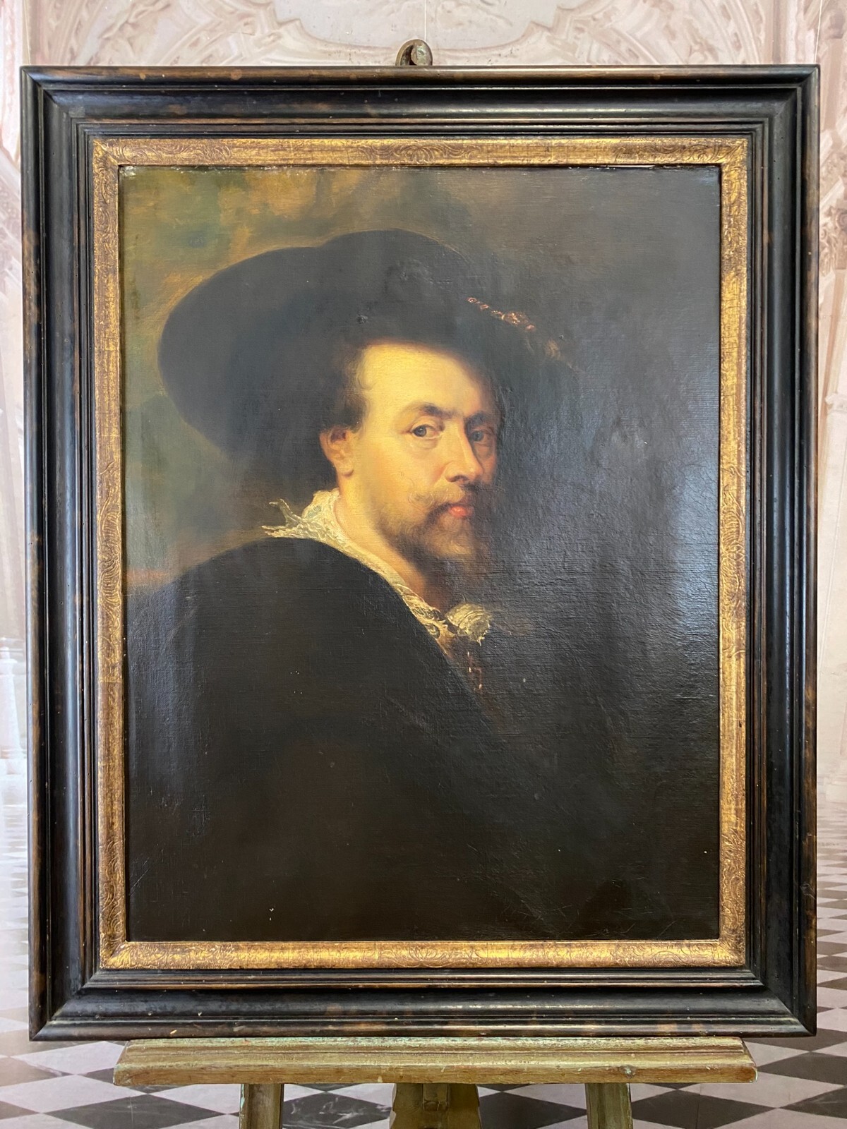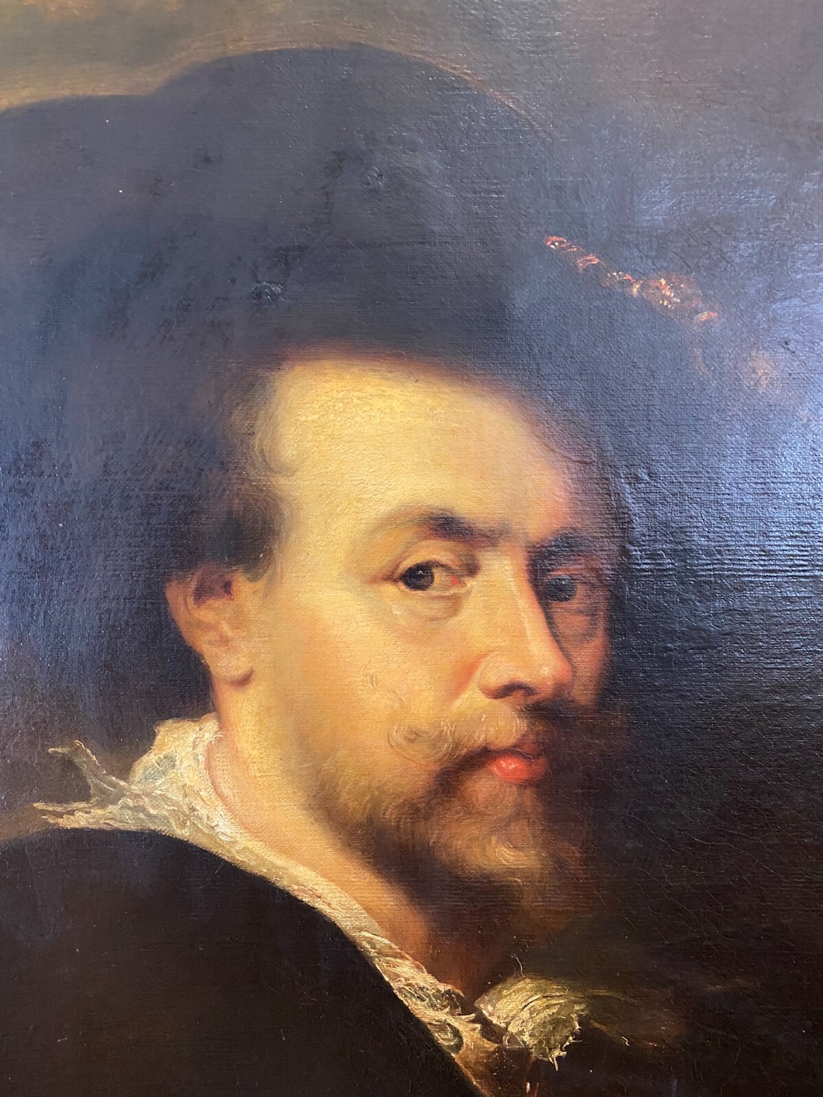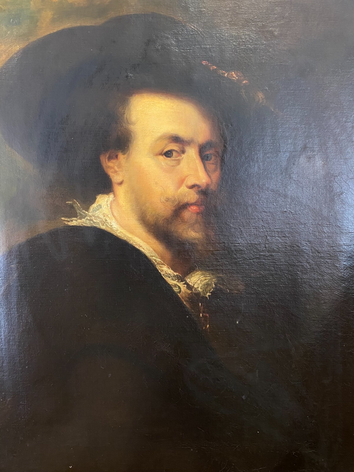 ANTIKES ÖLGEMÄLDE UM 1900 SELBSTPORTRAIT NACH PETER PAUL RUBENS MANN MIT HUT