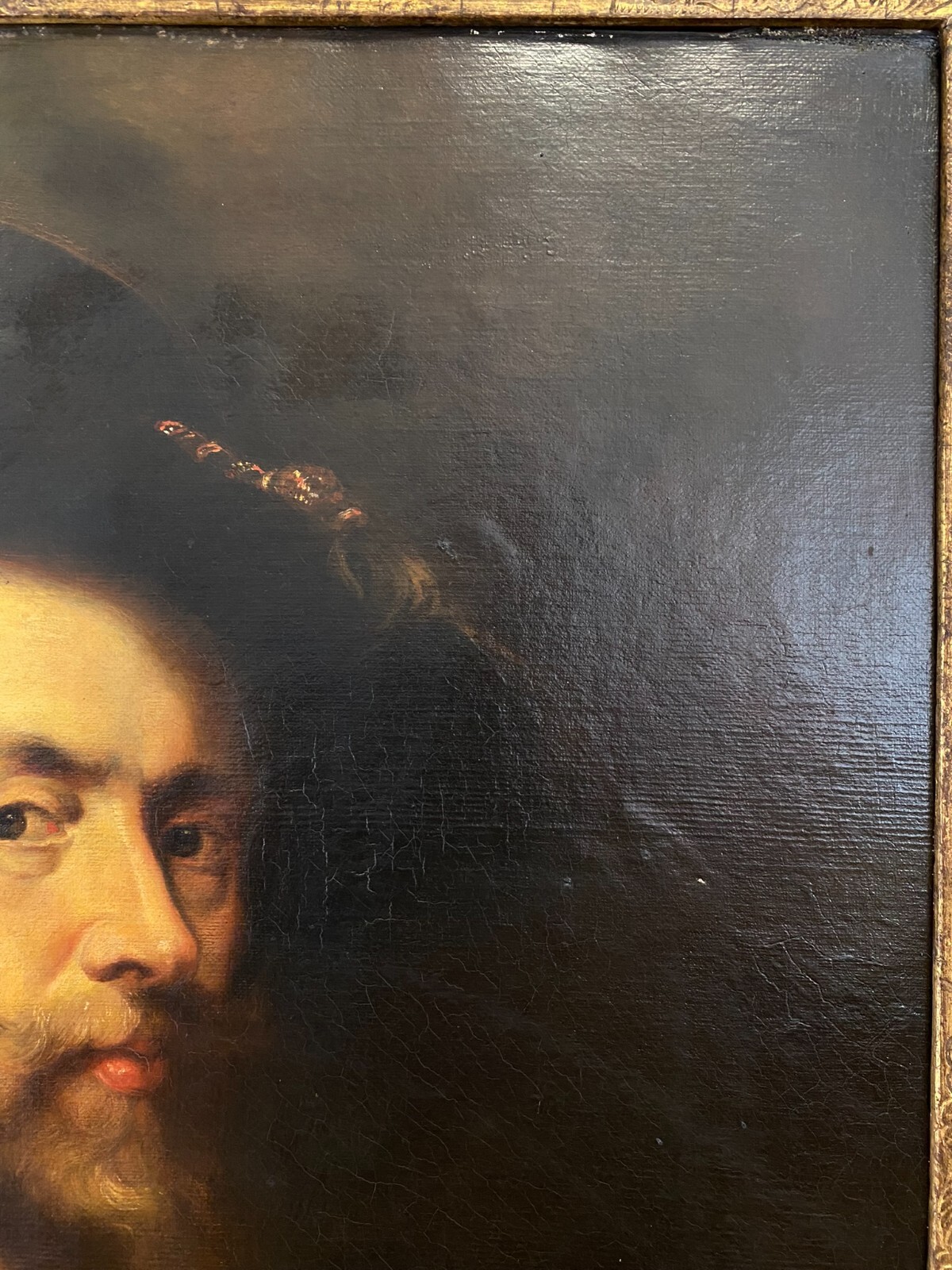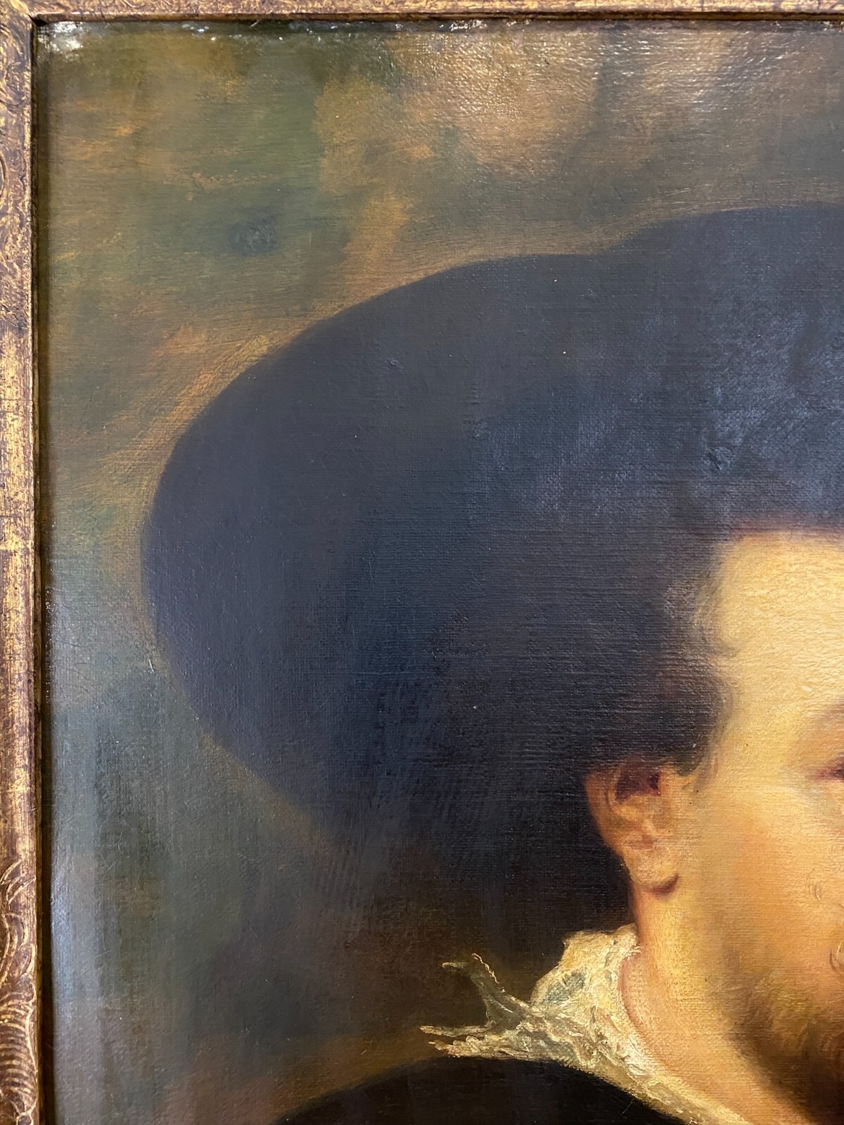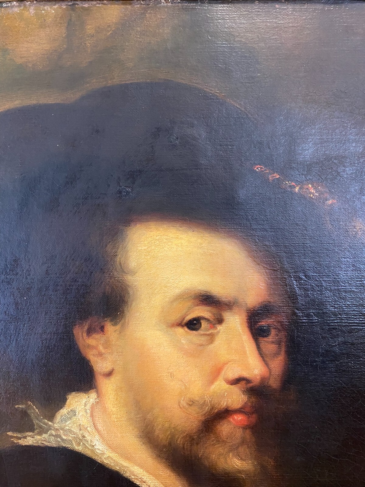 ANTIKES ÖLGEMÄLDE UM 1900 SELBSTPORTRAIT NACH PETER PAUL RUBENS MANN MIT HUT