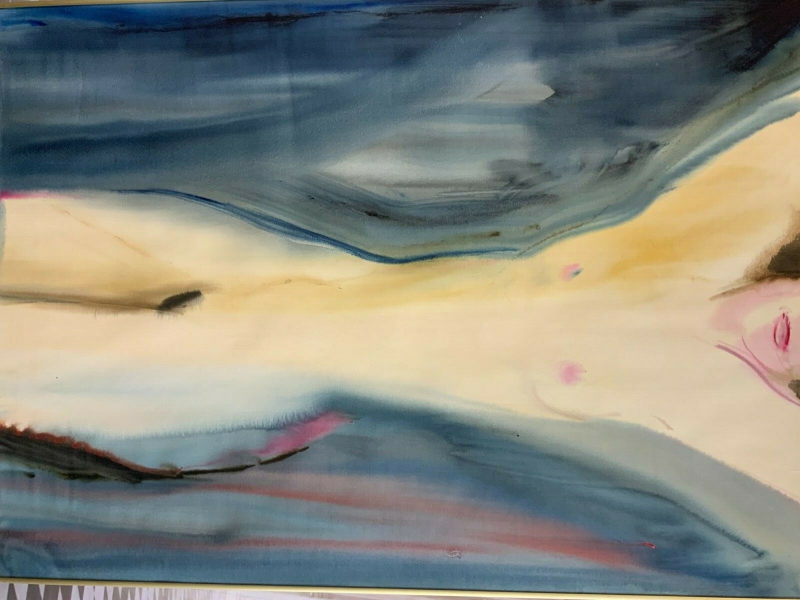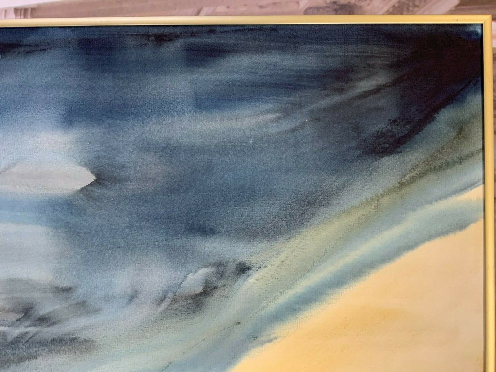 Sehr schönes Aquarell auf Papier, im Metallrahmen gerahmt, am rechten Rand signiert und datiert, ohne Glas. Abmessungen gesamt: 73x101cm. Sehr schöner Gesamtzustand. Der Rahmen wurde nur als Schutz belassen, dieser ist zum Teil berieben oder geht an den Ecken auseinander. Das Blatt ist möglicherweise im Randbereich unter dem Rahmen leicht berieben oder beschädigt.