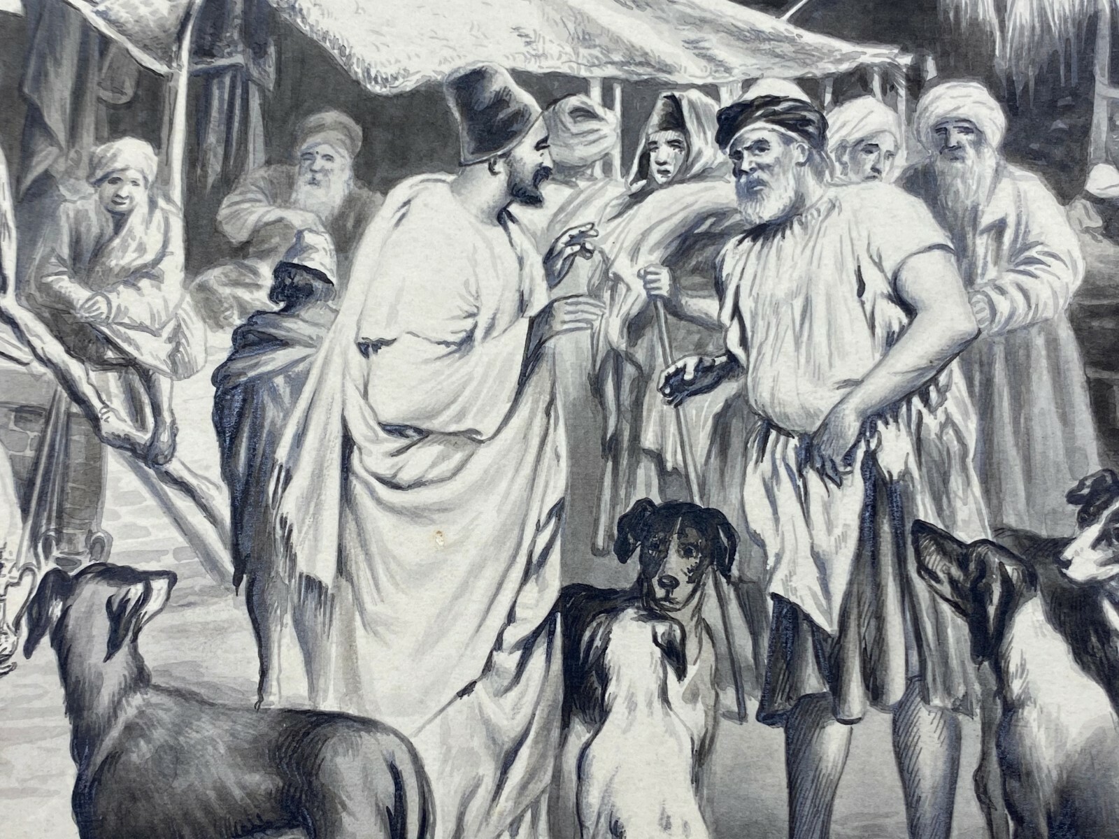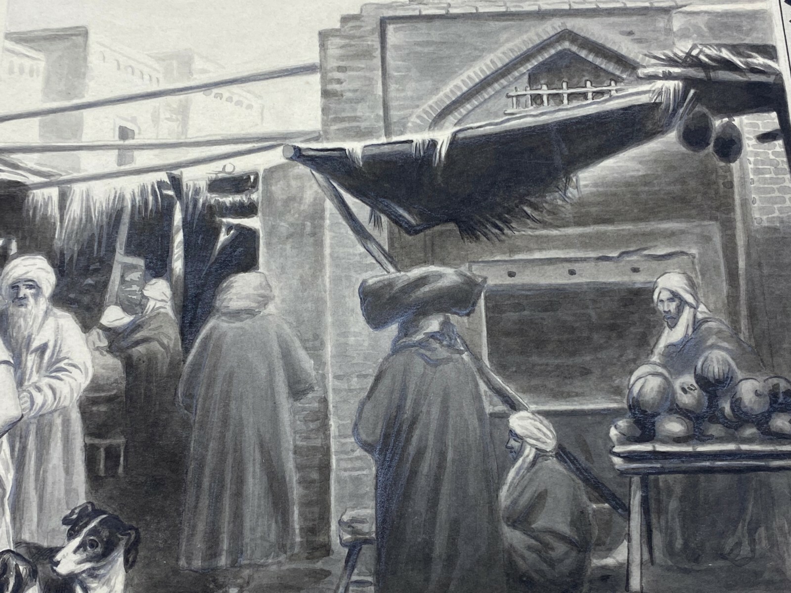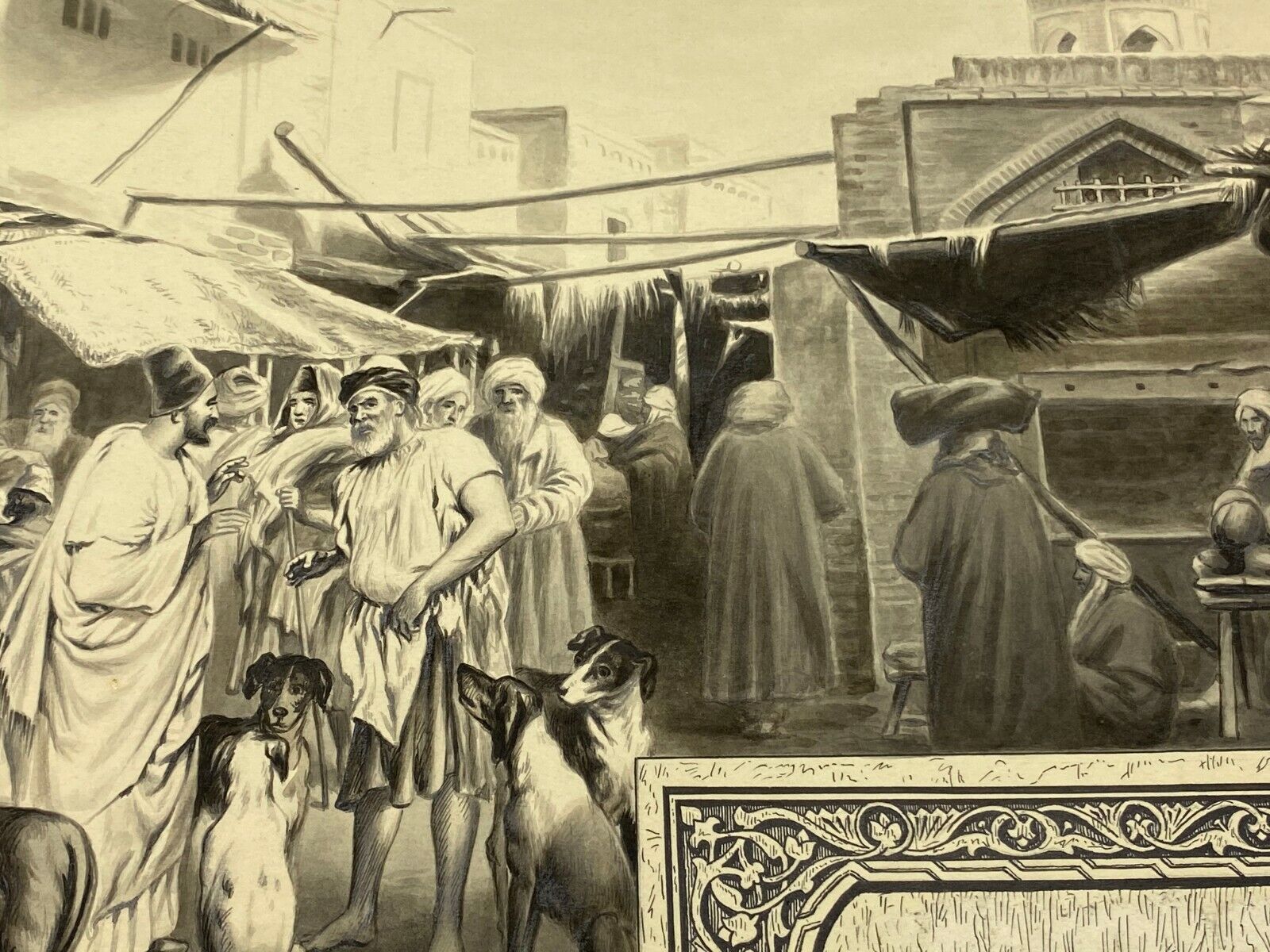 AQUARELL PERSONEN AM MARKT IM ORIENT Anton Carl BAWOROWSKI (1853-1927)