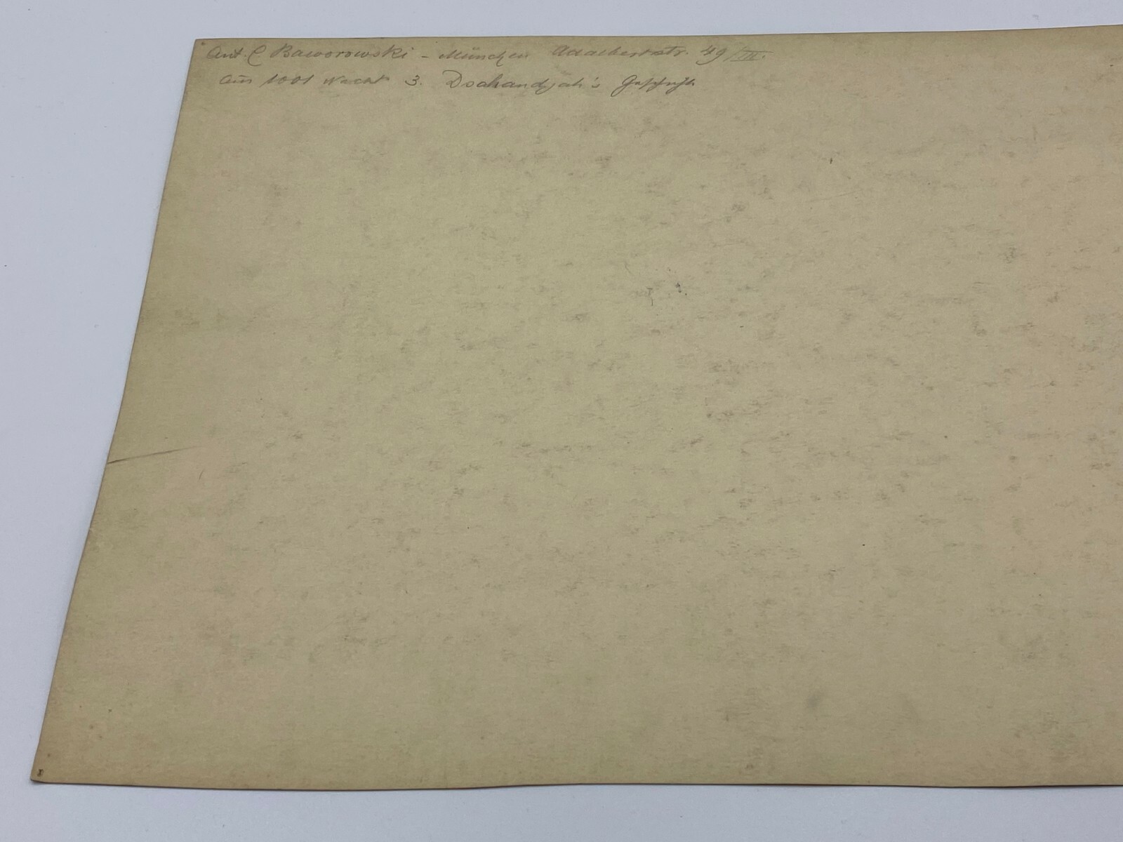 Aquarell und Bleistift auf Papier, signiert. rückseitig bezeichnet. Bei dem Blatt handelt es sich definitiv nicht um eine übermalte Litho, es ist ganz fein bemalt. Abmessungen 44×34,5cm. An den Ecken Löcher von Reissnägeln, am Rand minimale Abreibungen und Knicke, ganz leichte Stockflecken.