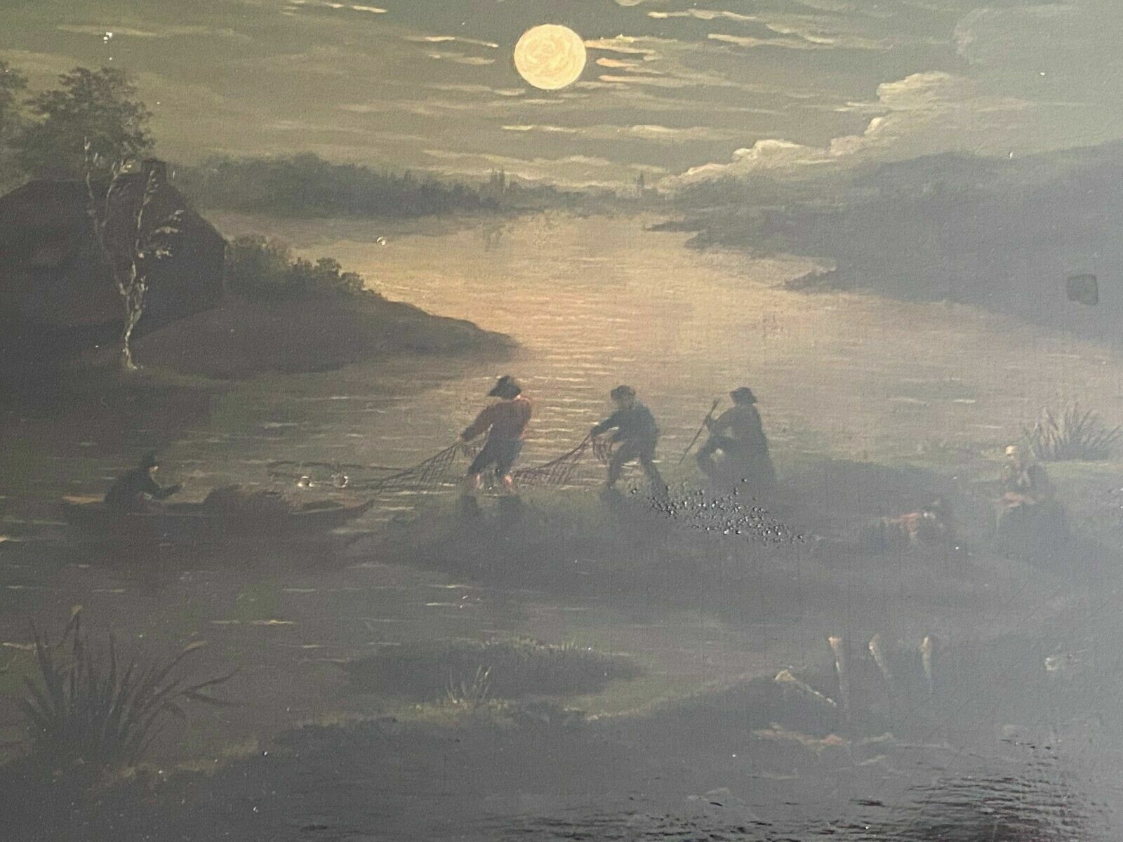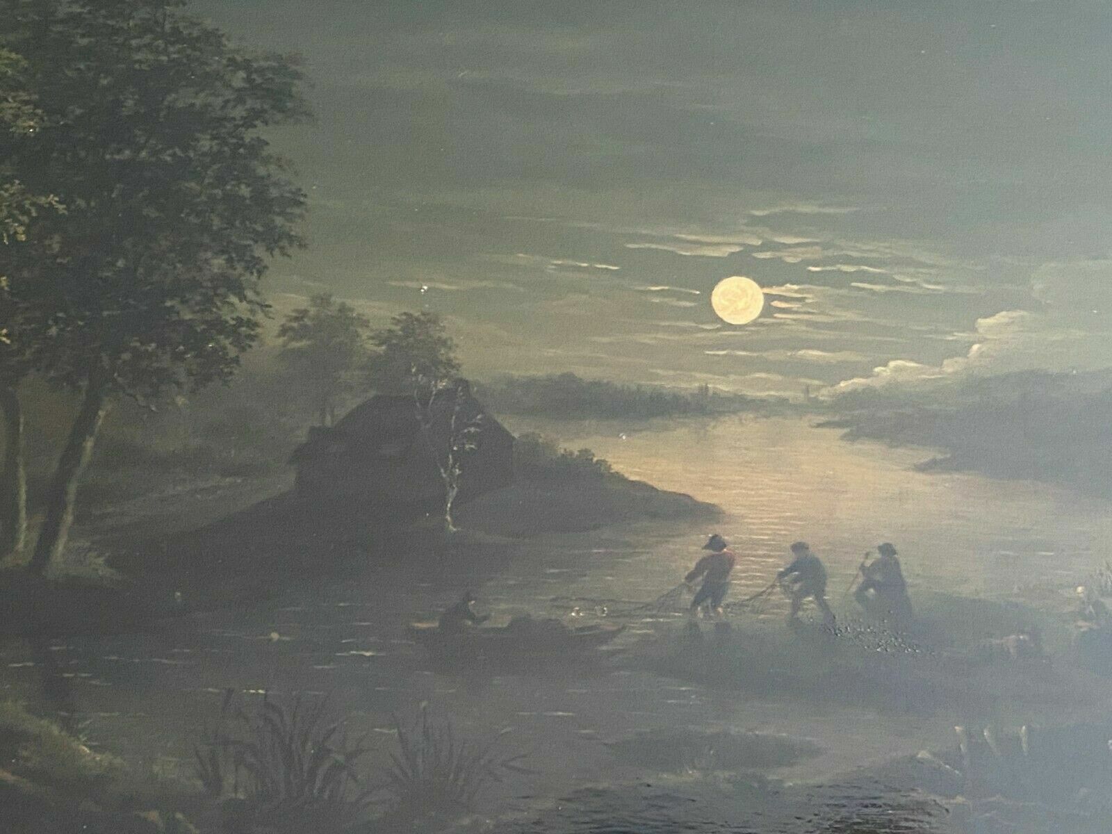 BAROCK ALTMEISTER ÖLGEMÄLDE FISCHER BEI MONDLICHT 18 TES JHDT FEINE MALEREI