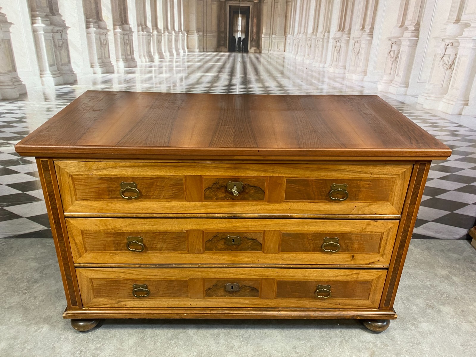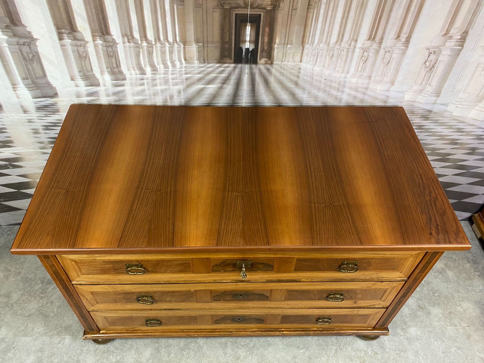 BAROCK KOMMODE NUSSBAUM UM 1880 HOLZ MASSIV FURNIERT ANTIKE BAROCKKOMMODE