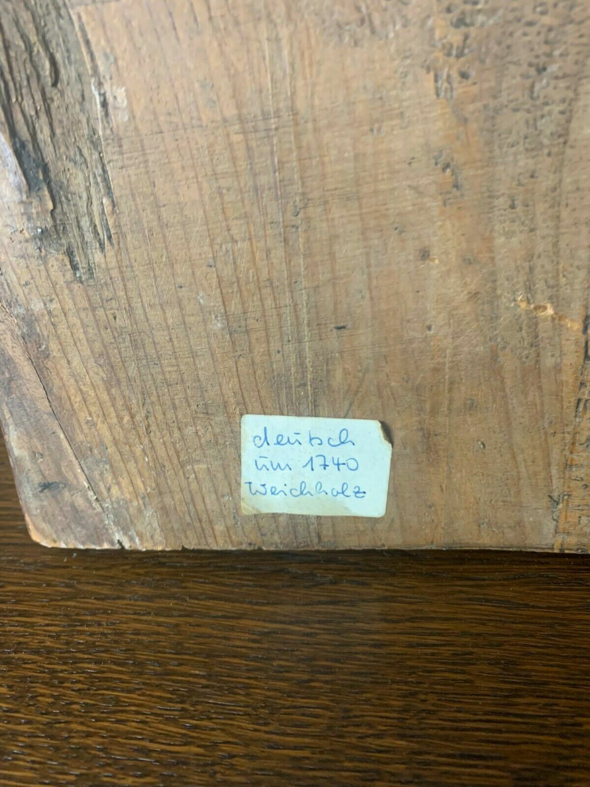 Antikes Relief aus Weichholz, Mitte 18tes Jhd. Mittig Dehnungsriss, wurde zum Teil geklebt weiterhin kleinere Dehnunsrisse und Abrieb. Abmessungen 54x41cm.