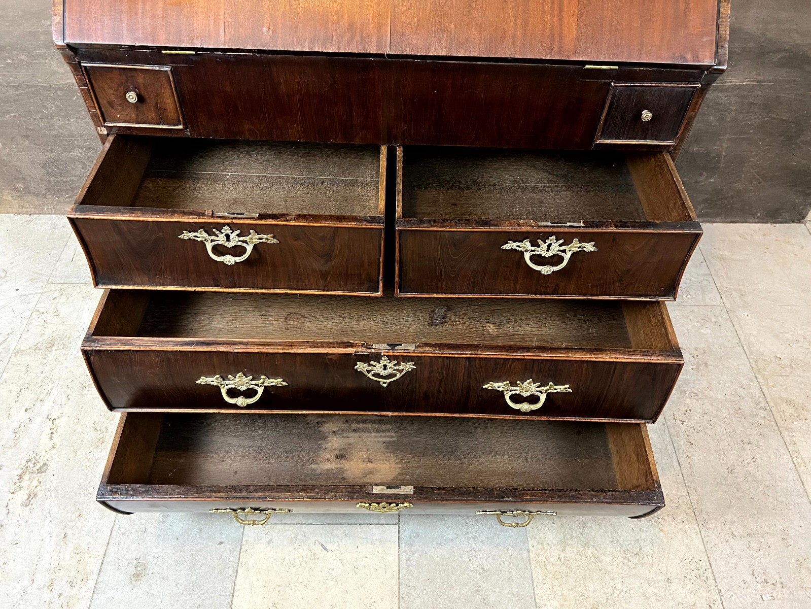 BAROCKSEKRETÄR SEKRETÄR LOUIS XV ANTIK UM 1760 MAHAGONI FURNIER