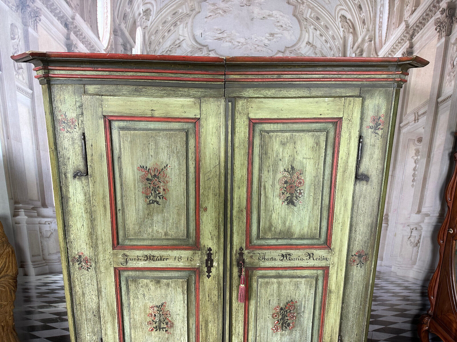 BAUERNSCHRANK SCHRANK NACH ANTIKEM VORBILD HANDBEMALT BLUMENBILDER MALEREI
