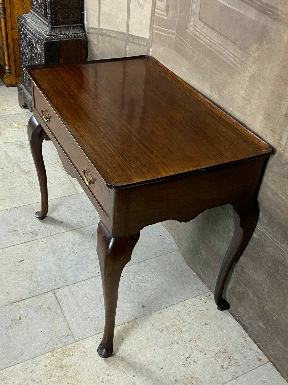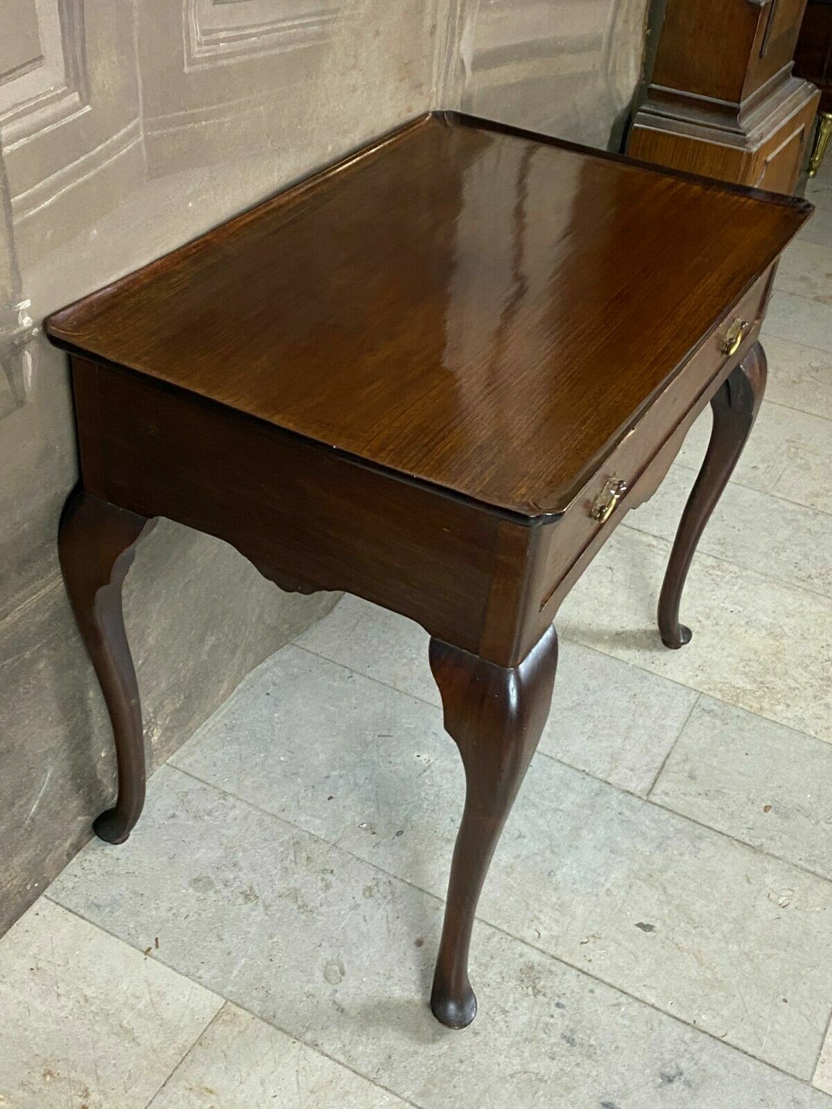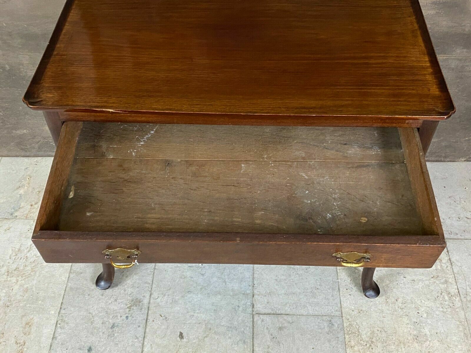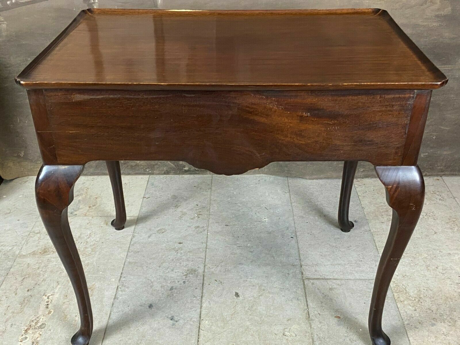 Antiker Teetisch aus Mahagoni, England, 19-tes Jhdt. Abmessungen 74 x 83 x 57 cm. Solider Zustand, die obere Leiste ist vorne beschädigt.