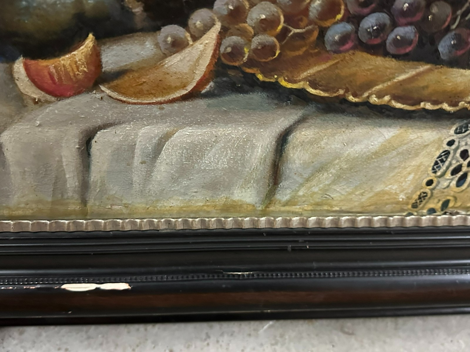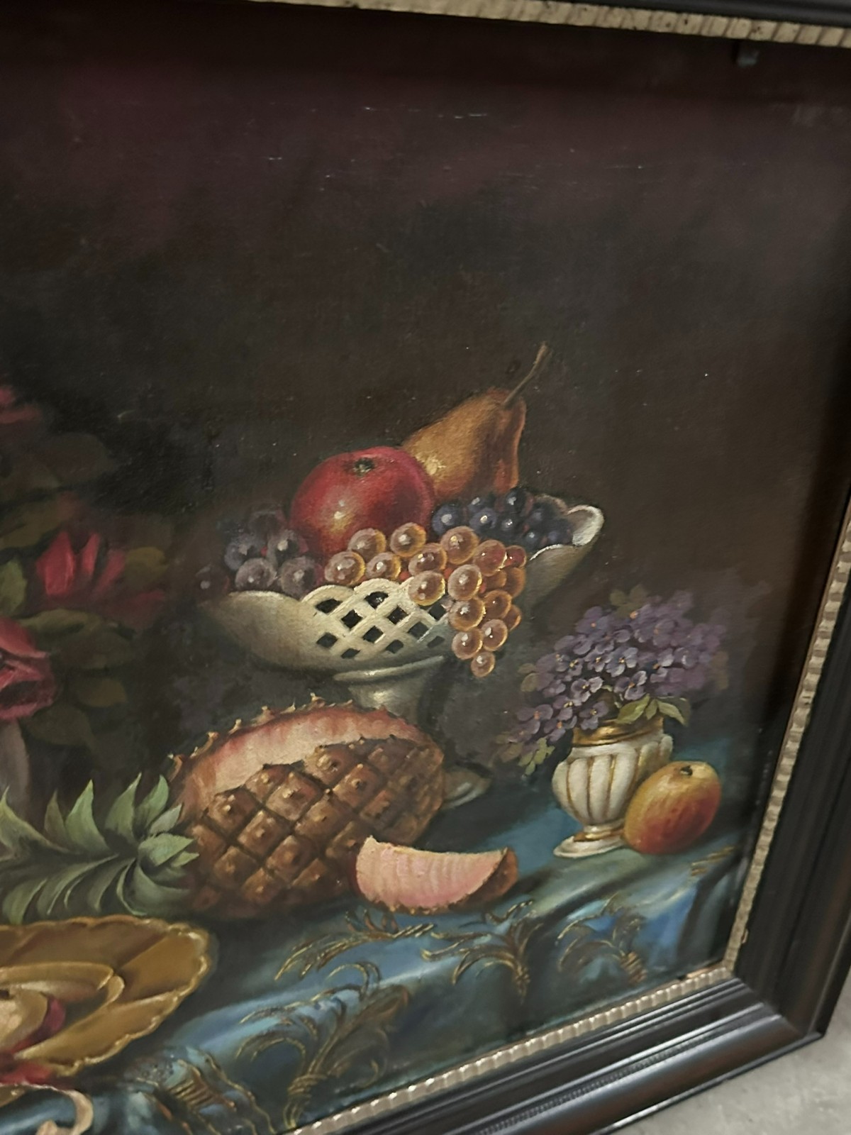 C. CORDIER 1935 ANTIKES ÖLGEMÄLDE STILLLEBEN MIT BLUMEN UND OBST PRUNKRAHMEN