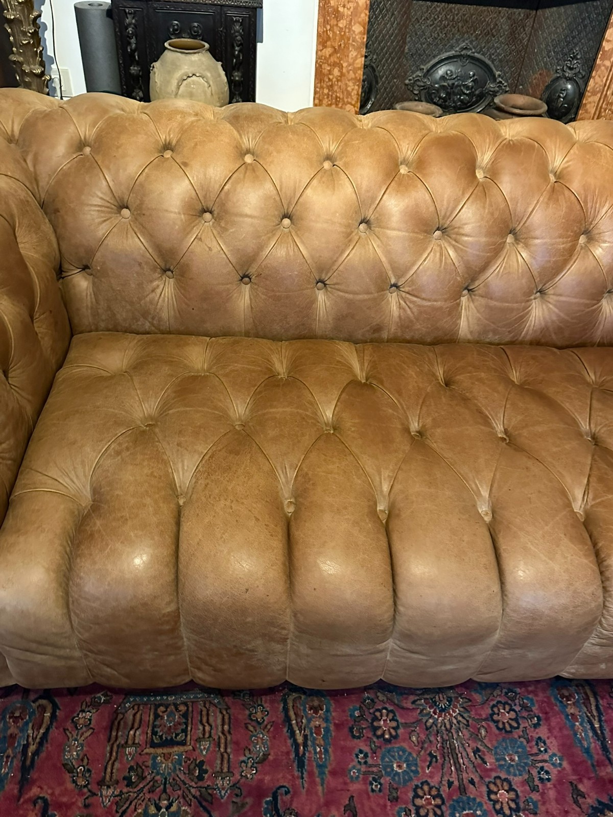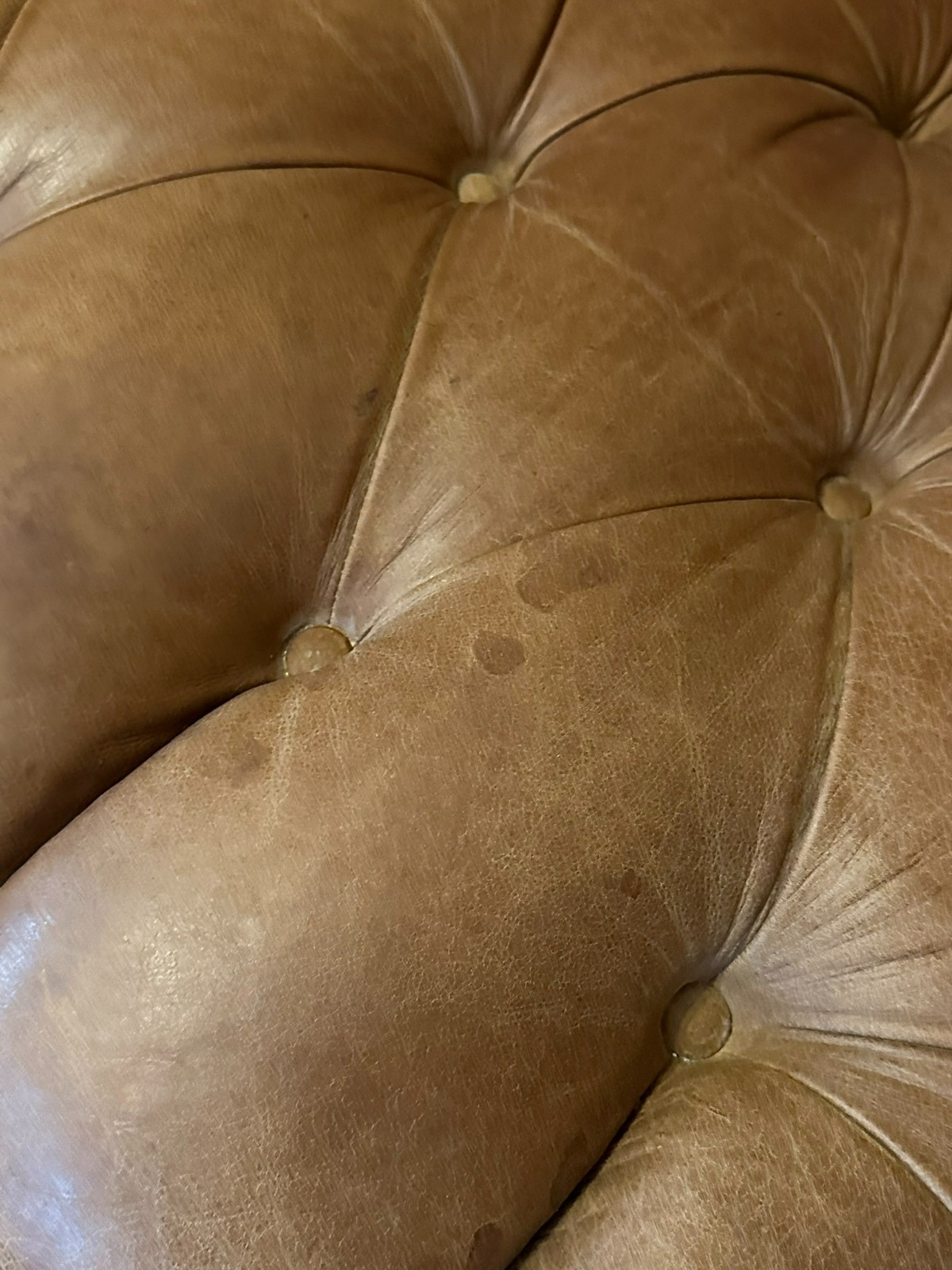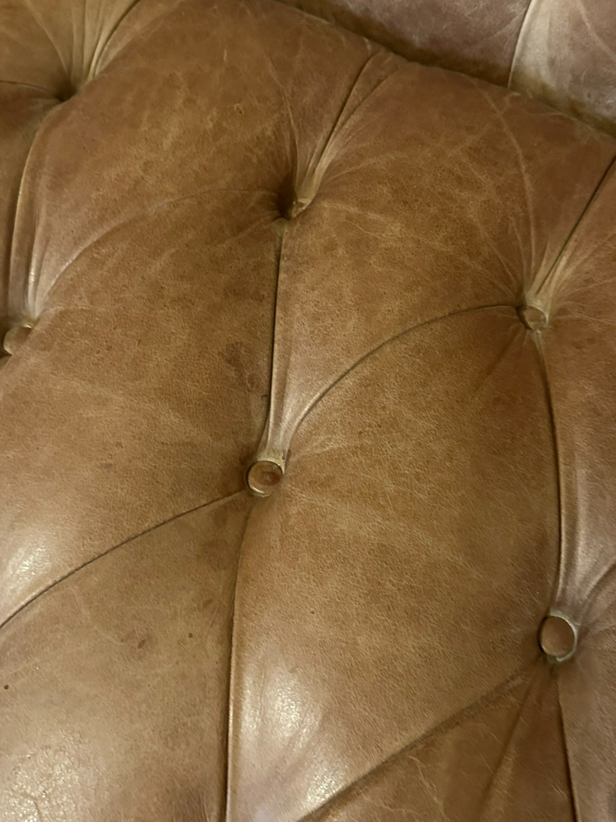 Gebrauchte Couch aus Leder in Chesterfield Look, Gutmann Collection 1867, NP wohl 1799 Euro. Am Leder keine Beschädigungen, sehr guter Sitzkomfort, wurde nur ein Jahr genutzt. Diverse kleinere Flecken, die normalerweise zu reinigen sind, einseitig dunklerer Farbton. Abmessungen BTH 224/99/74cm, Sitzhöhe 40cm.