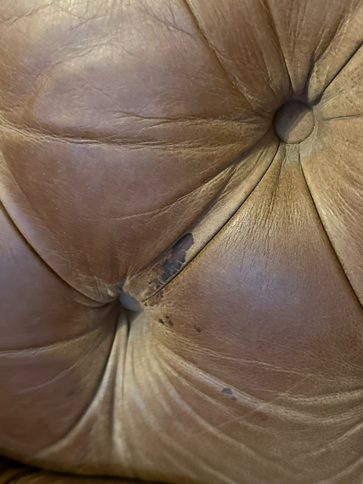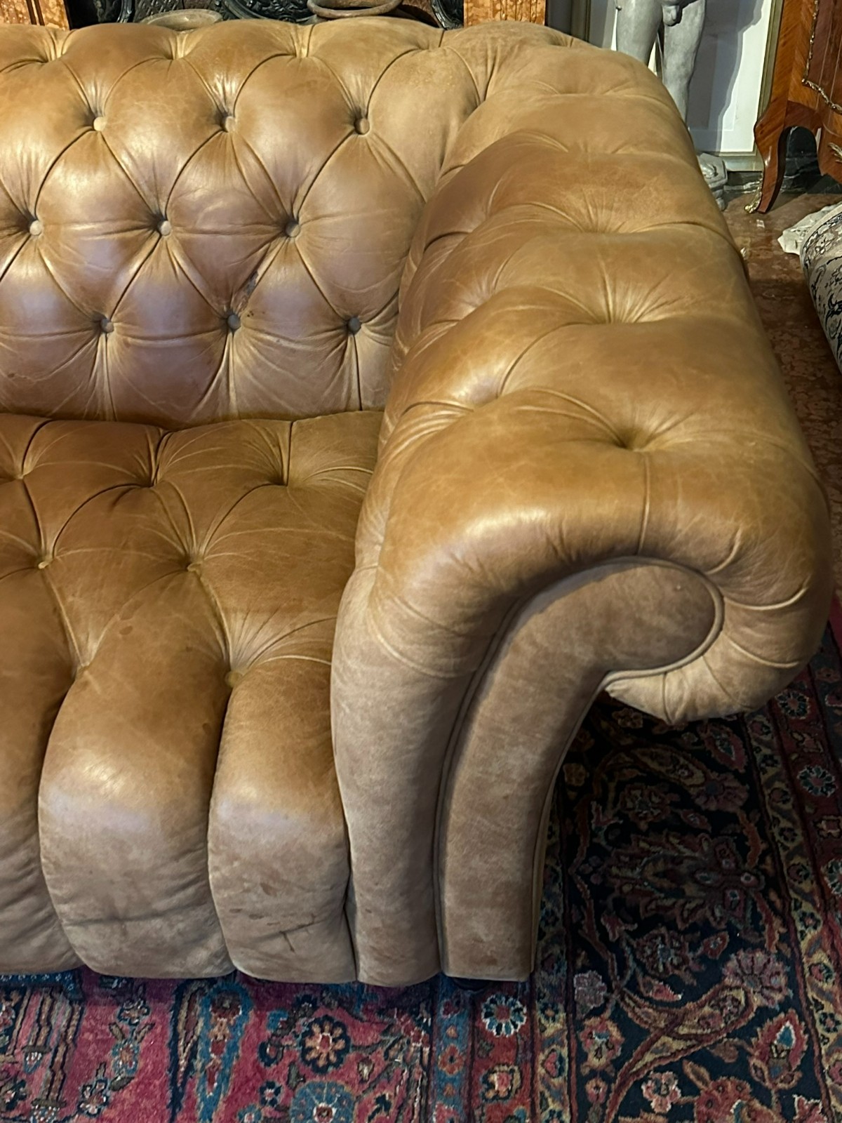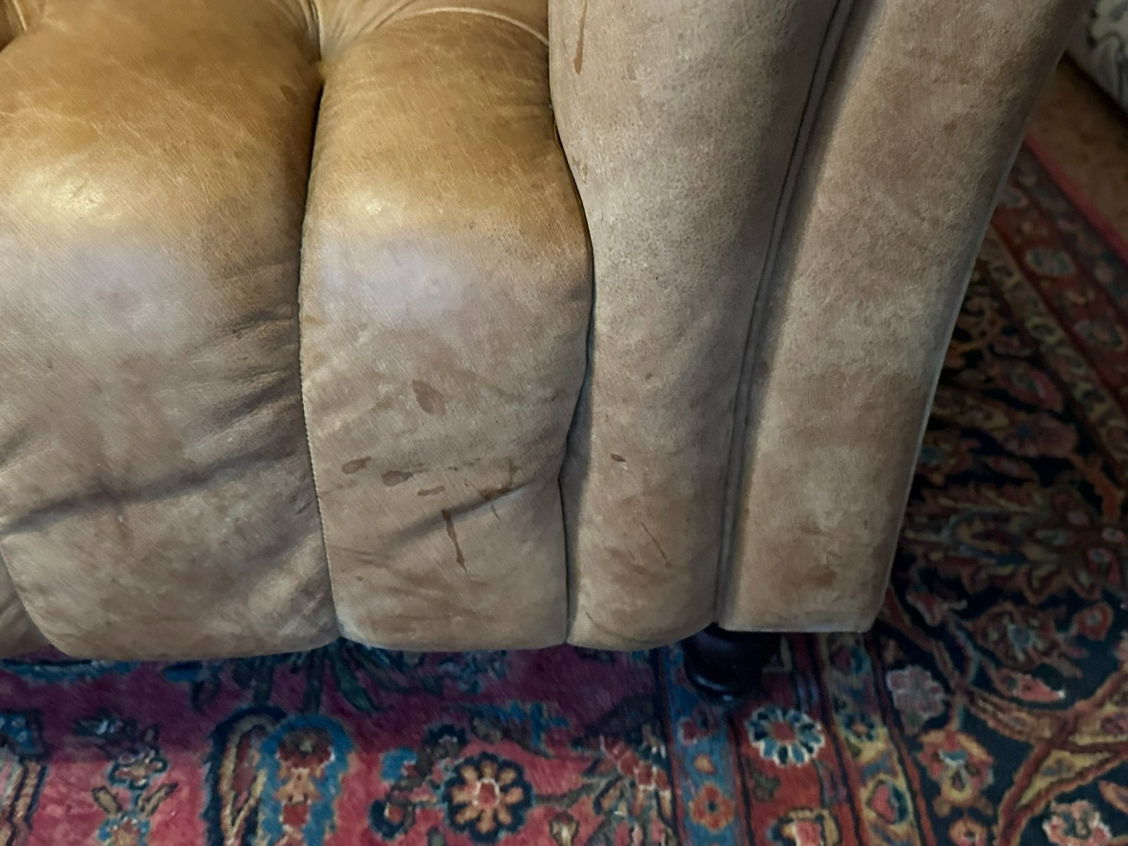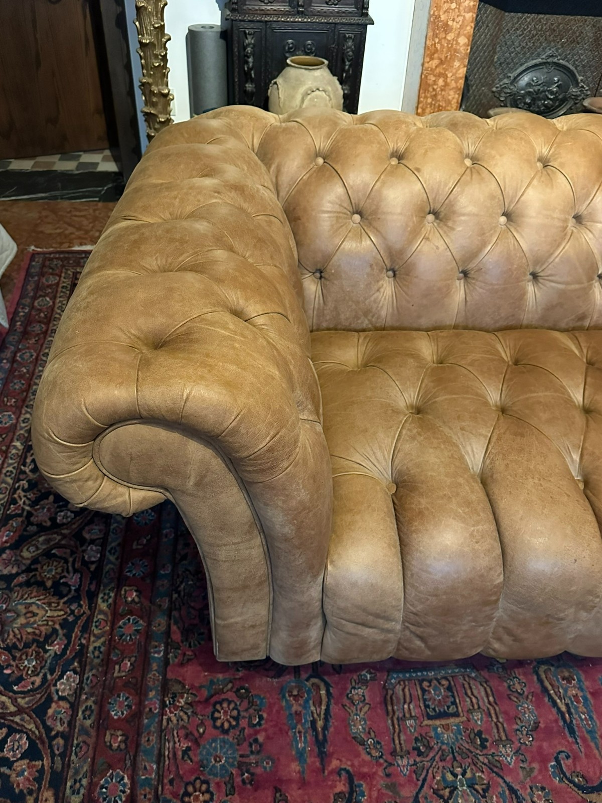 Gebrauchte Couch aus Leder in Chesterfield Look, Gutmann Collection 1867, NP wohl 1799 Euro. Am Leder keine Beschädigungen, sehr guter Sitzkomfort, wurde nur ein Jahr genutzt. Diverse kleinere Flecken, die normalerweise zu reinigen sind, einseitig dunklerer Farbton. Abmessungen BTH 224/99/74cm, Sitzhöhe 40cm.