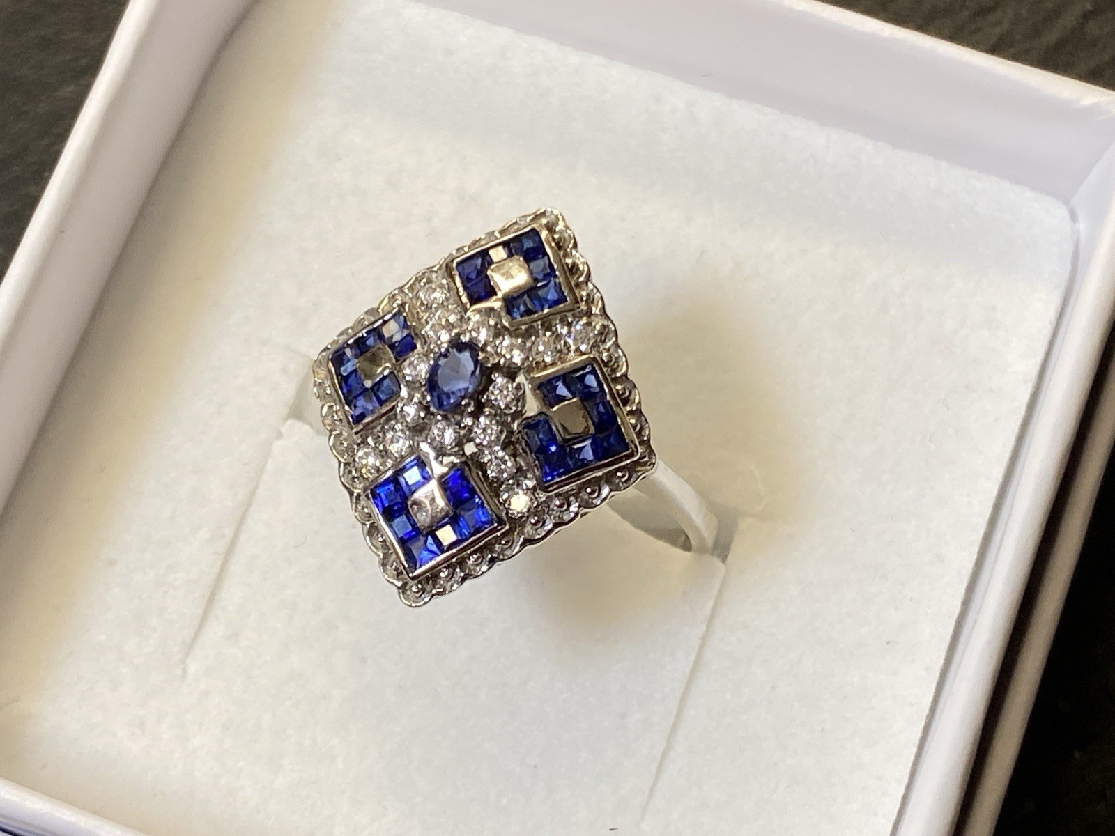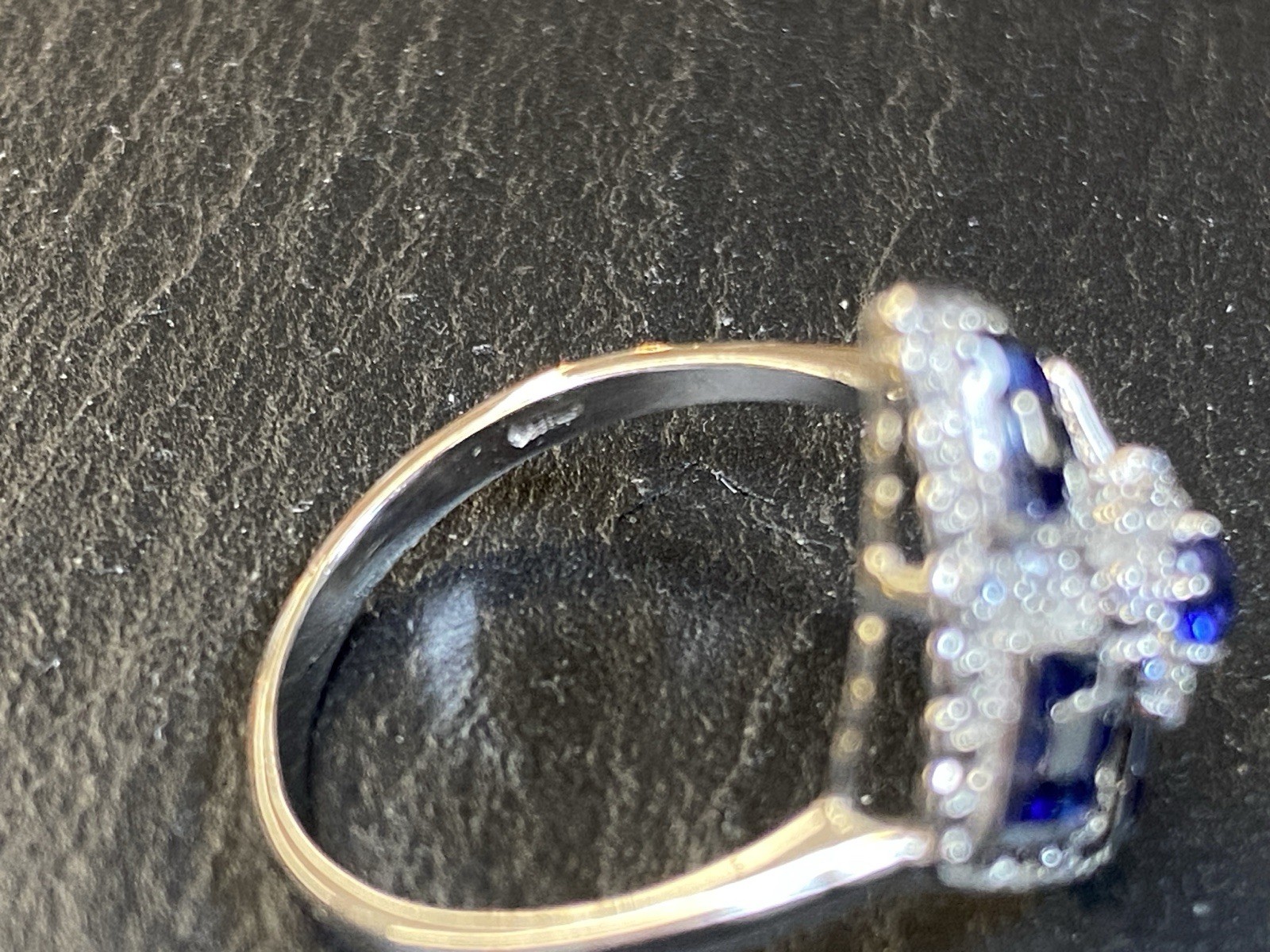 DAMEN RING GOLD 18K 750 MIT SAPHIREN UND ZIRKONEN GRÖSSE 56/57 ART DECO STIL