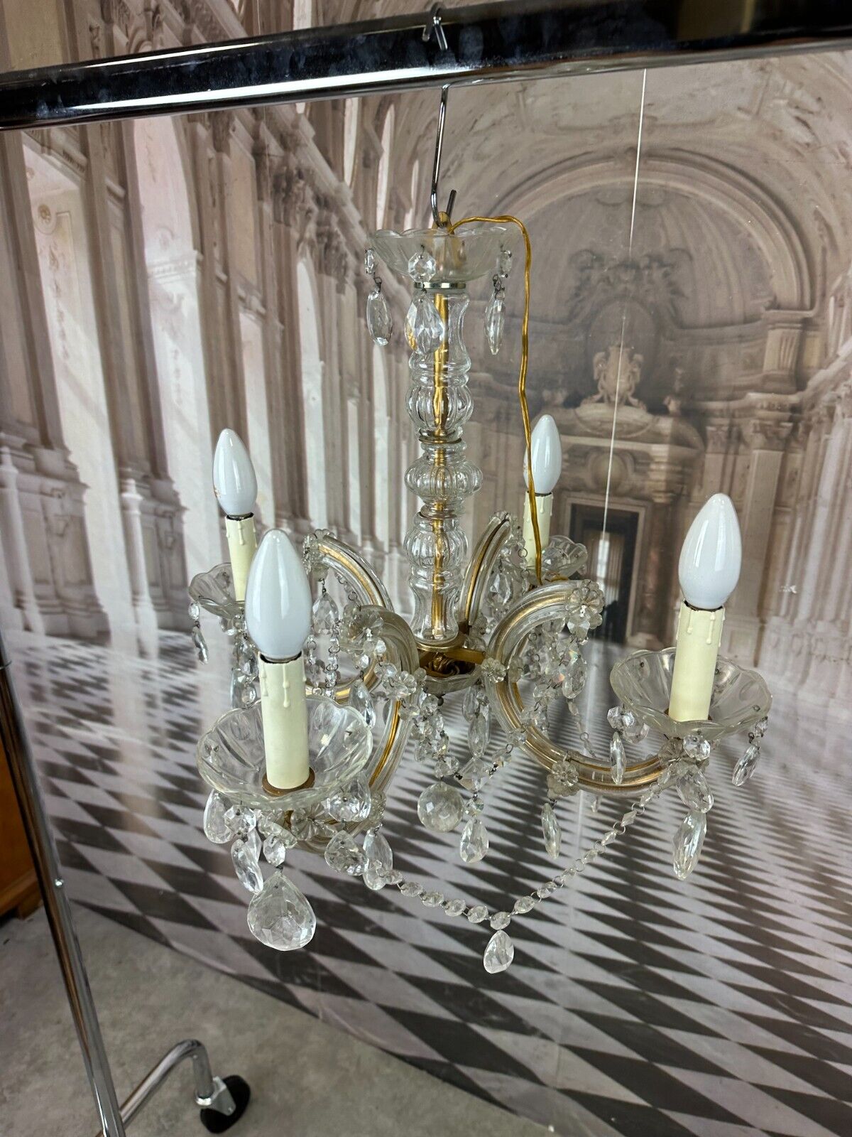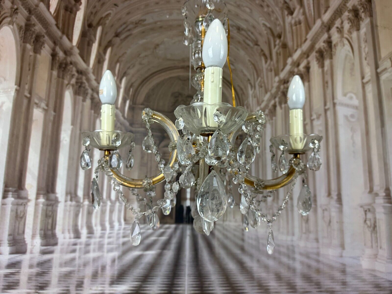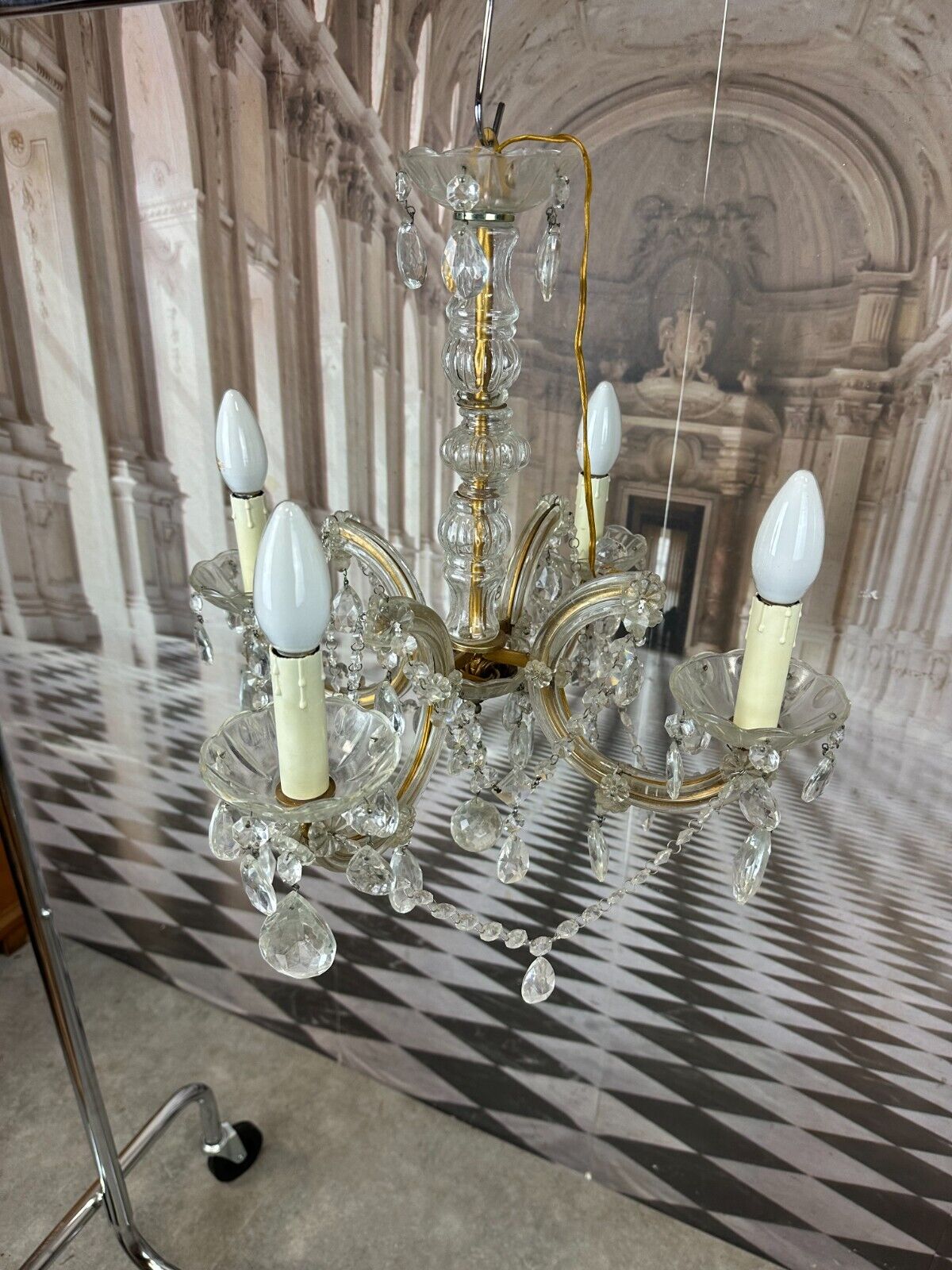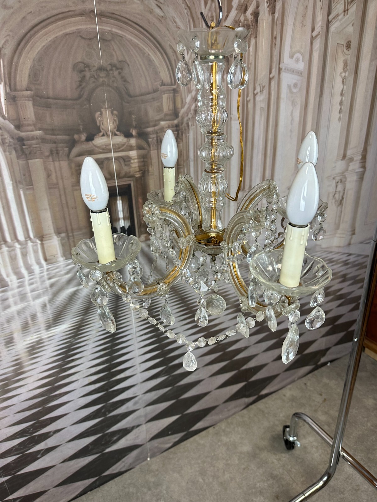DECKENLEUCHTER AUS GLAS MIT BEHANG DECKENLAMPE PRUNKLEUCHTER KRONLEUCHTER