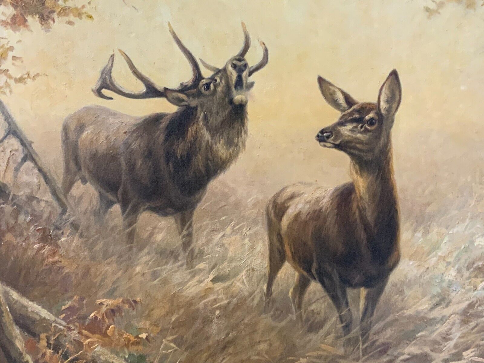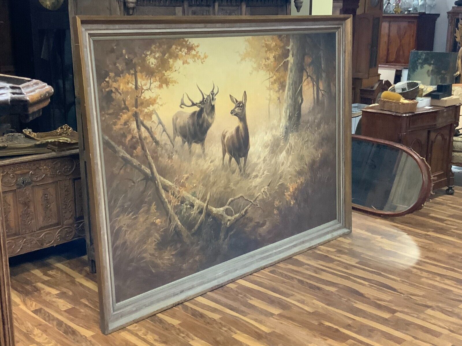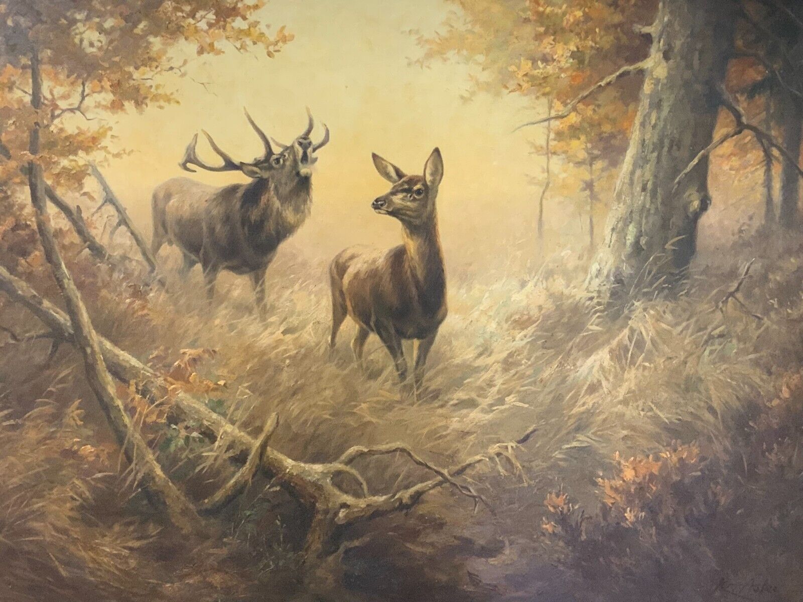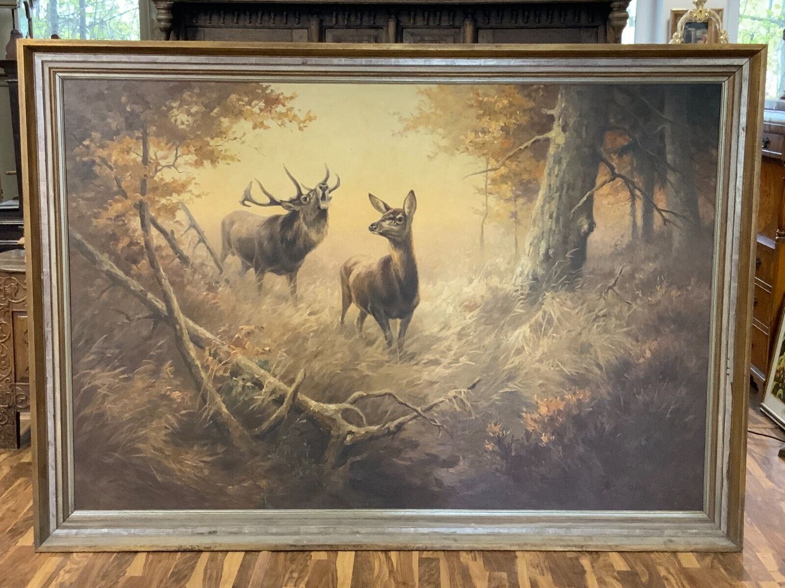 ERNST LUDWIG VON ASTER ÖLGEMÄLDE HAUPTWERK HIRSCH UND REH IN LICHTUNG 200x135cm