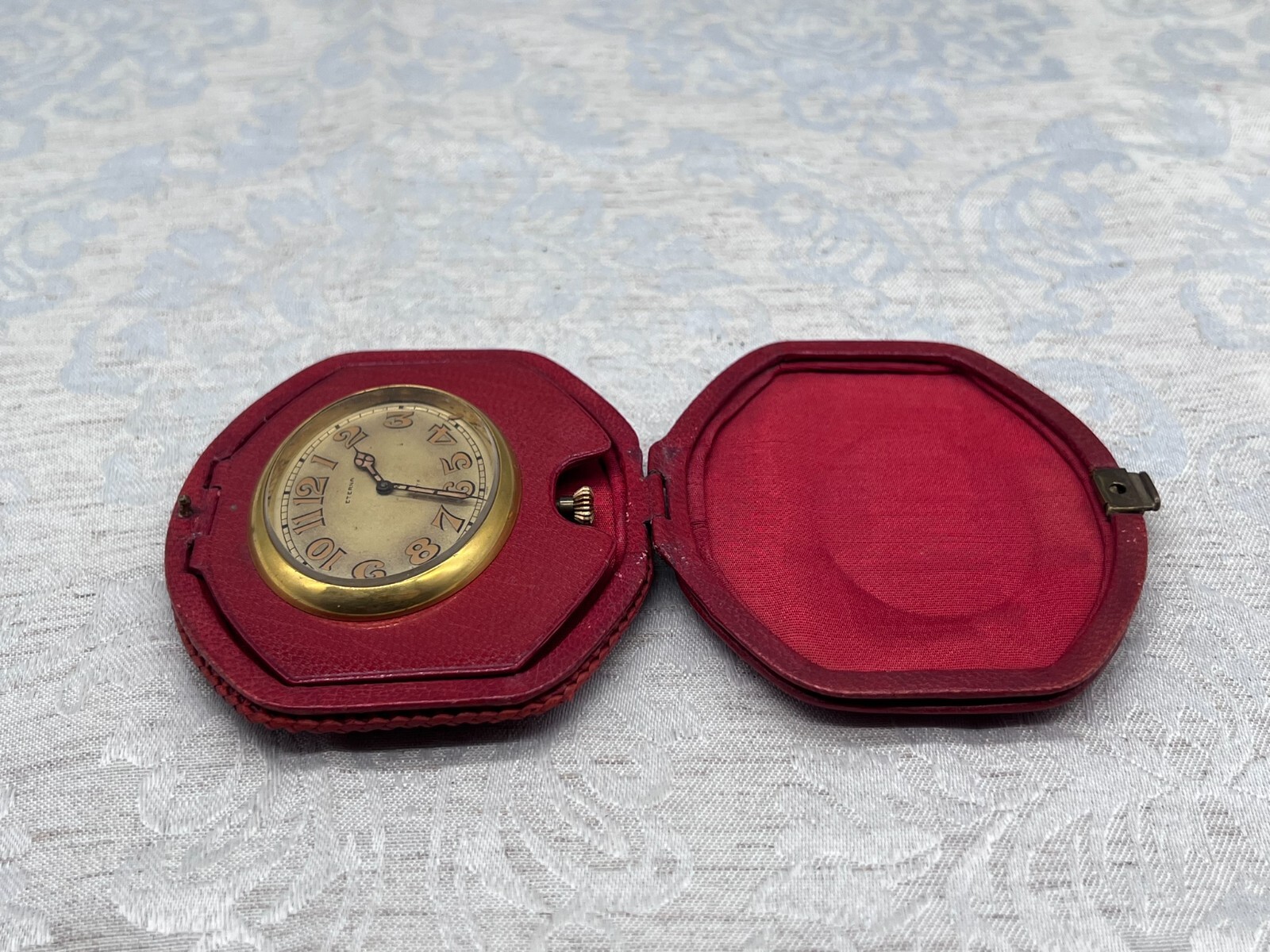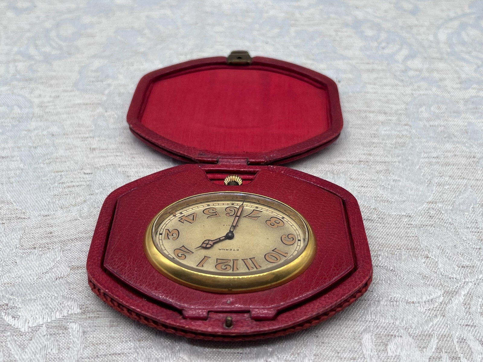ETERNA REISEUHR UHR ANTIK 8 TAGE WERK LEDERETUI