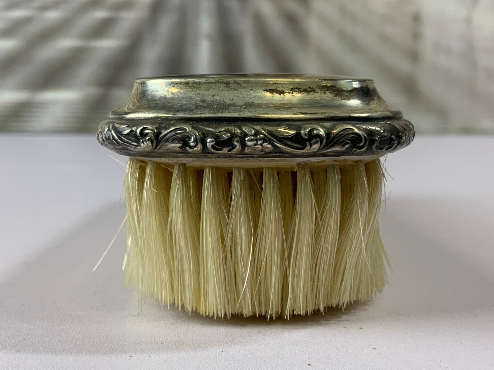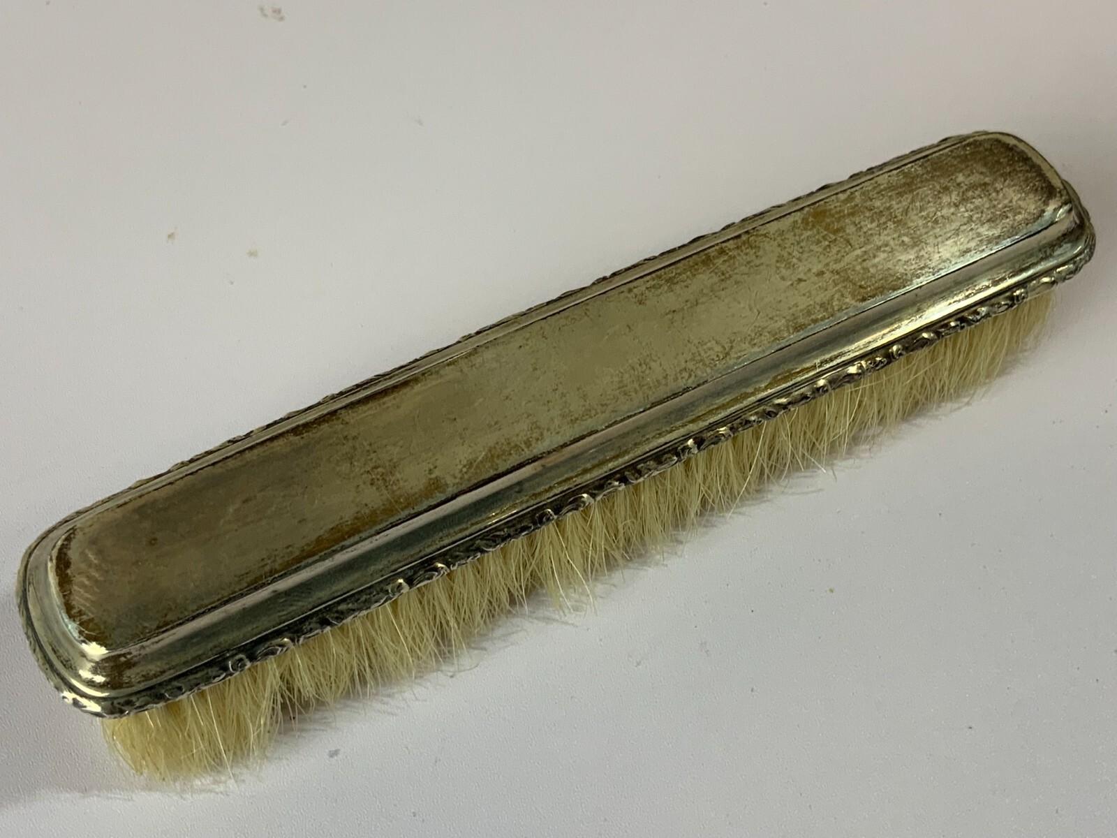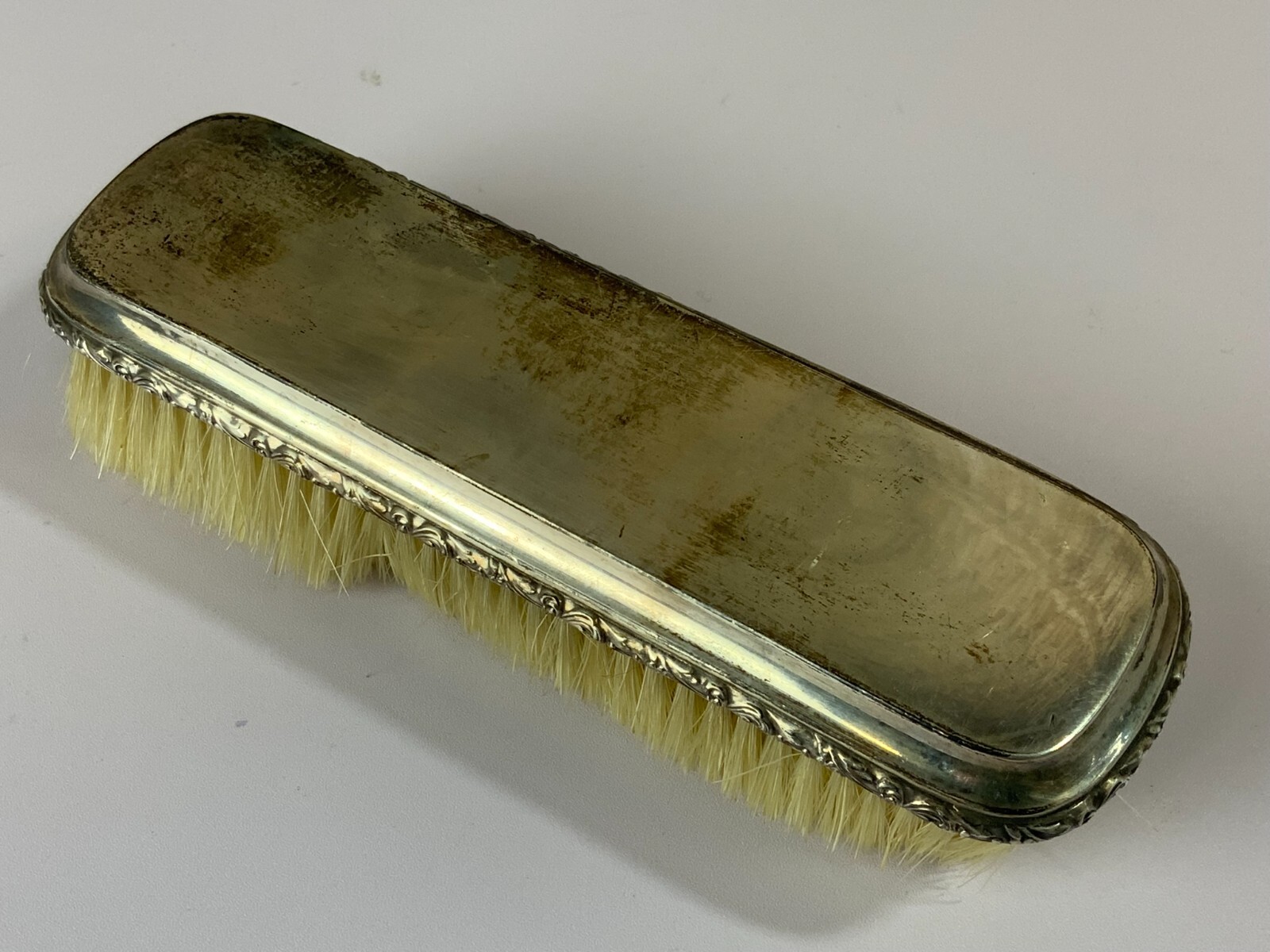 Bürstenset mit Silbermontur. 800er Silber, punziert. Oberfläche leicht angelaufen und leicht berieben, kleinere Dellen. Die Einsätze wurden wohl mal ausgetauscht. Längen 16/18/23cm.